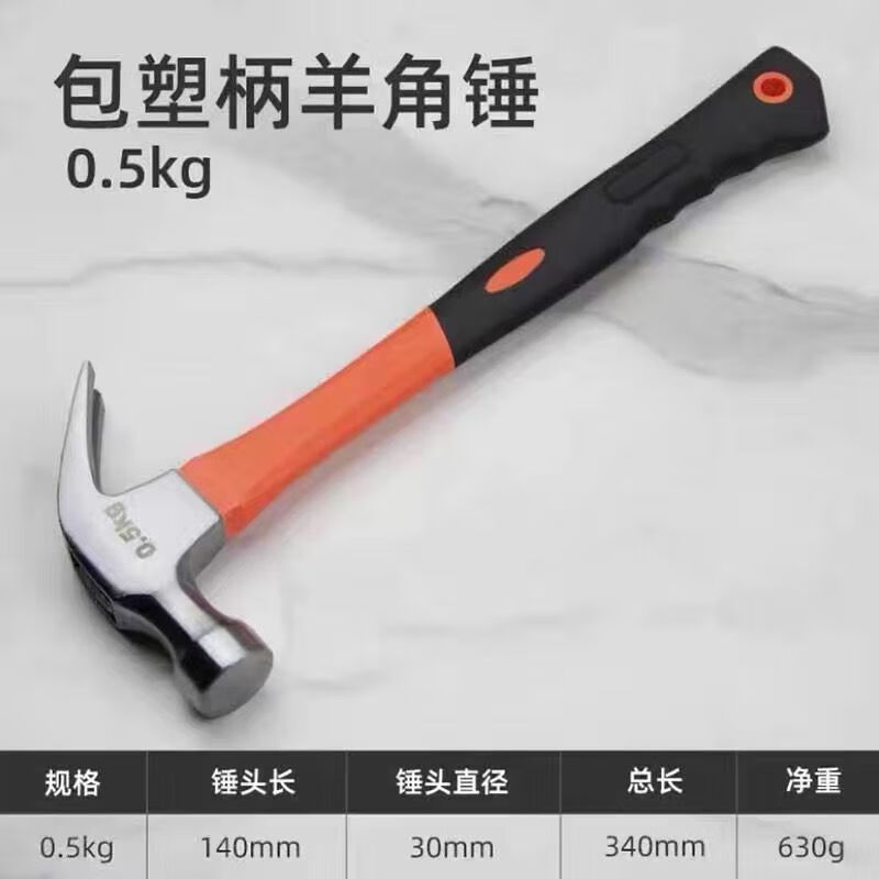 Vinoa hammer household small hammer woodworking new iron construction site nail hammer plastic-coated claw hammer shockproof claw hammer 0.25kg