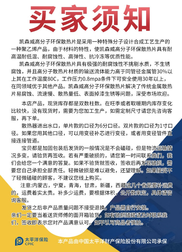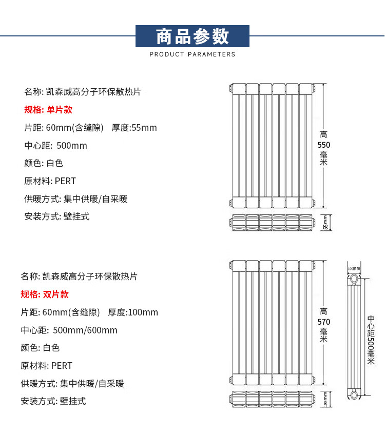 Kaisenwei polymer radiator PERT home heating factory store patented product insurance covered radiator PERT double-piece model 570mm*1 column 1 inch mouth