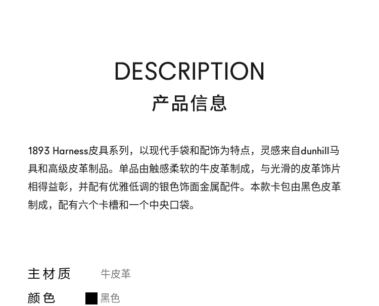 Dunhill Men's 1893Harness Card Holder Wallet Black Lightweight Business Winter Black Winter Black