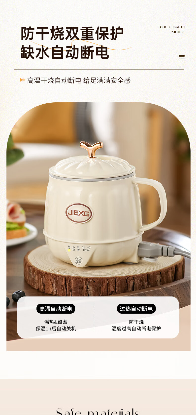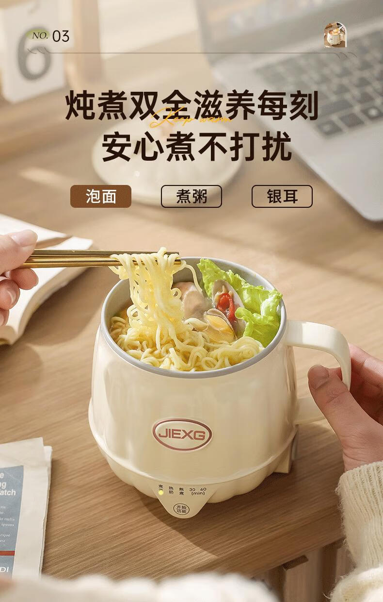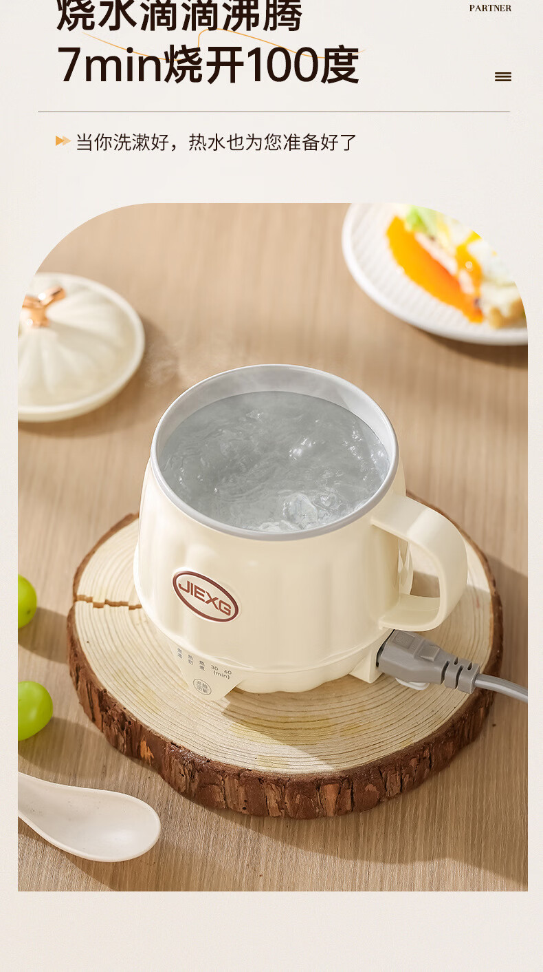 JIEXG German JIEXG hot milk cup office small one-person health cup household multi-functional stew cup boiling cup rice chestnut white with stirring spoon ceramic glaze liner 0.5L 500ML