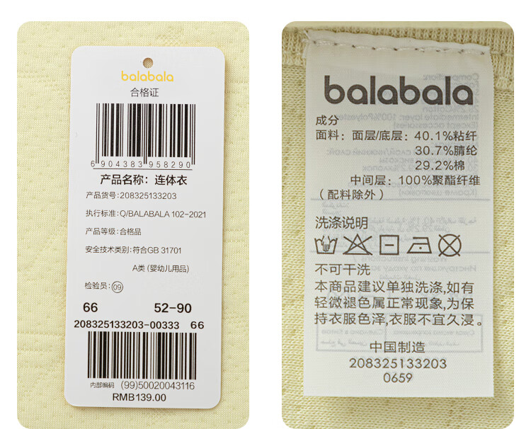 Bala Bala One baby jumpsuit baby pajamas crawl clothes 2025 new skin-friendly soft and cute yellow tone 00333 73cm