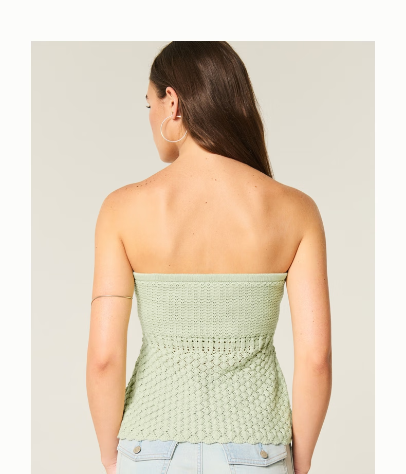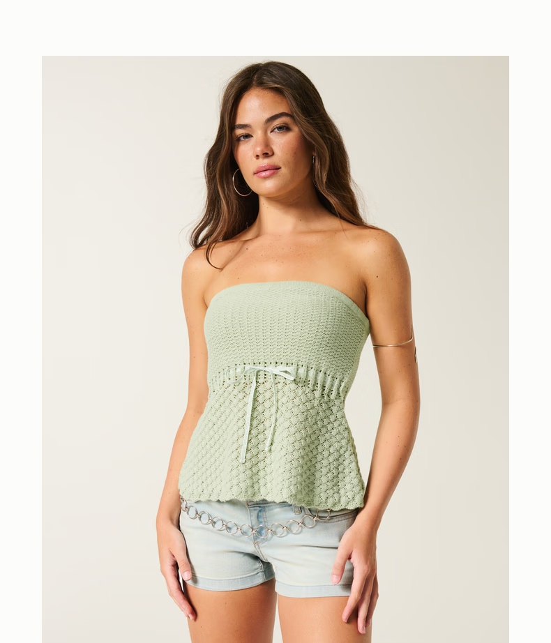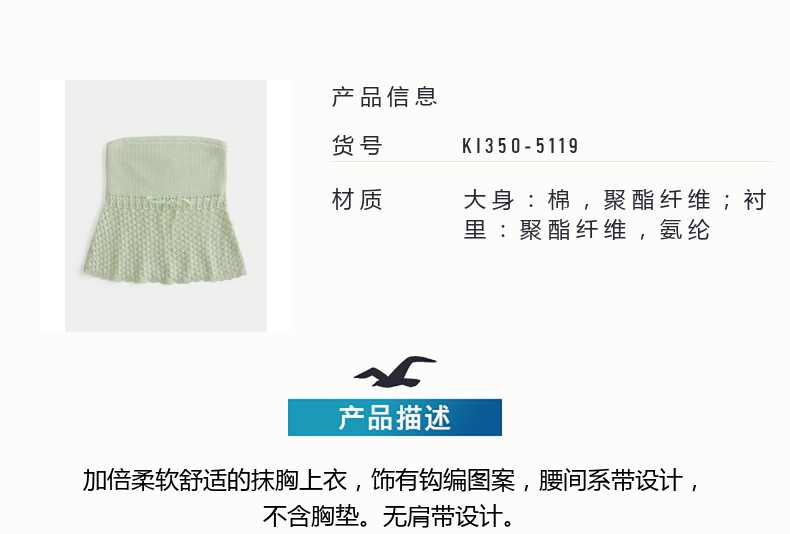 HOLLISTER25 autumn design crocheted sweet blouse off-shoulder tube top women's clothing 350-5119 white XS (160/84A)