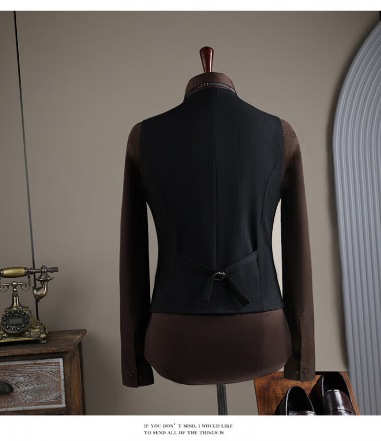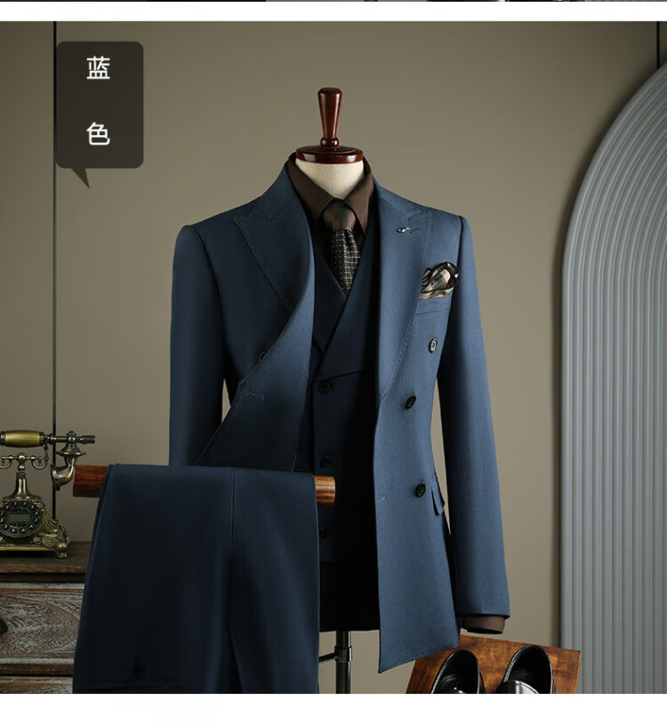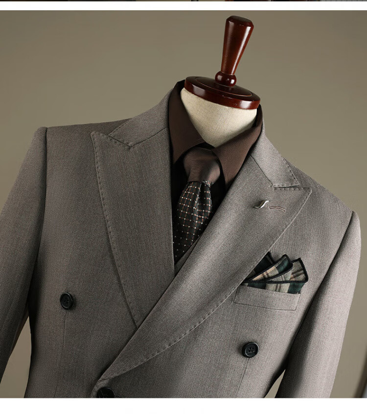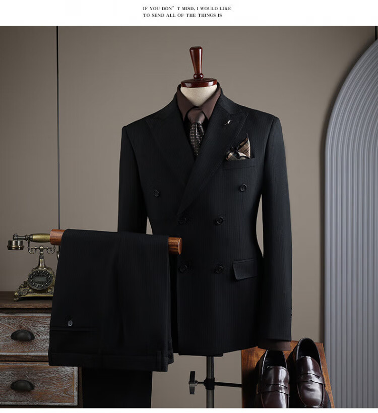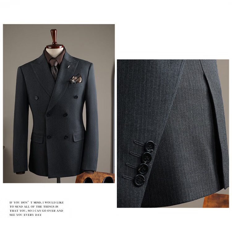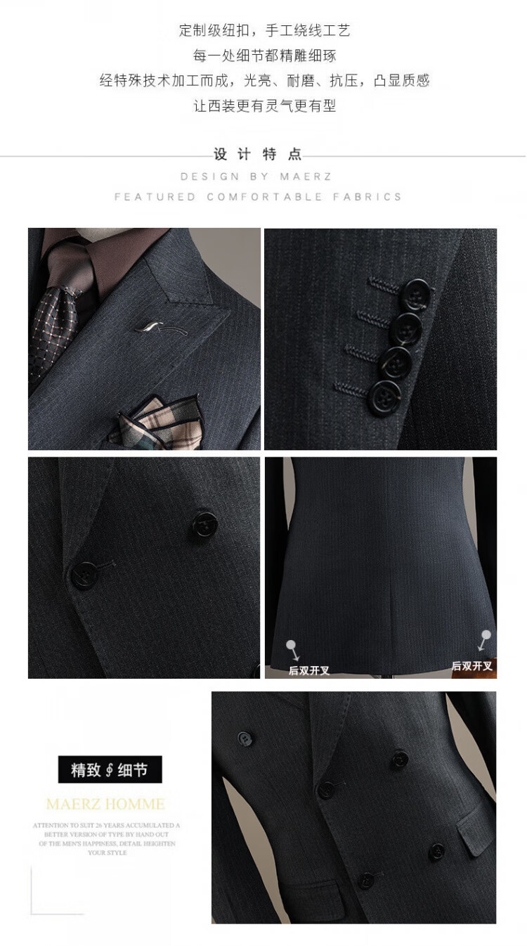 DK high-end men's lapel suit suit men's double-breasted jacket casual business formal groomsman wedding suit dark gray stripes (suit + vest + trousers) 6XL suitable (185-200)