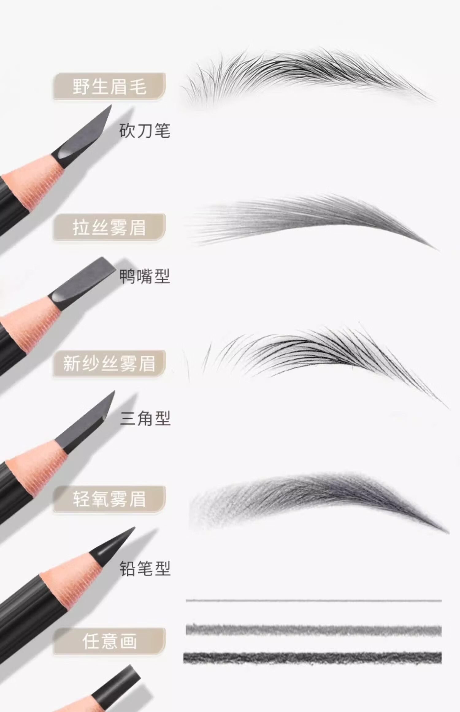 MONLEYTA Manlita 6-pack | No-sharpening 1818 cable chopper eyebrow pencil for women, long-lasting, waterproof, sweat-proof, non-fading, black + ash + dark coffee