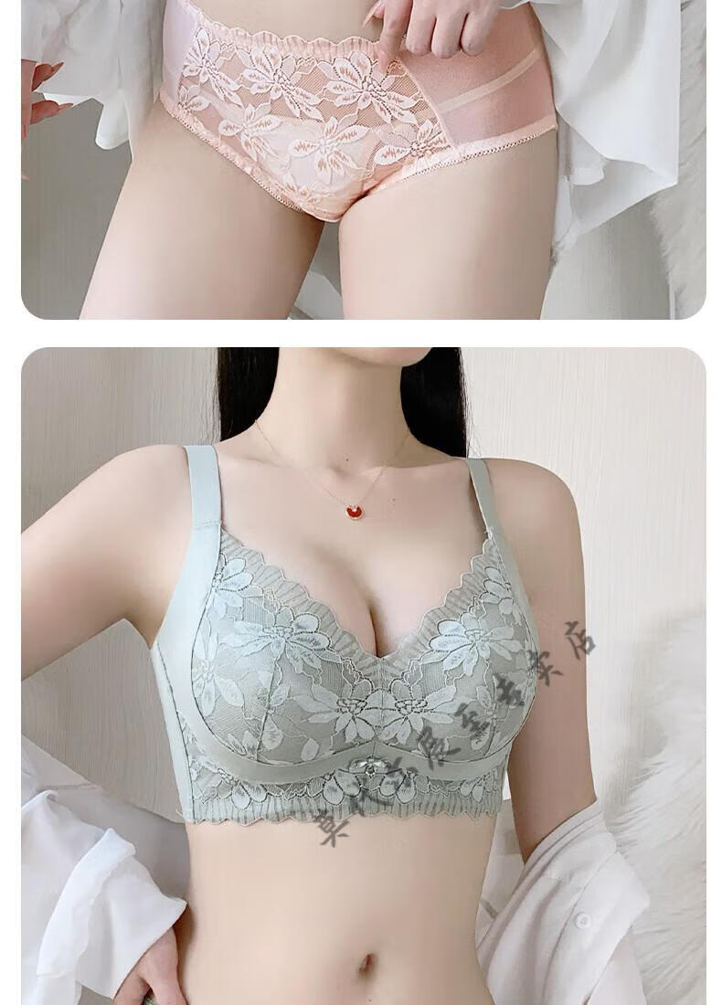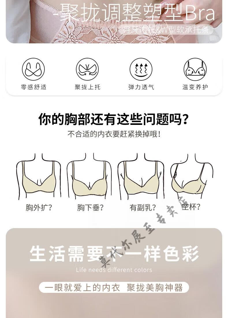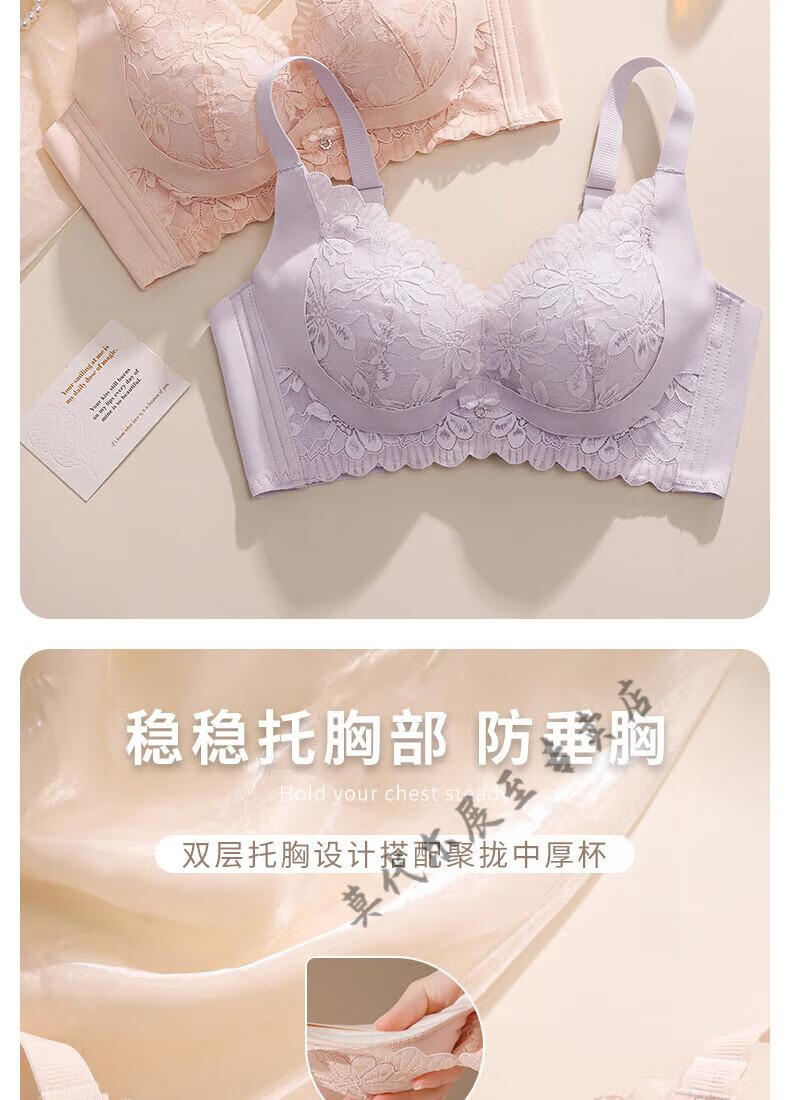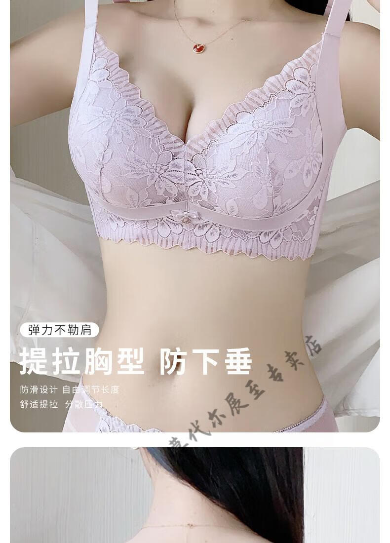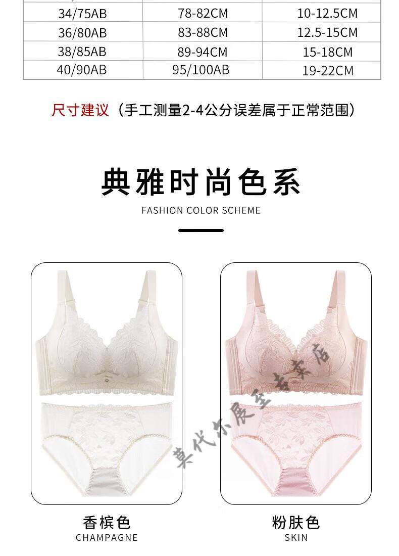 Modal's new small breasts look big and sexy push-up adjustable wire-free lace underwear to hold the secondary breasts and support comfortable bra Champagne (set) 70A 32B cup