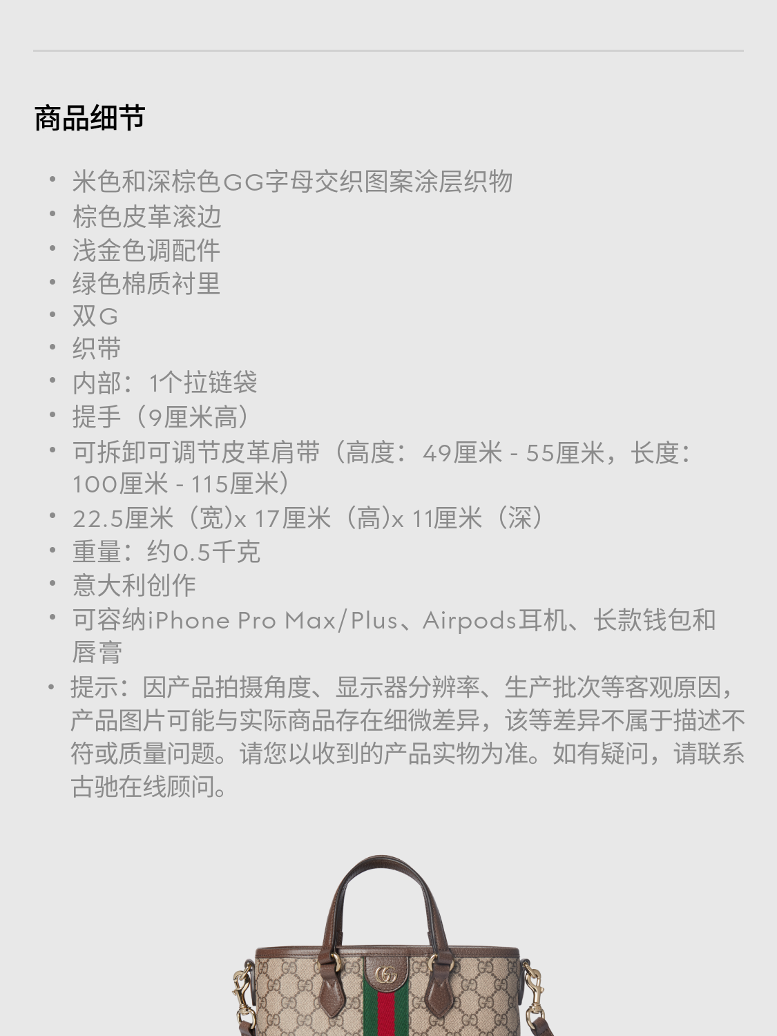 GUCCI Gucci Ophidia series small tote bag new gift beige and dark brown one size