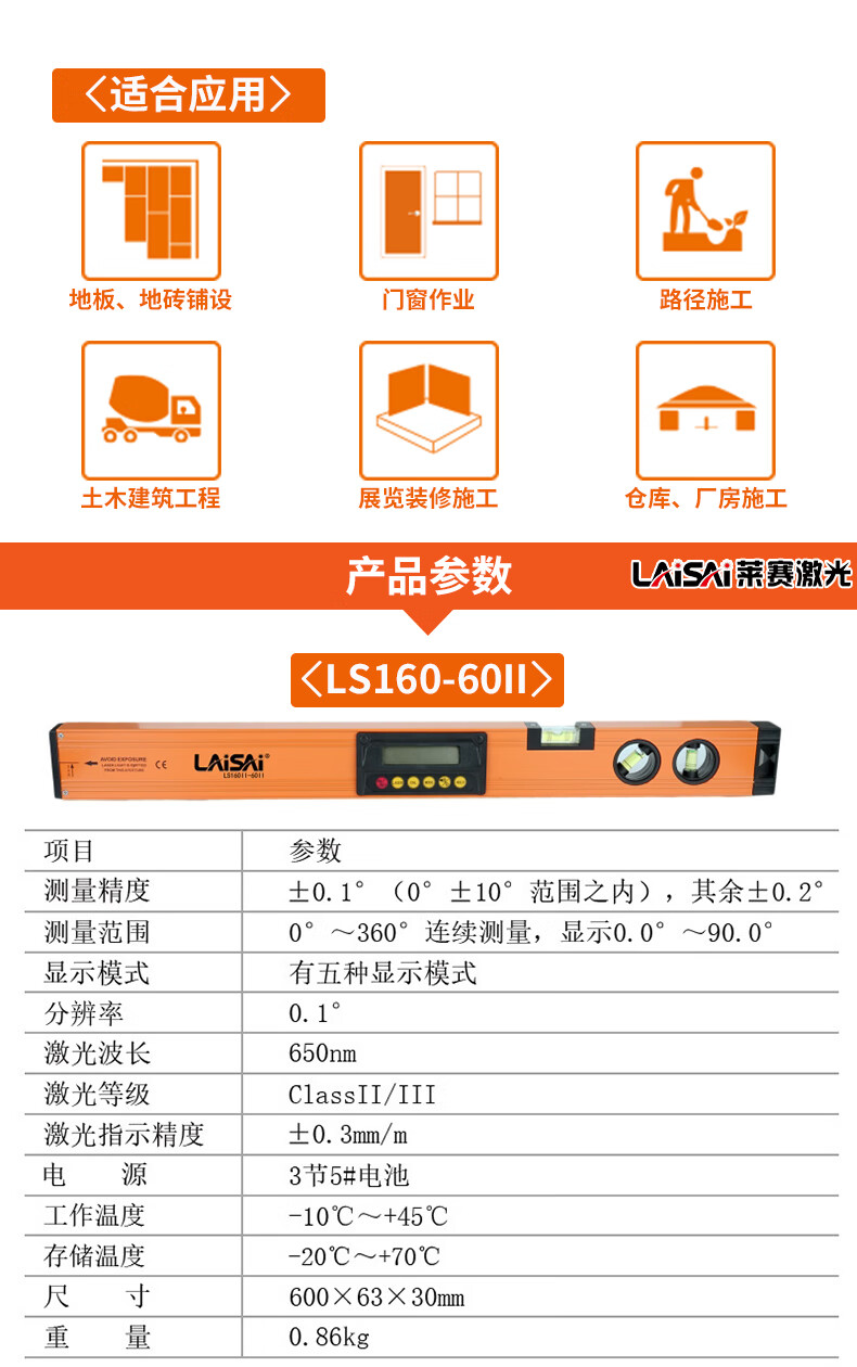 Laser Laser LS160-60 digital display slope measurement spirit level with laser point measurement level LS165III