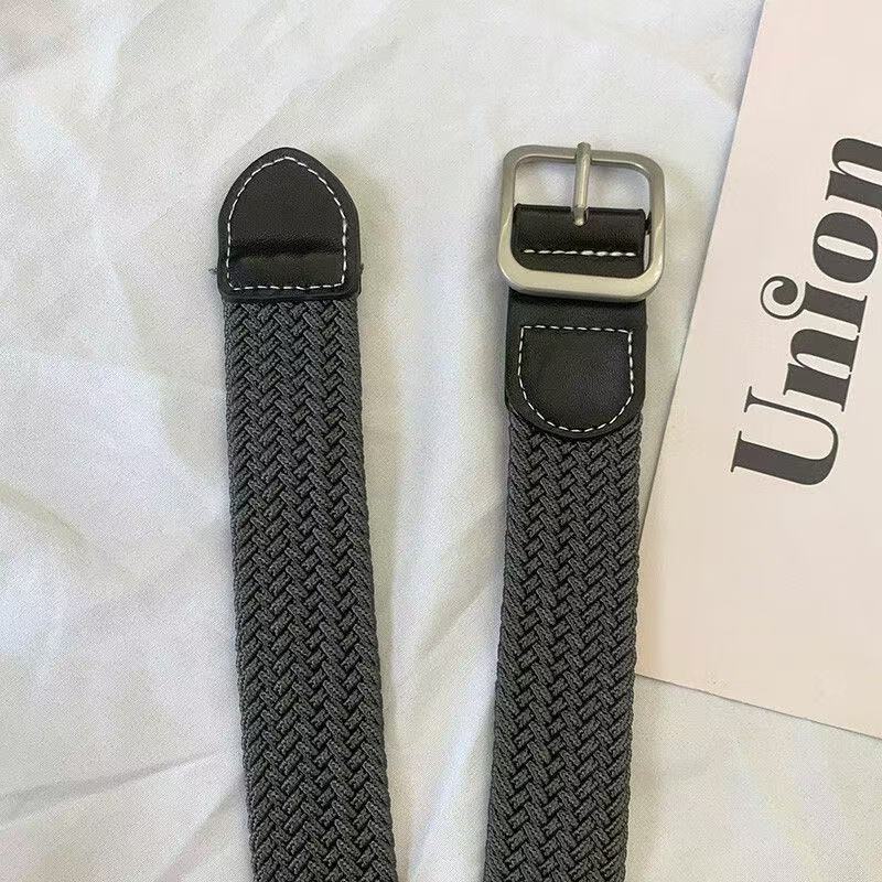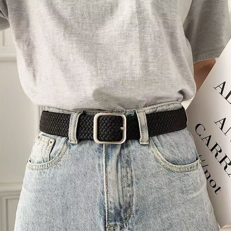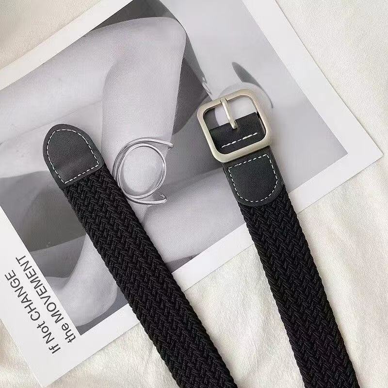 Lazy belt elastic canvas belt for men and women casual outdoor student jeans military training all-match braided belt square buckle black