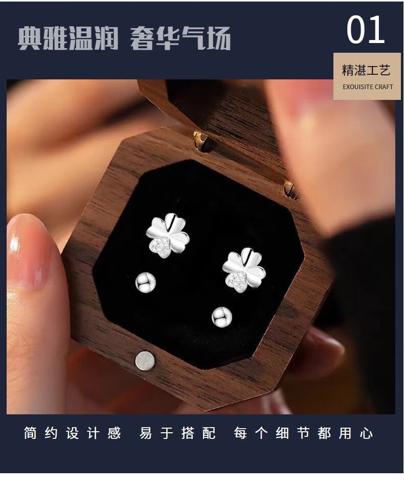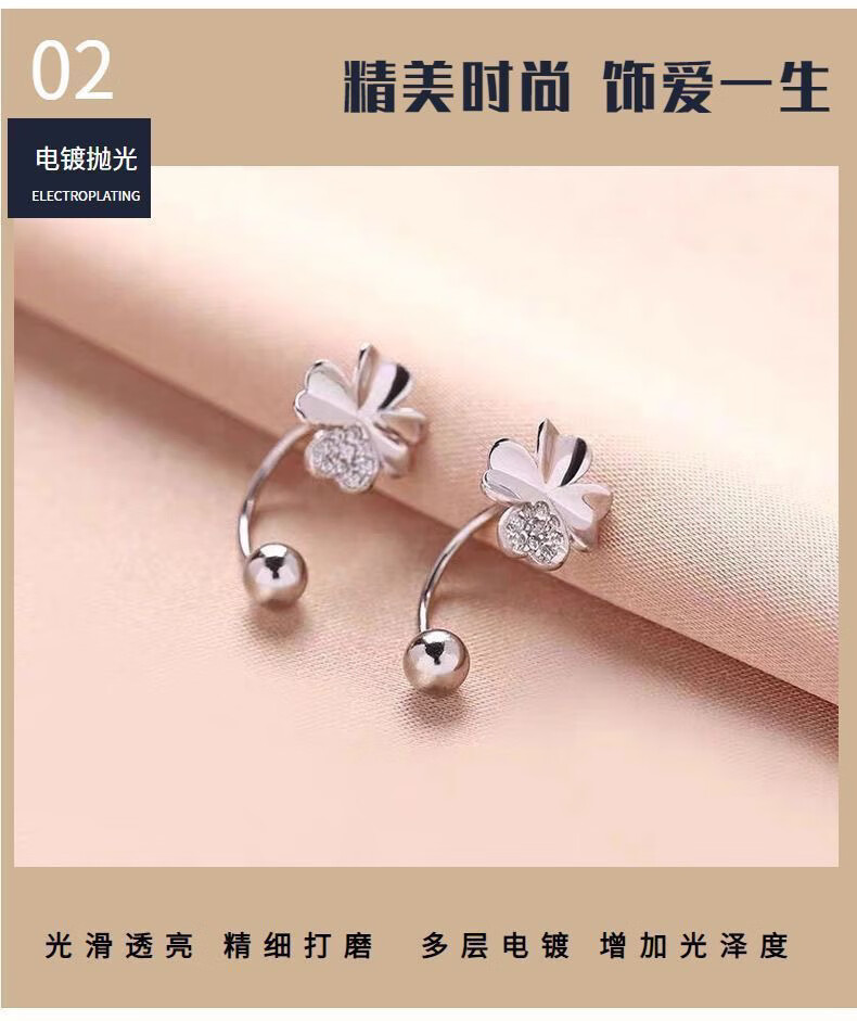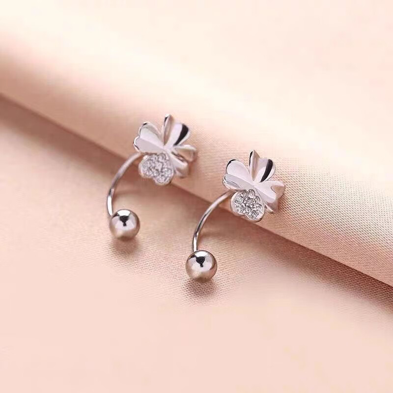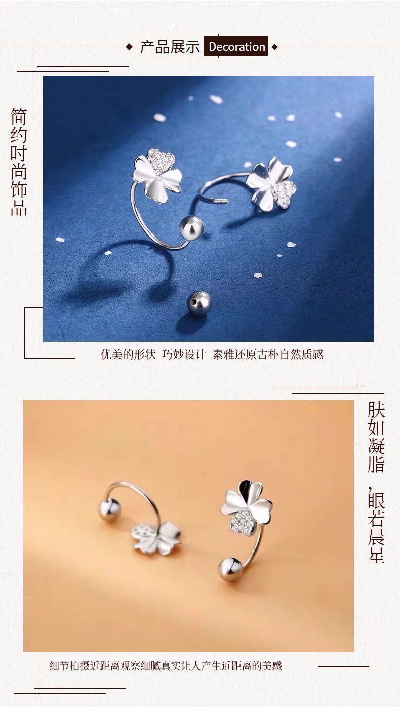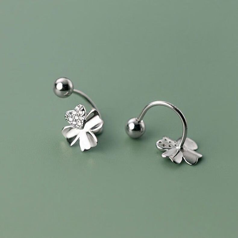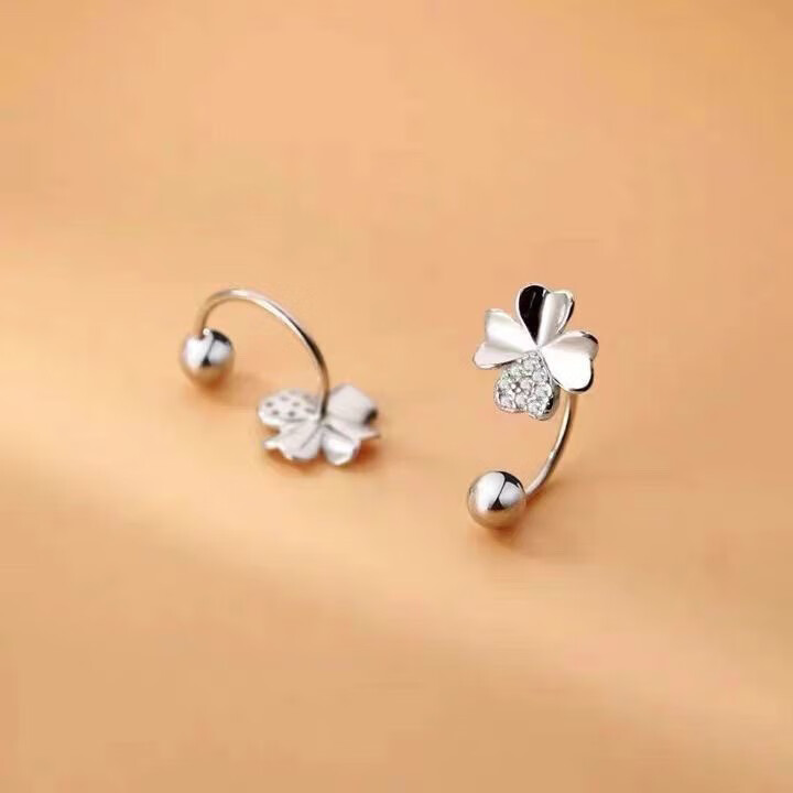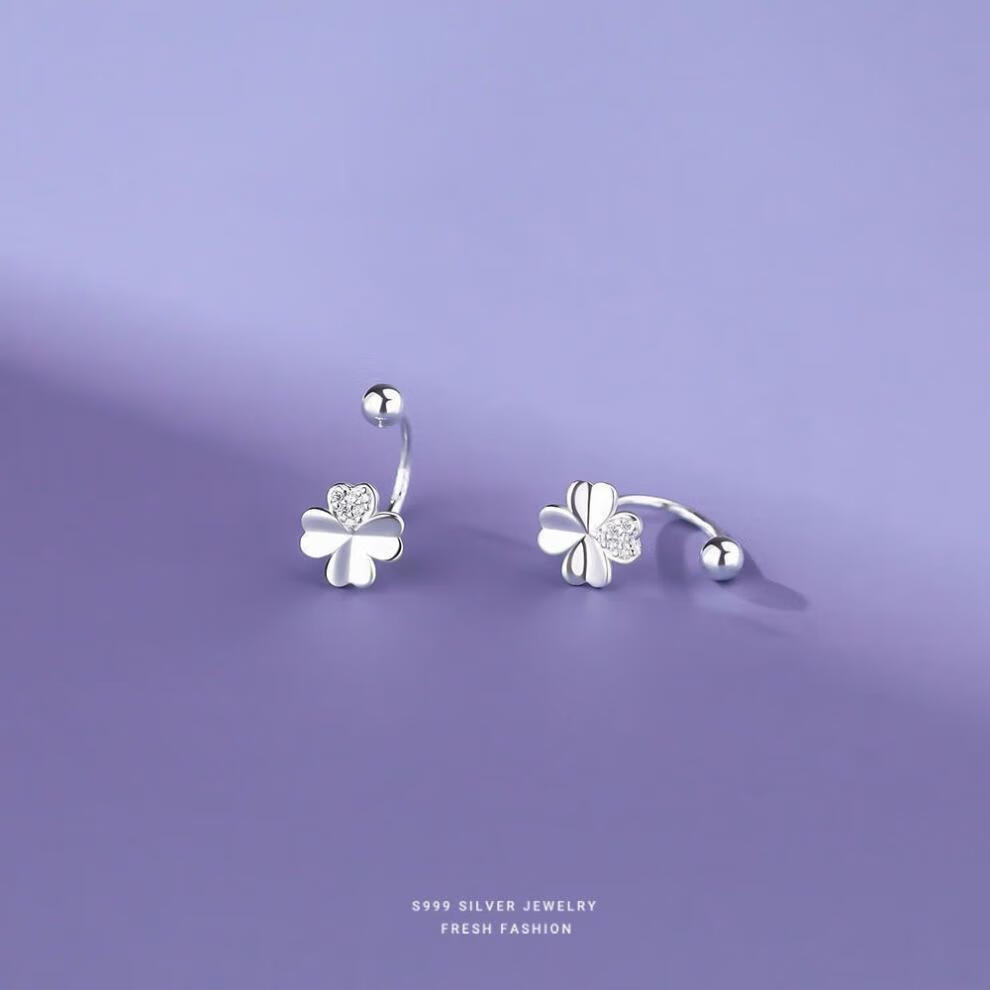 RSRDDY Old Phoenix 9999 sterling silver earrings four-leaf clover women's silver temperament sweet screw-buckle earrings for girls sterling silver four-leaf clover earrings Lao Fengxiang same style 2.99g limited time sale