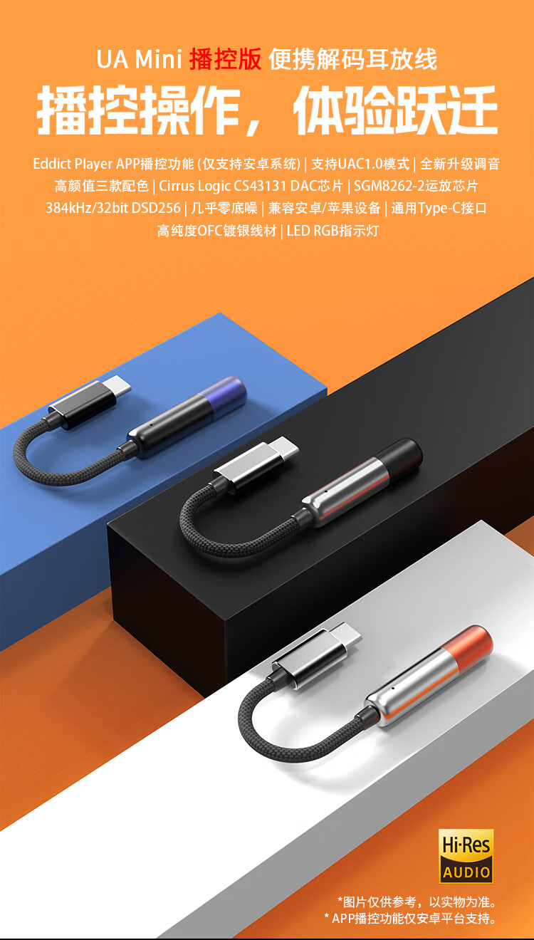 SHANLING UA Mini portable decoder amp cable type-c to 3.5mm adapter HIFI high-fidelity interface mobile phone and computer orange silver broadcast control version free cp100+m number when ordering