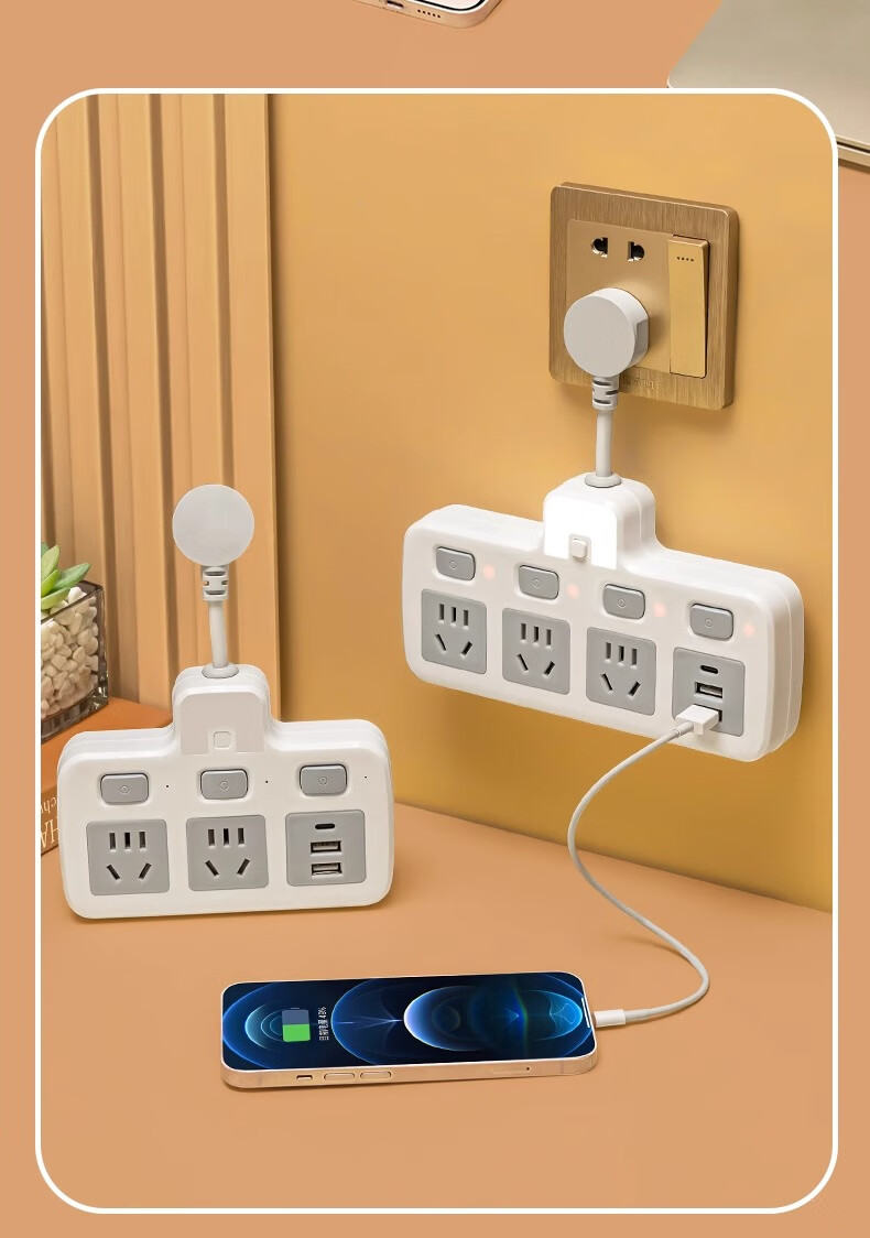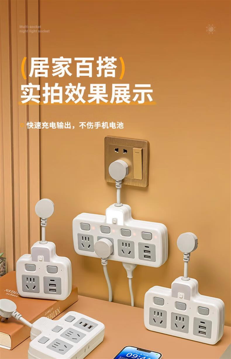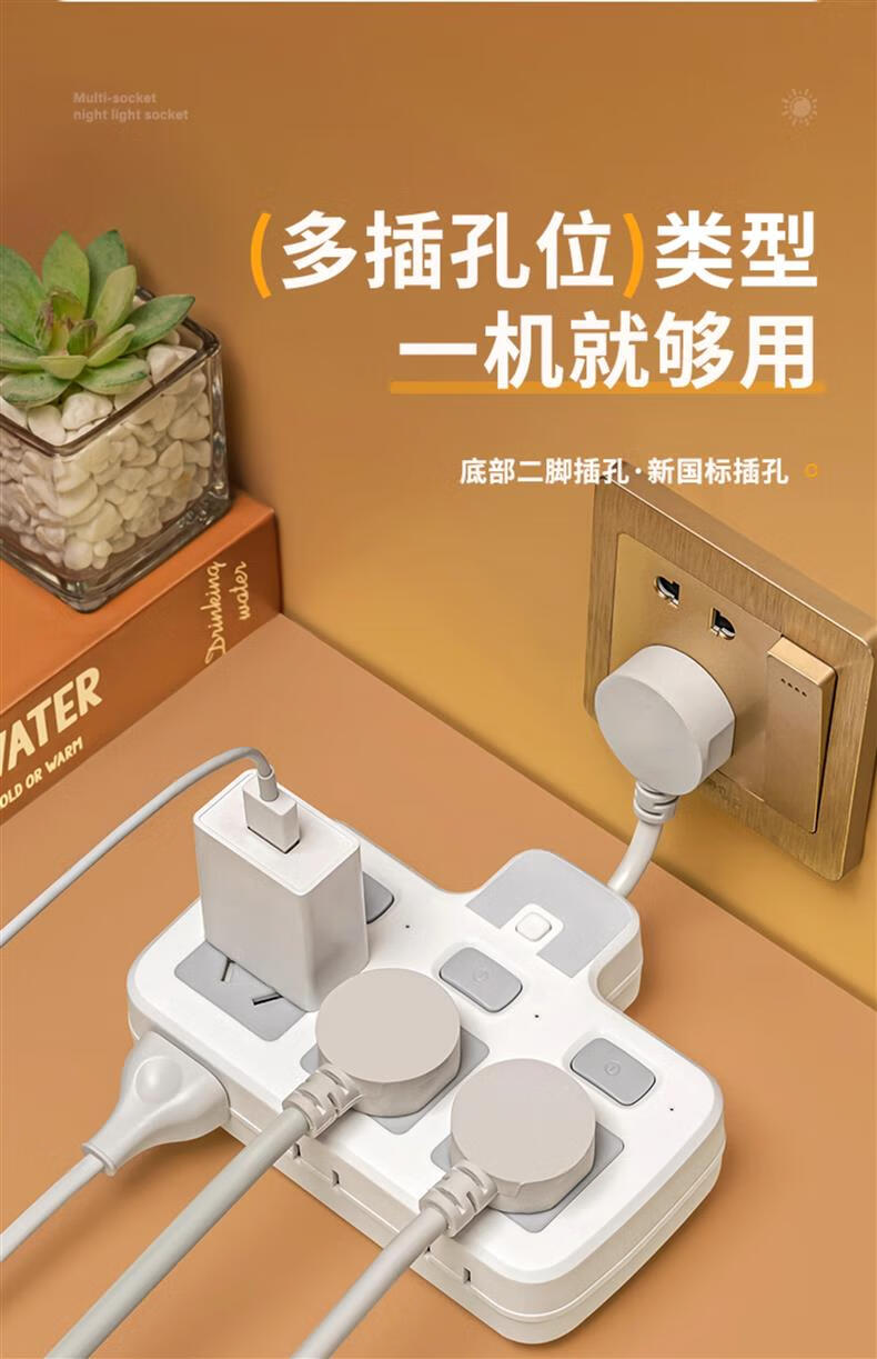 Bull (BULL) same socket wireless converter multi-hole one to two three usb night light multi-function independent bull wireless head-6 switch USB model