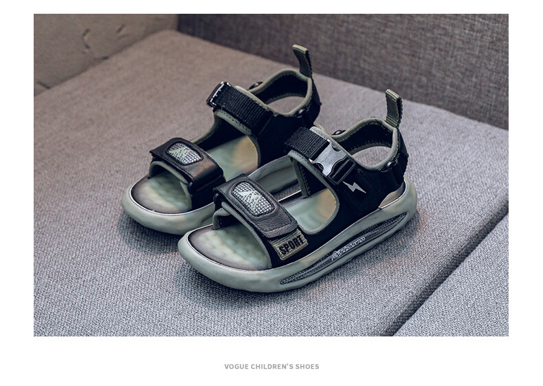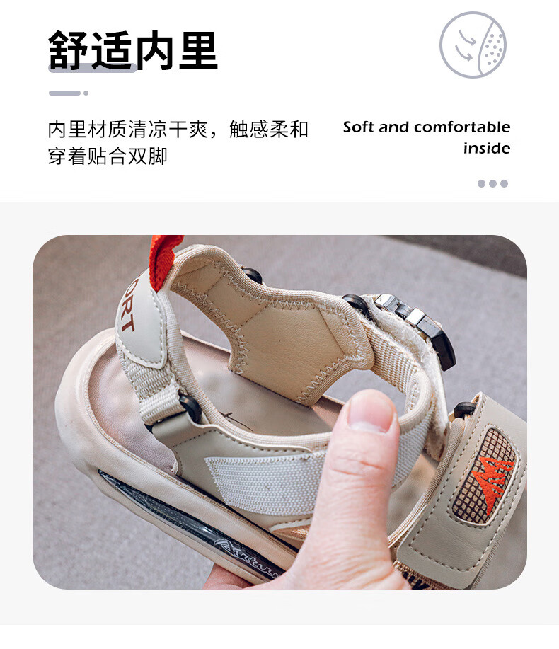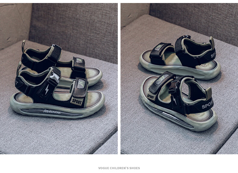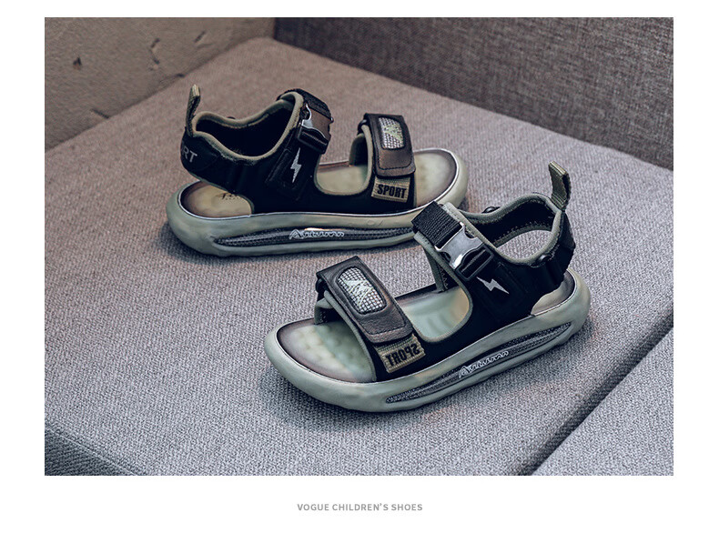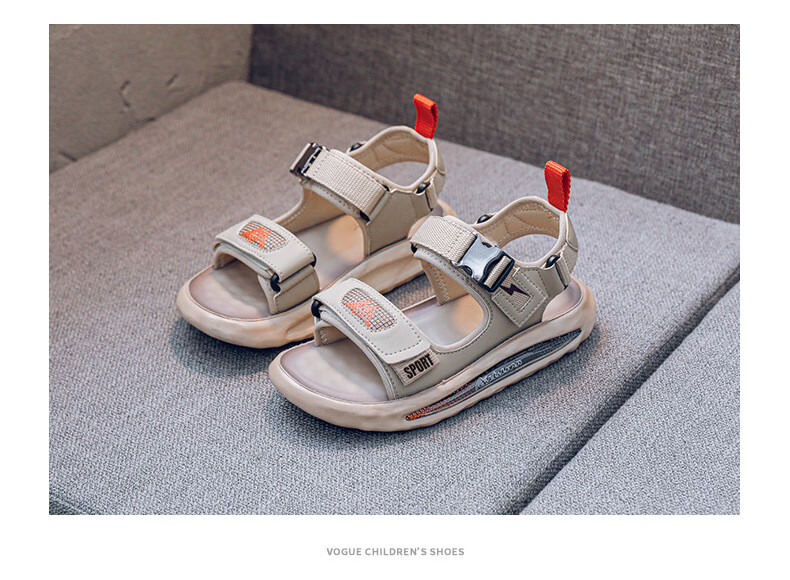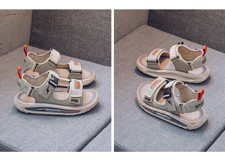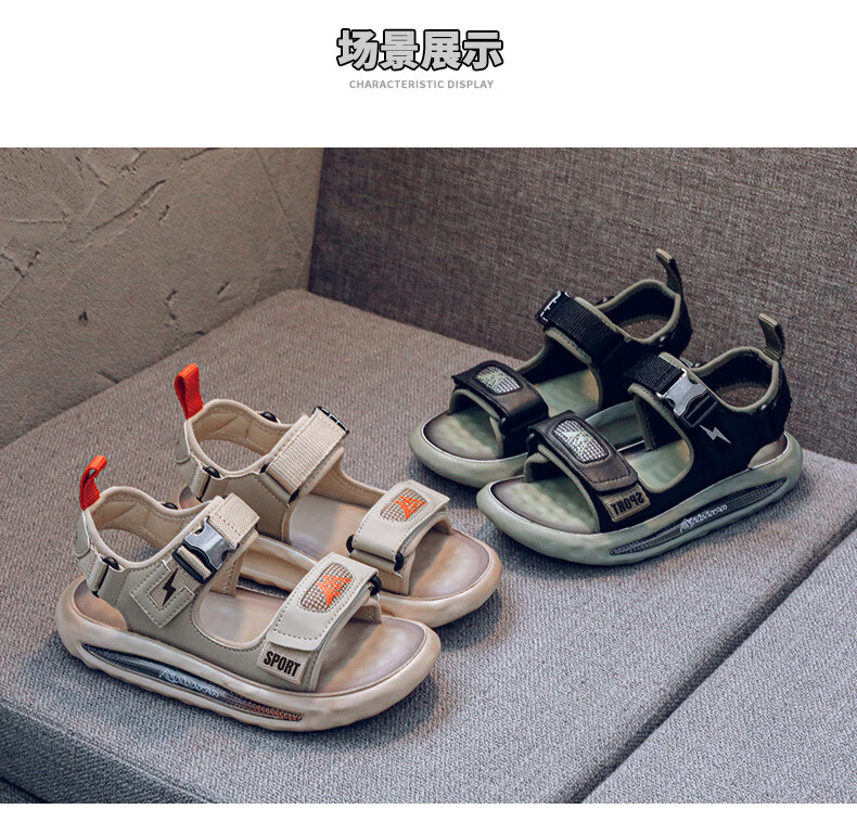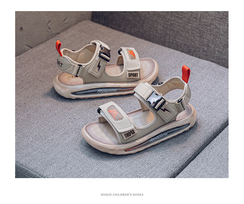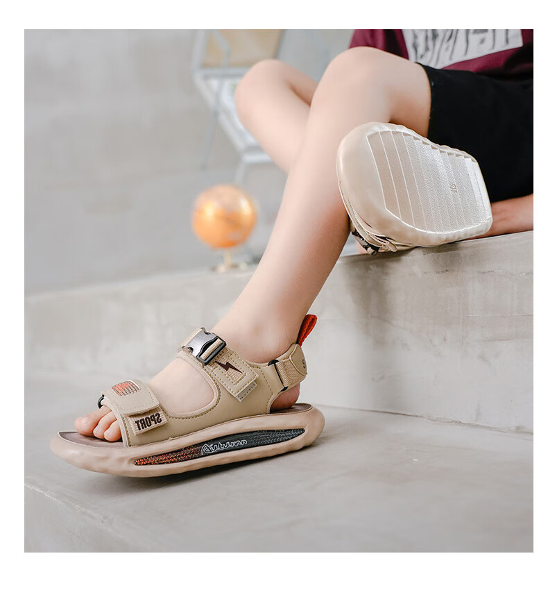 Children's Sandals 2025 New Summer Korean Version Velcro Boys' Shoes Large Children's Summer Style Little Boys Beach Shoes Khaki Color Size 35 Inner Length 22cm