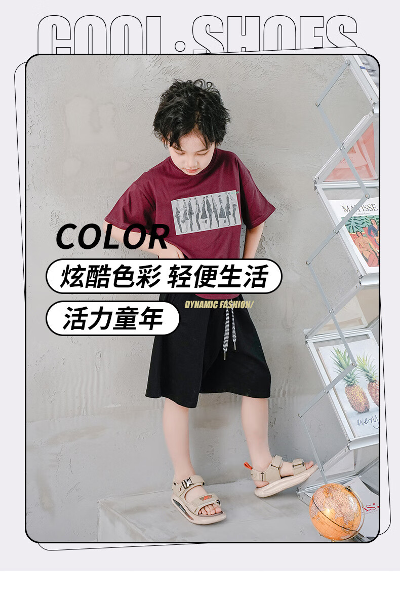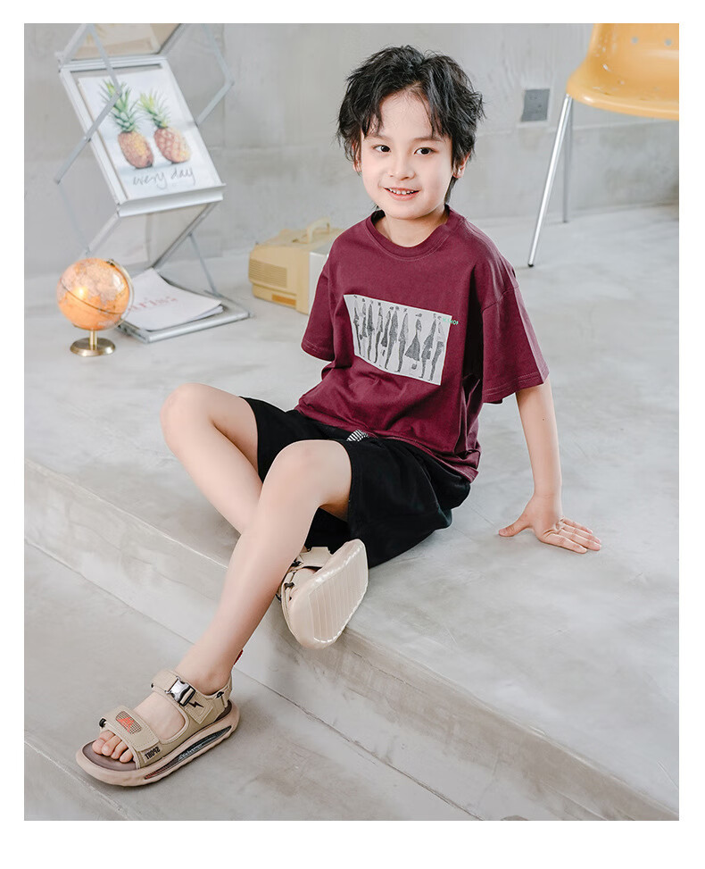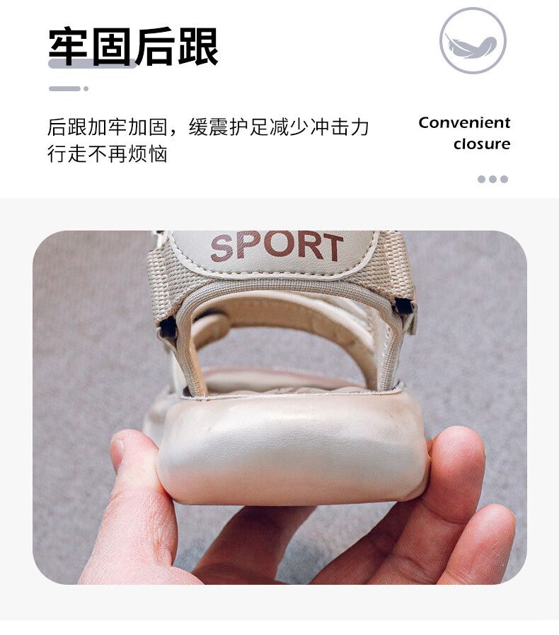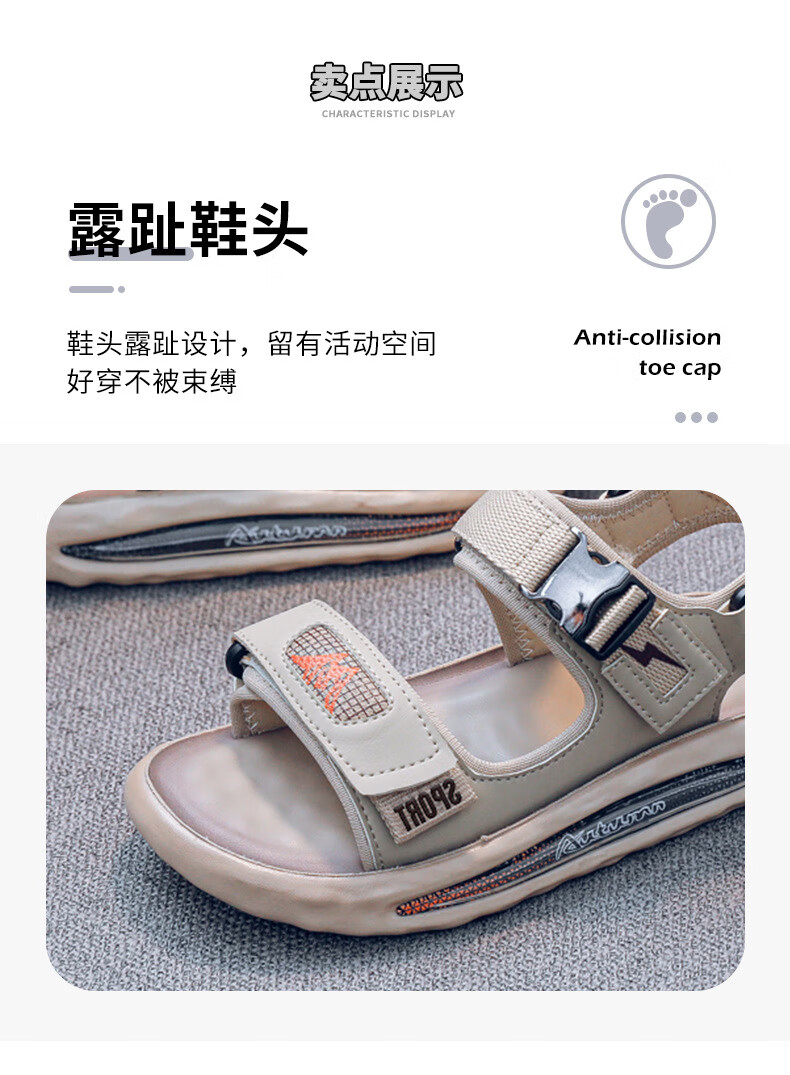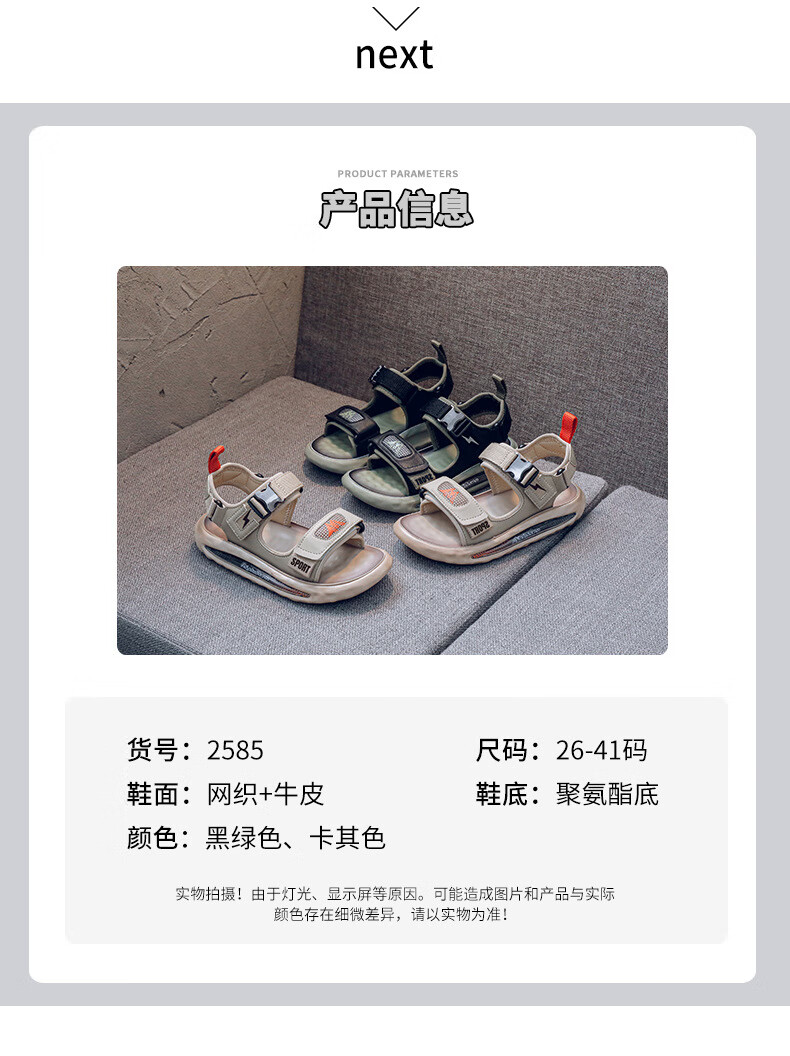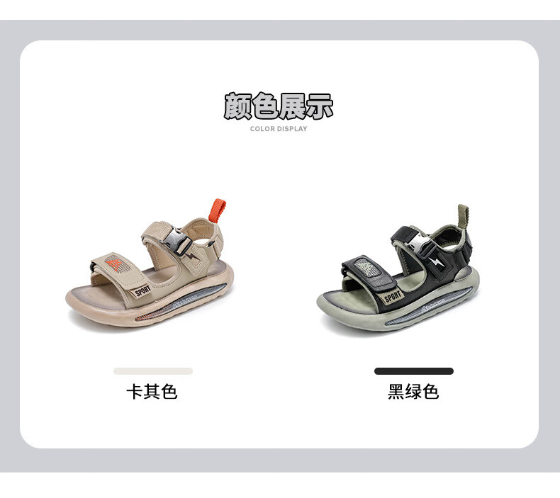Children's Sandals 2025 New Summer Korean Version Velcro Boys' Shoes Large Children's Summer Style Little Boys Beach Shoes Khaki Color Size 35 Inner Length 22cm