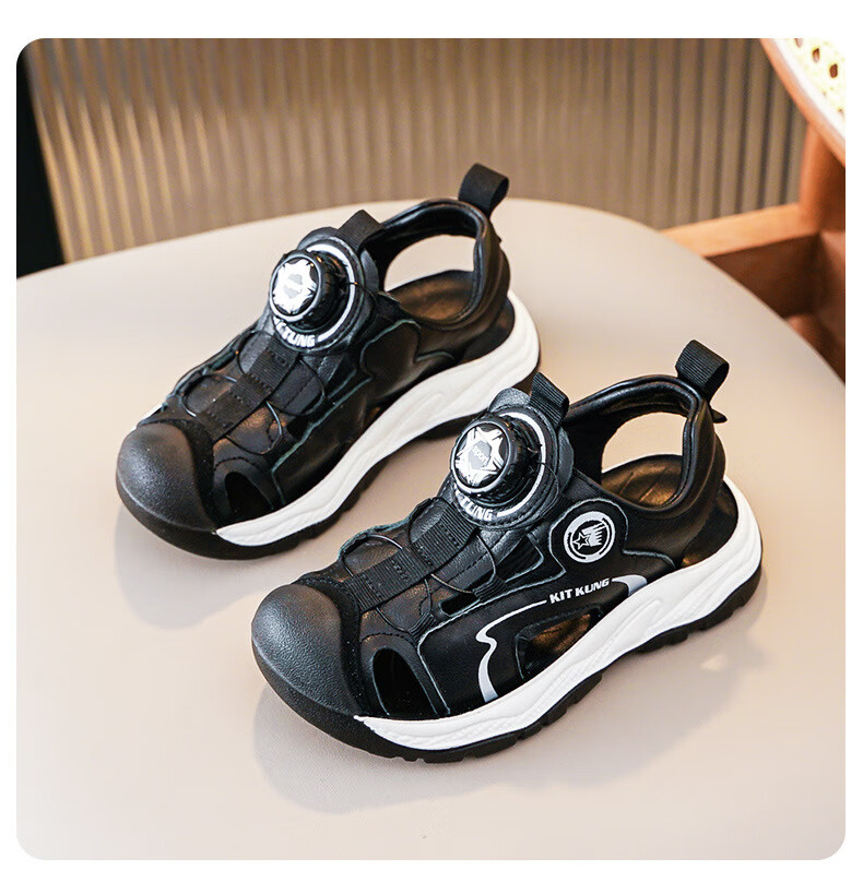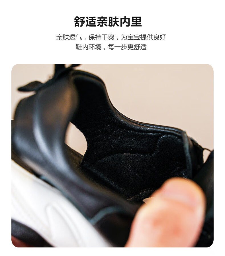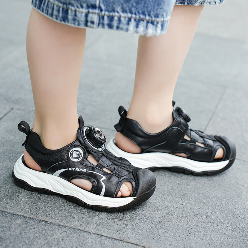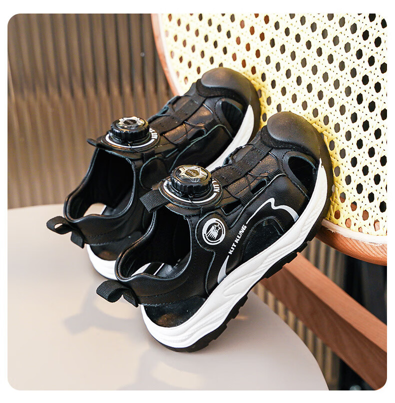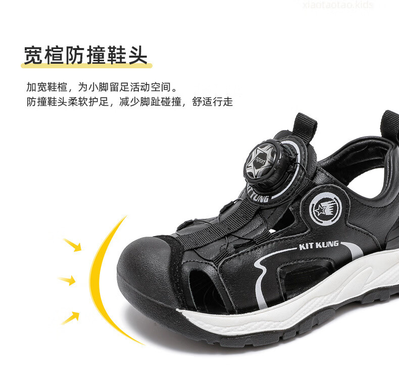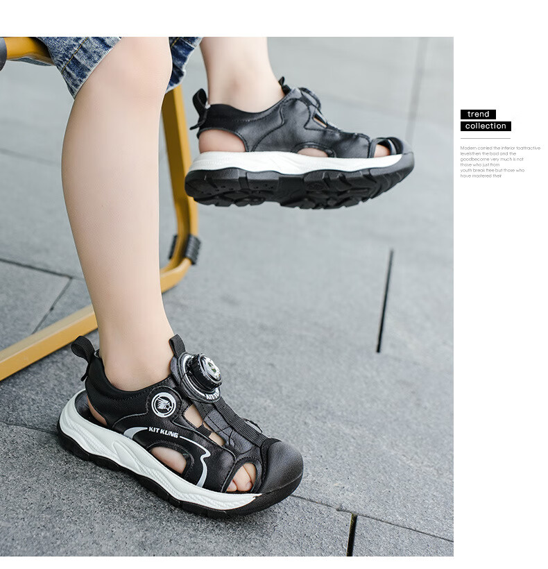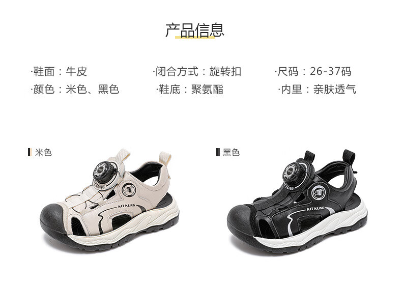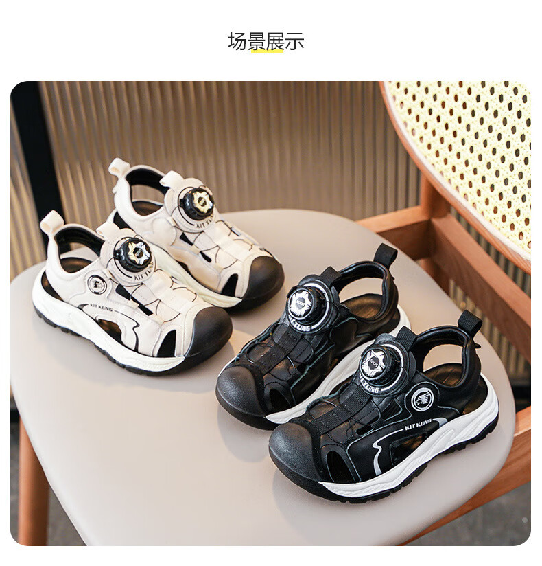 Children's sandals summer style cowhide breathable baby shoes soft sole non-slip swivel buckle boys' toe beach sneakers beige size 26 inner length 16.5cm