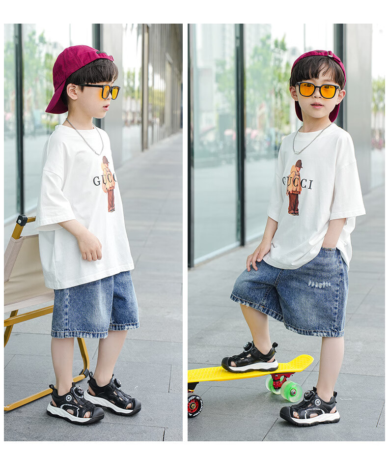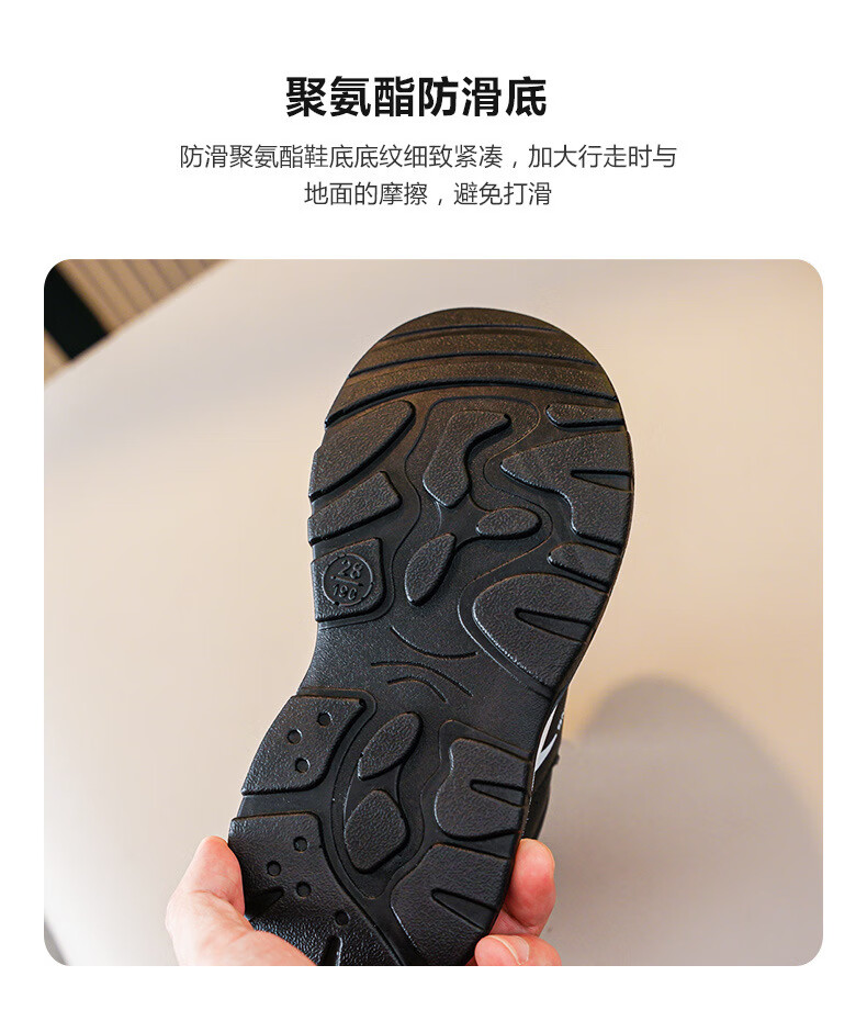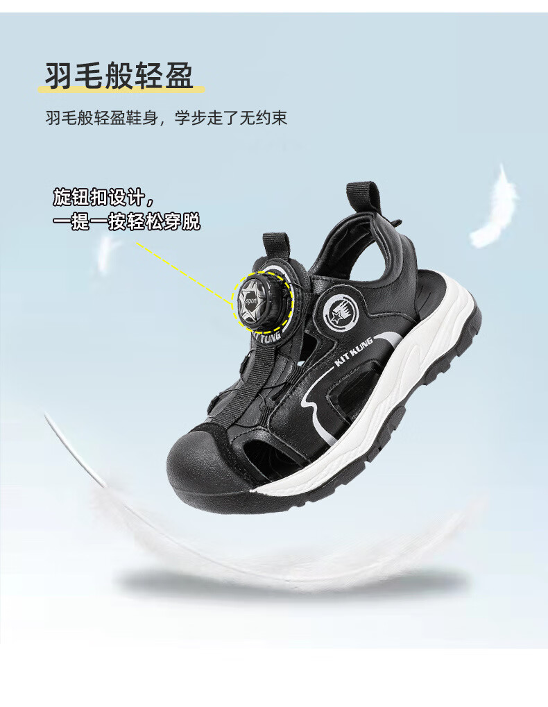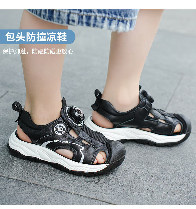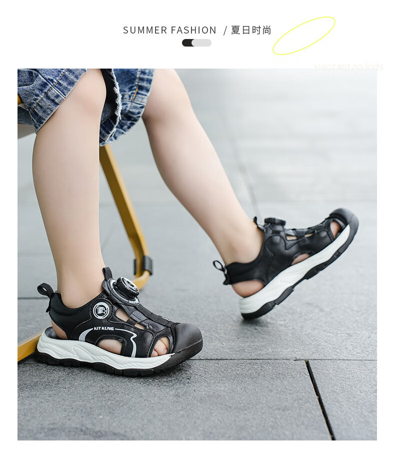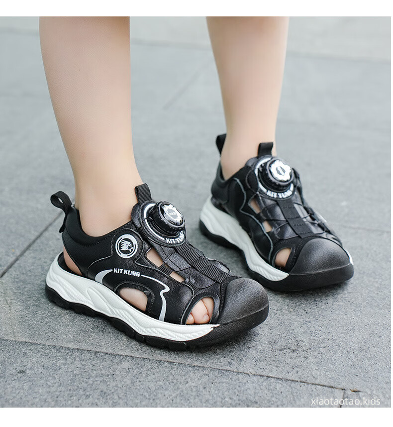 Children's sandals summer style cowhide breathable baby shoes soft sole non-slip swivel buckle boys' toe beach sneakers beige size 26 inner length 16.5cm