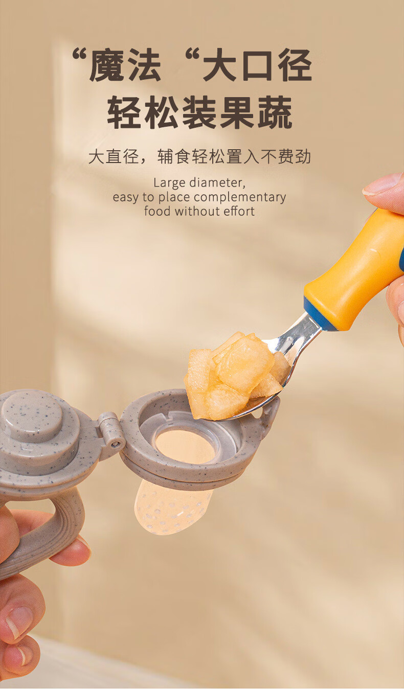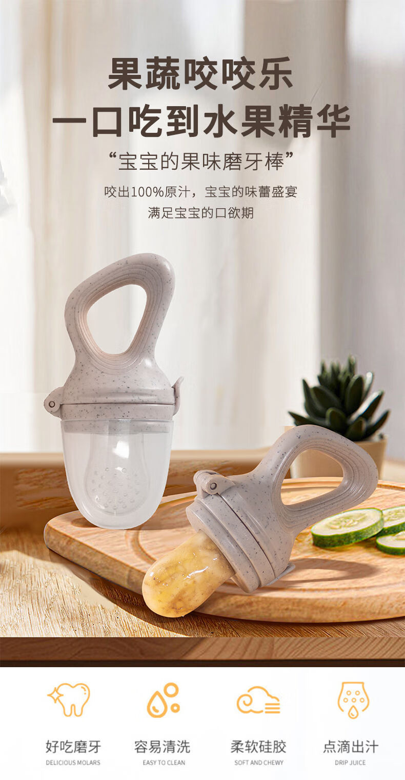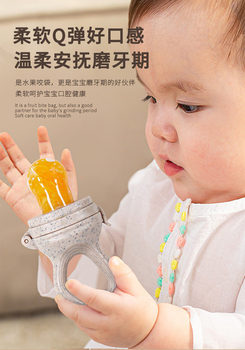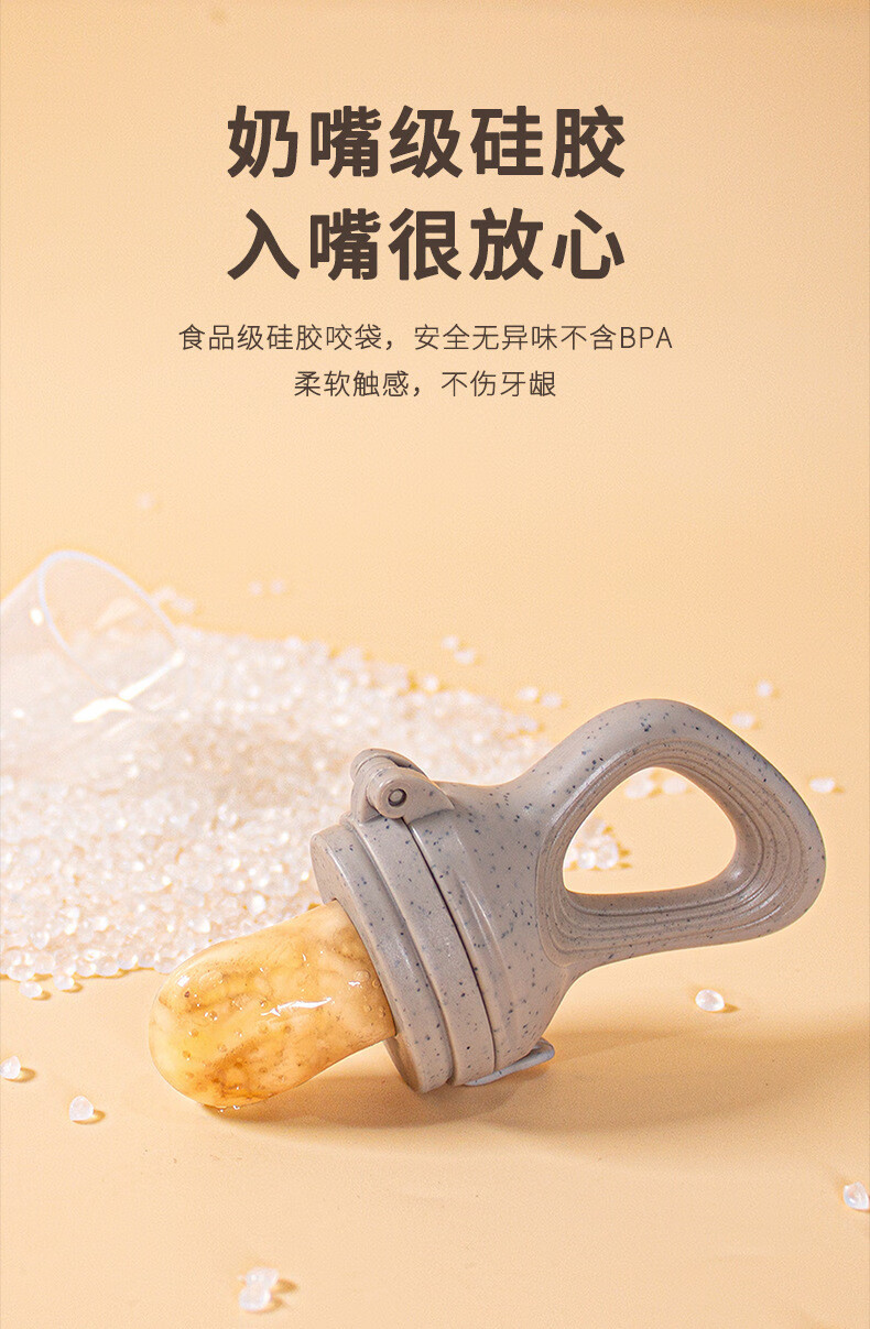 Beile pro baby bite fruit food supplement artifact children's teether baby comfort food supplement food grade silicone fruit and vegetable music gray