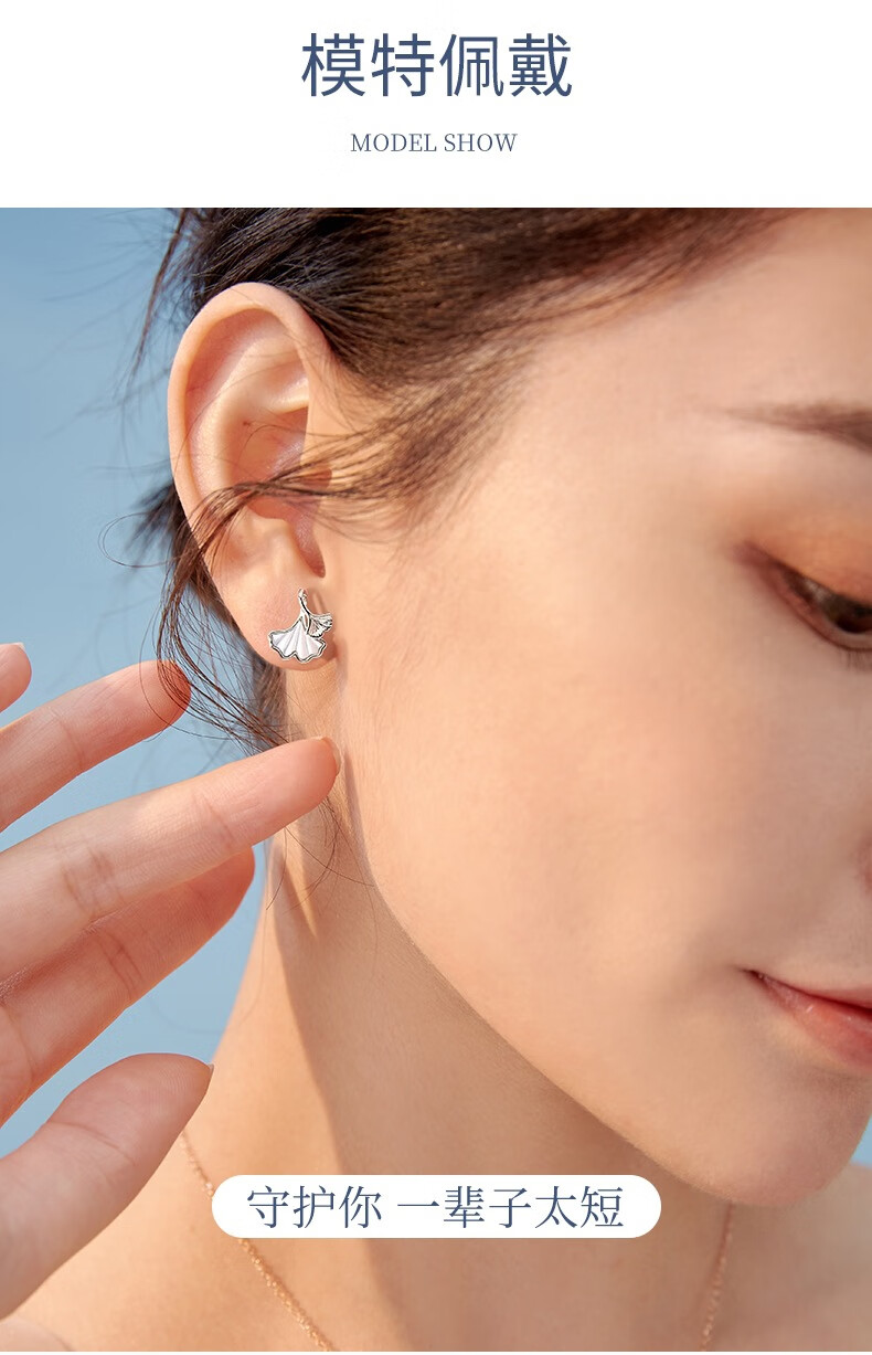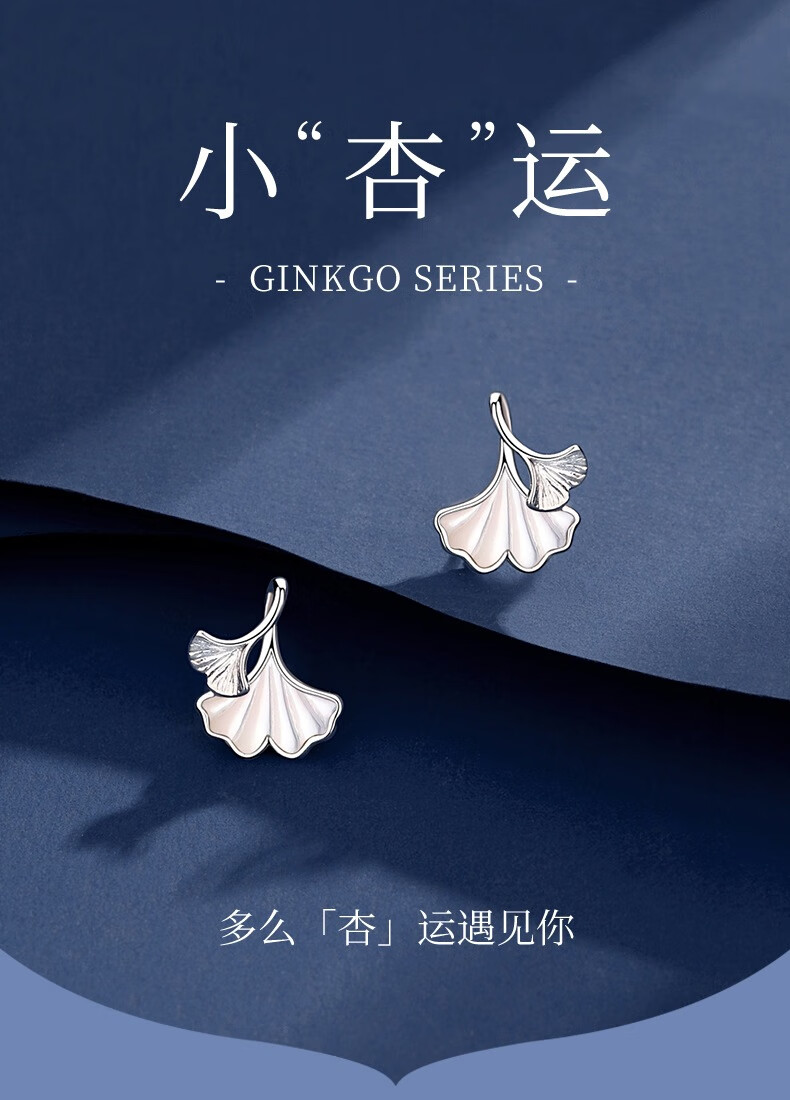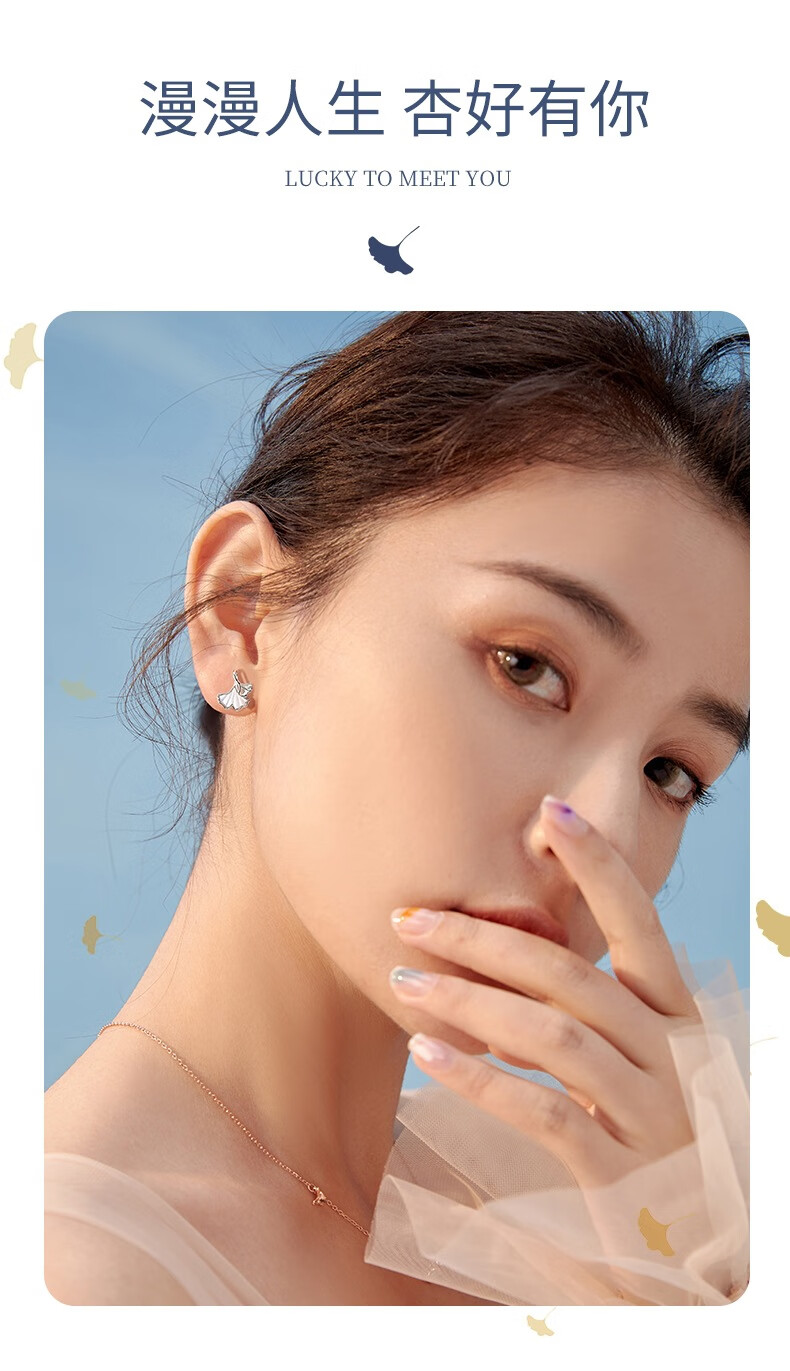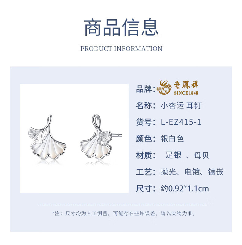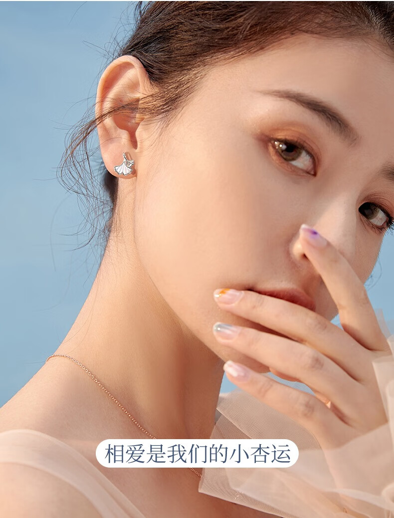 Lao Fengxiang Xiaoxing Yunzu silver earrings for women 2025 new earrings for women light luxury niche high-end birthday gift for girls L-EZ415 Ginkgo leaf earrings + brand gift box