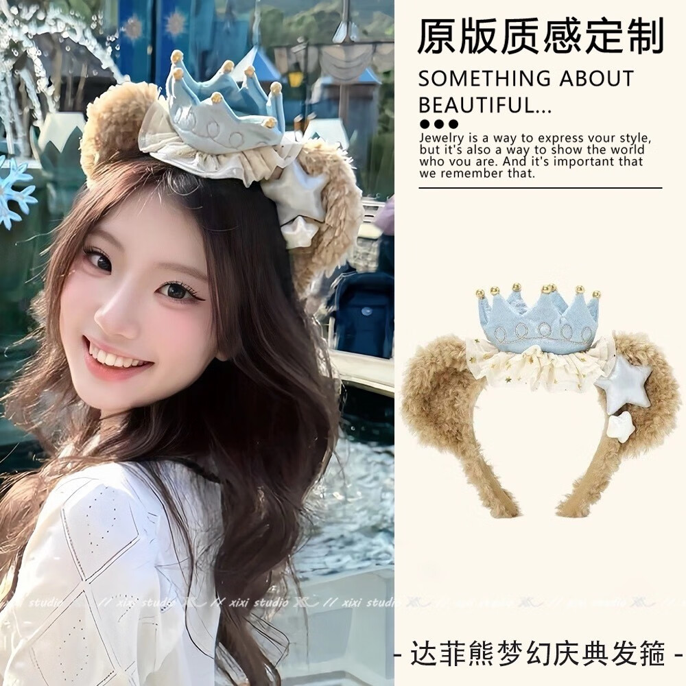 ENRMIIV Lina Belle bow headband, cute face-showing small headband hair accessory, suitable for amusement park photo and check-in headwear Belle's dream celebration headband