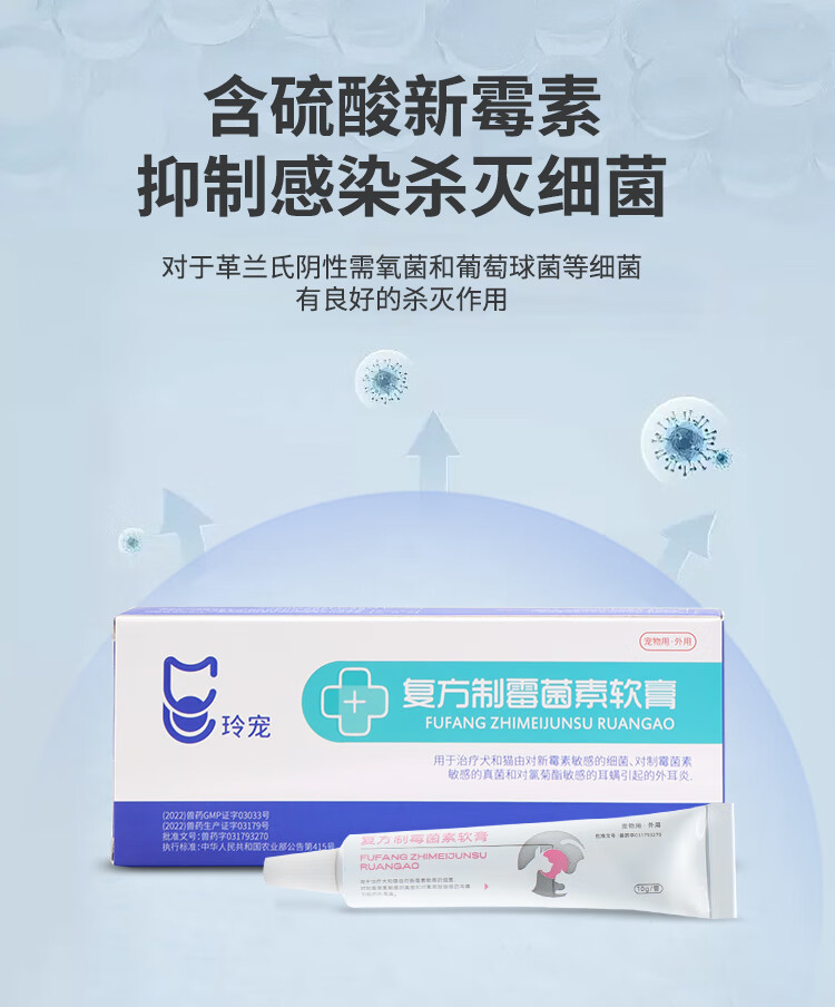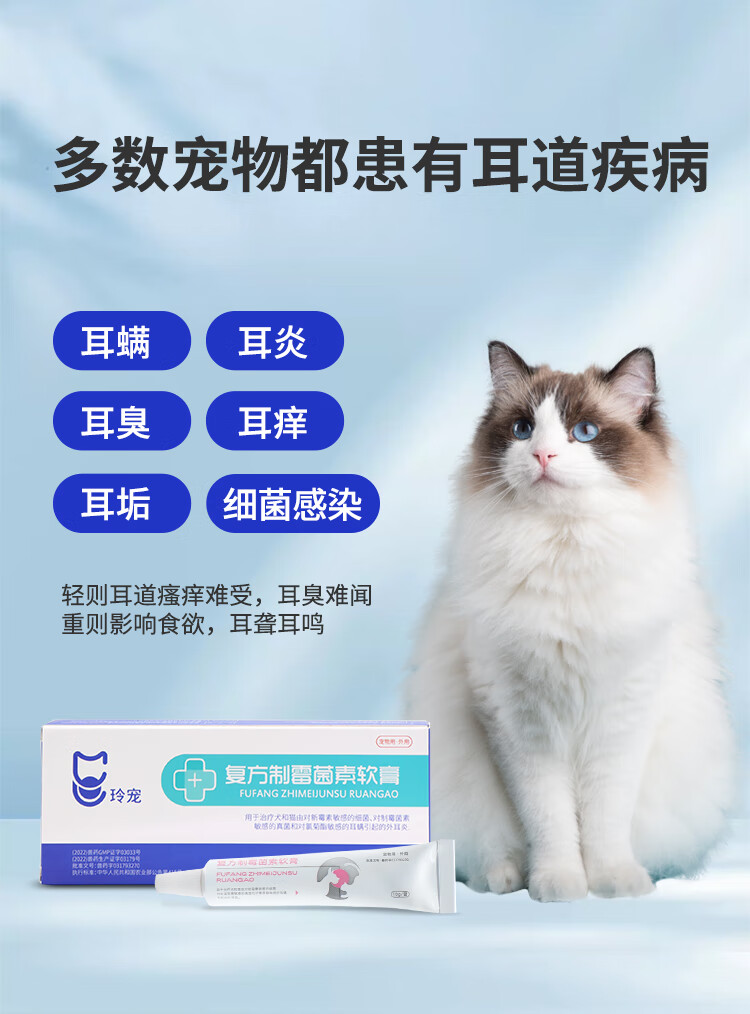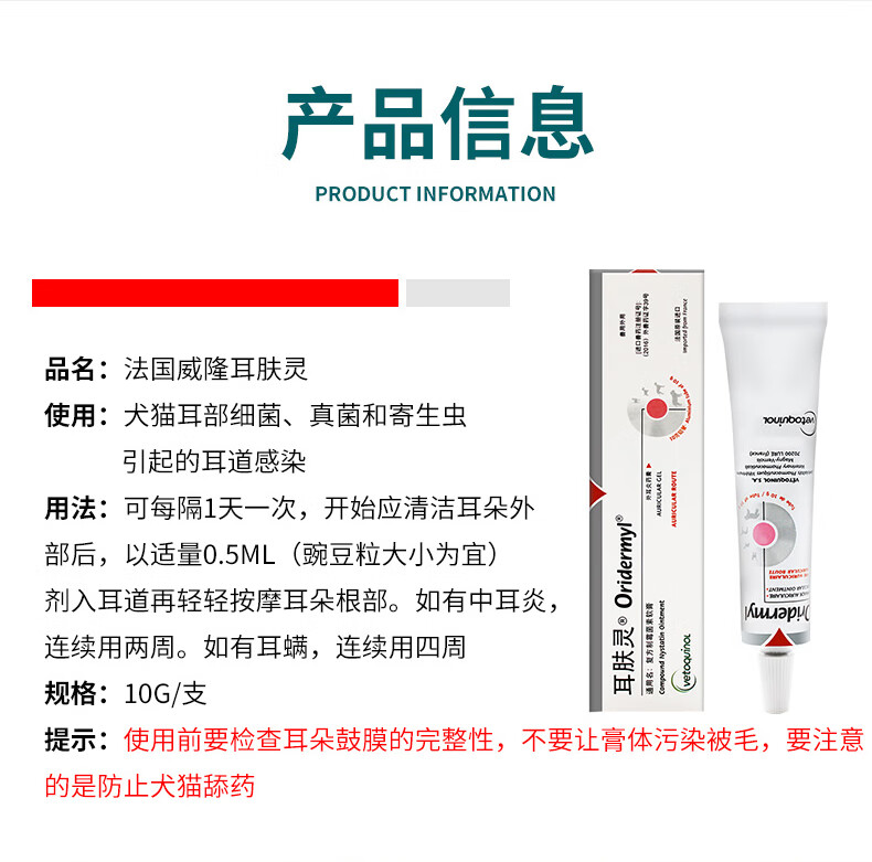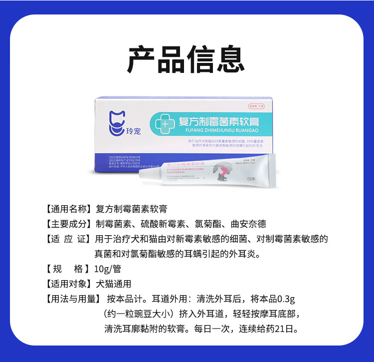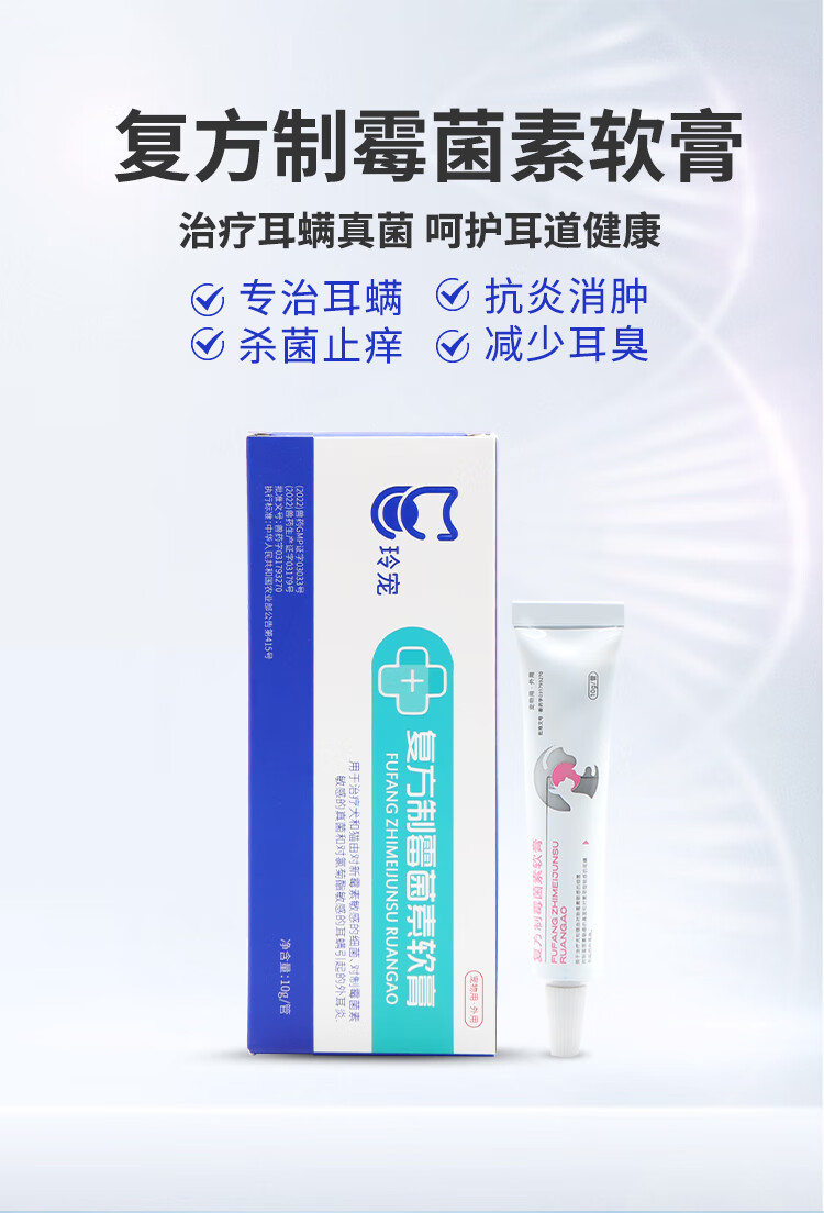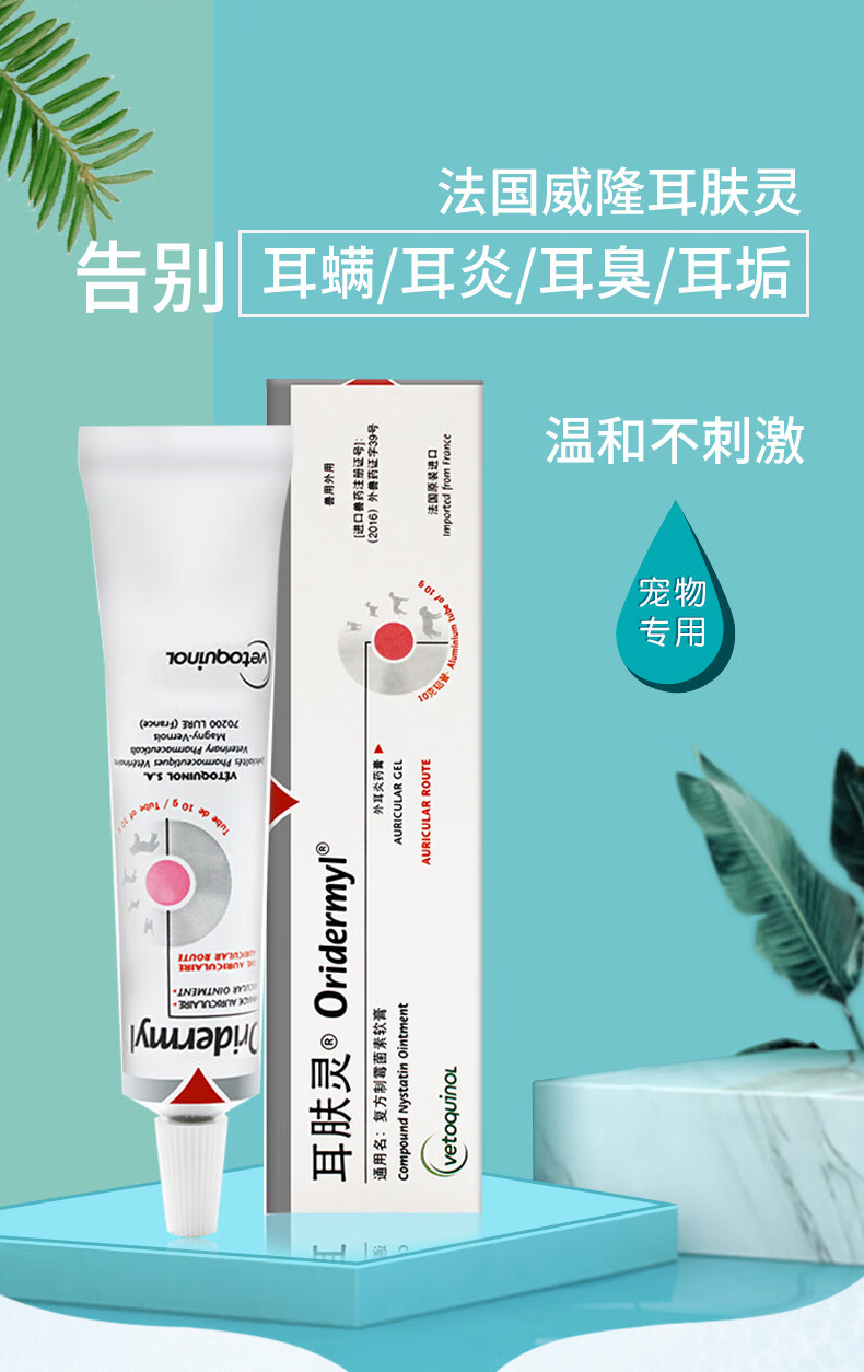 Weilong Earfuling 10g Compound Nystatin Ointment for Cats and Dogs Ear Mites and Otitis Ointment Ear Cleansing, Anti-Inflammation and Anti-itching Imported Vic Ercoshu 10ml