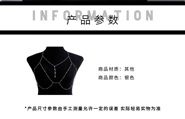 Shixi chest chain men's body chain large size sexy and sexy high-end collar necklace bar decorative chain couple waist chain boys silver chest chain + necklace