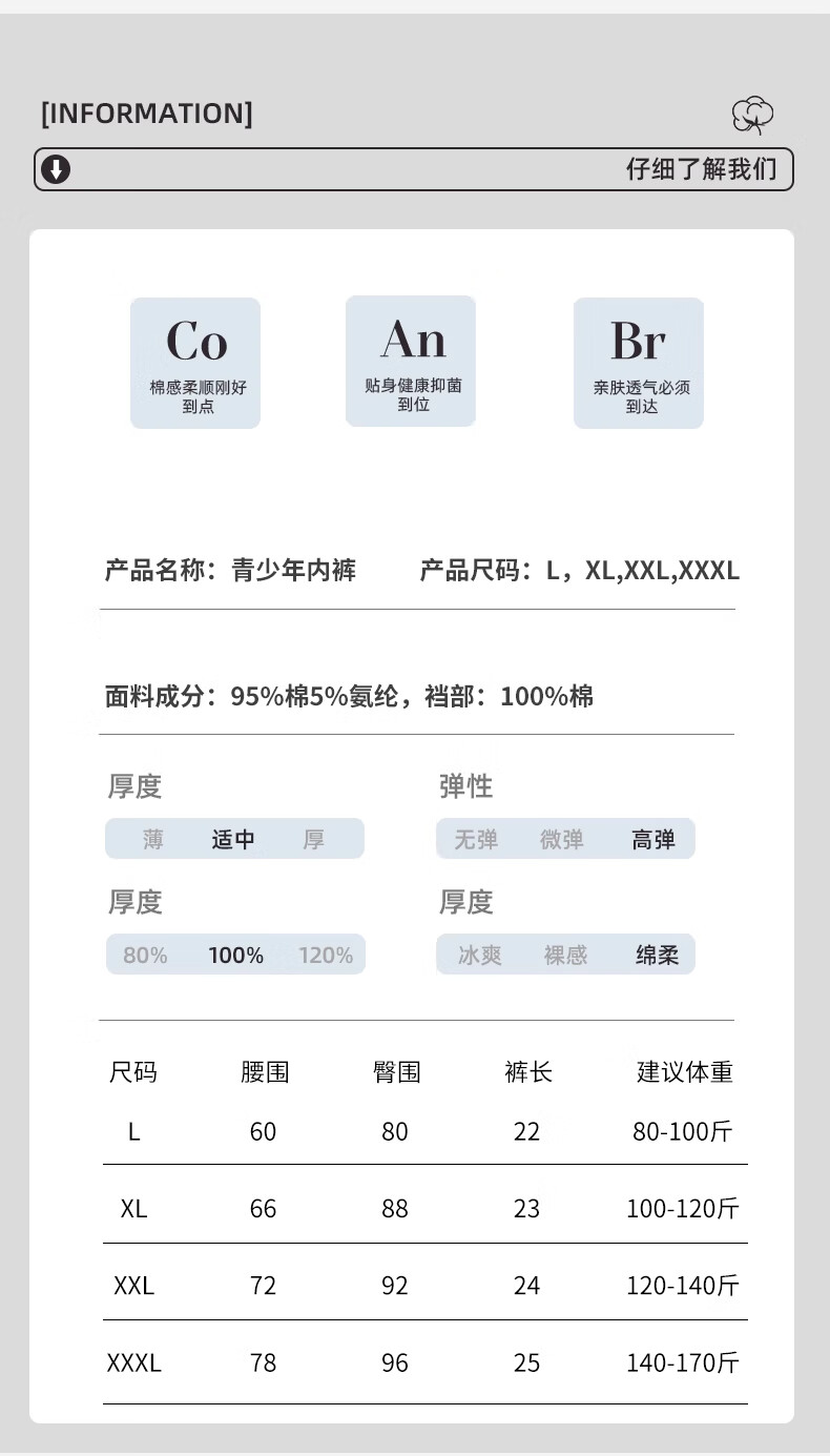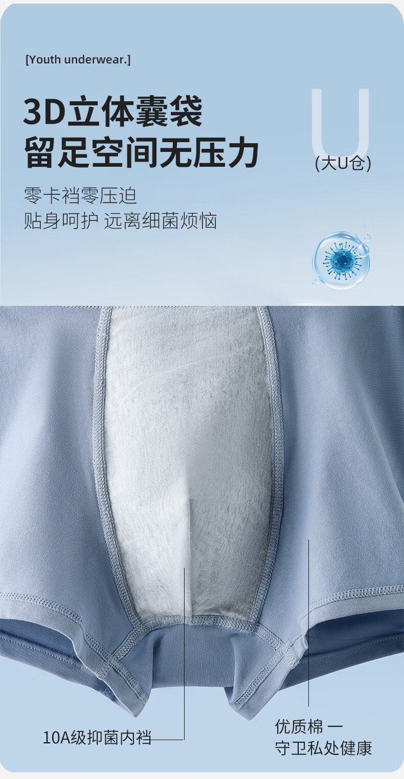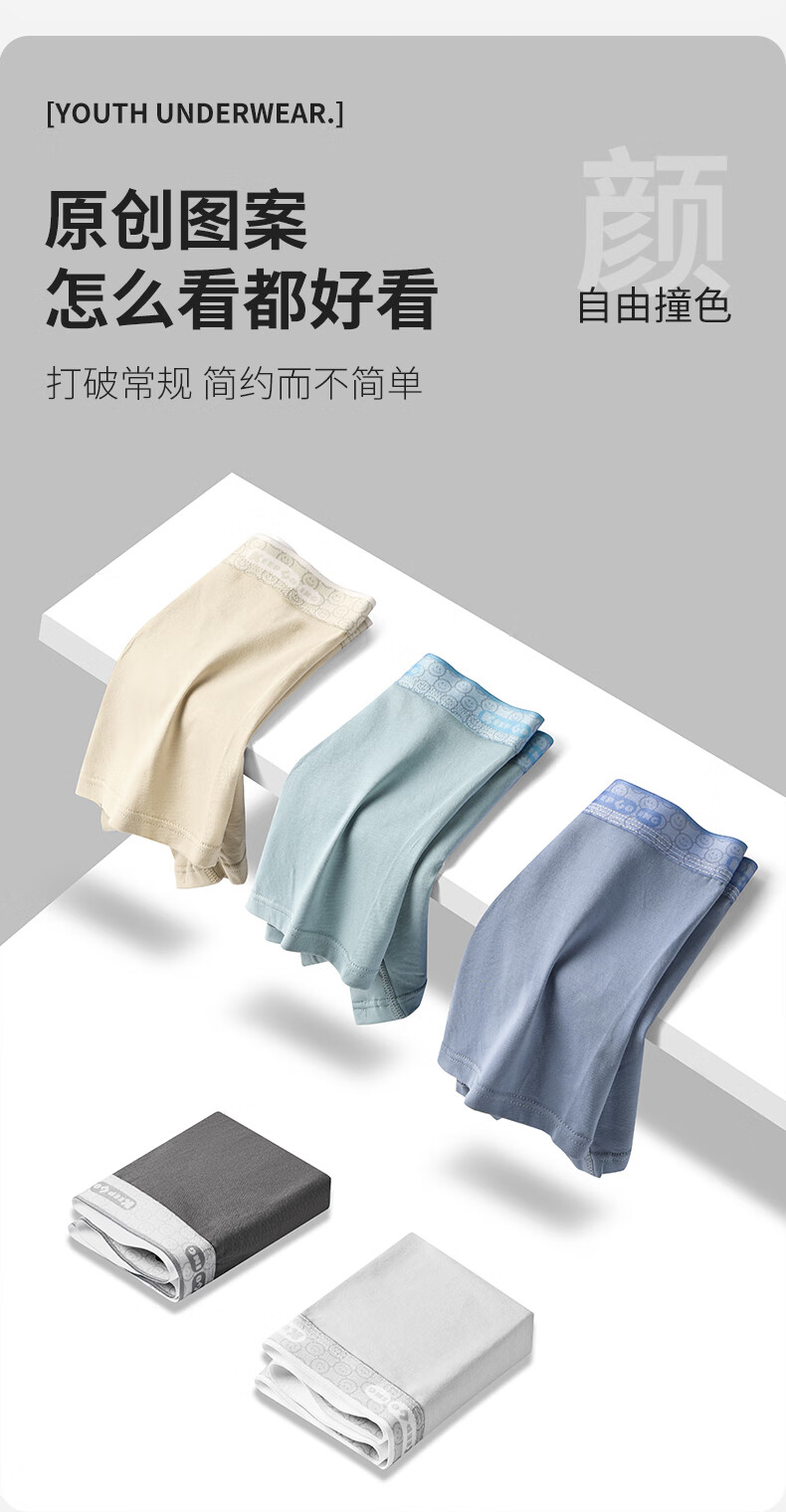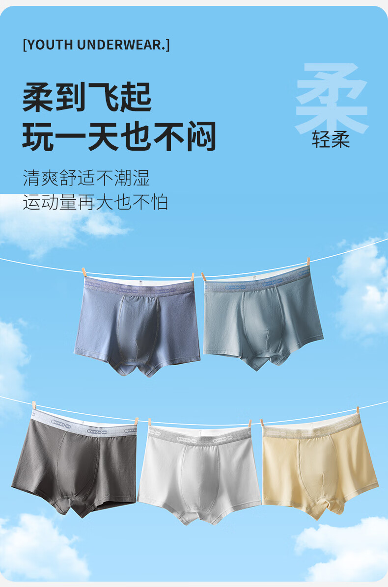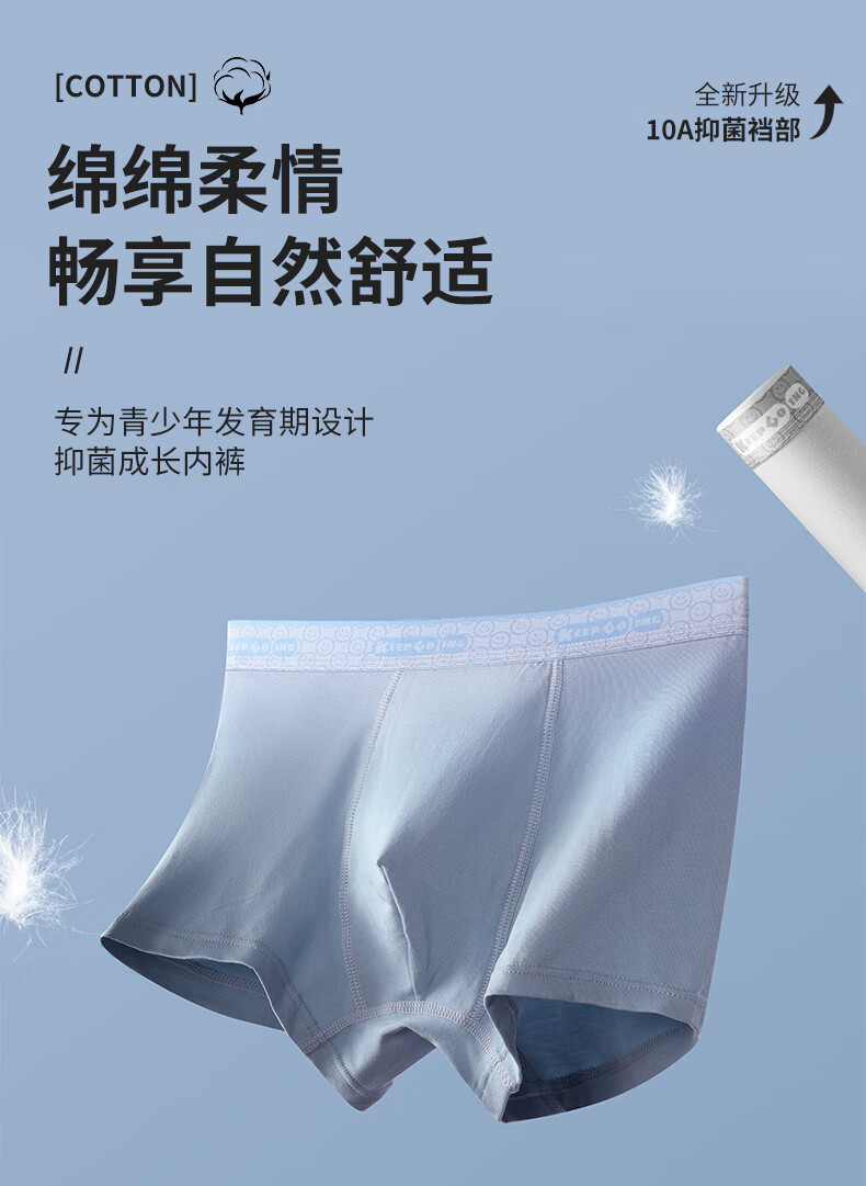 Langsha Youth Underwear Boys' Middle and Large Children's Pure Cotton Boxer Junior High School Students 12 Years and Over Development Period Fat Children Loose Blue + Green + Gray 170 (L) Recommended Weight 70-90 Jin Jin is equal to 0.5 kg