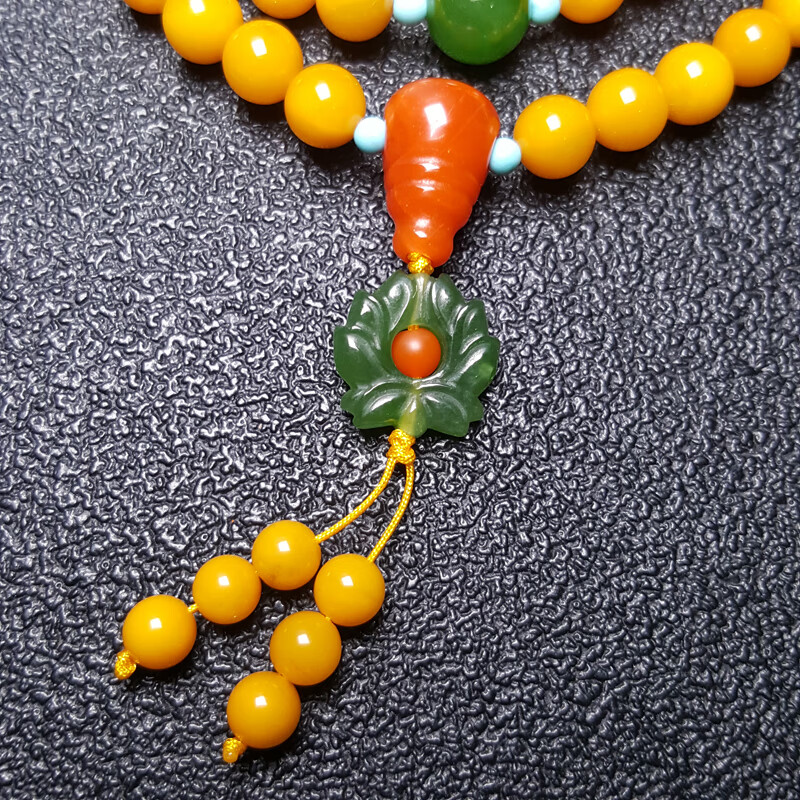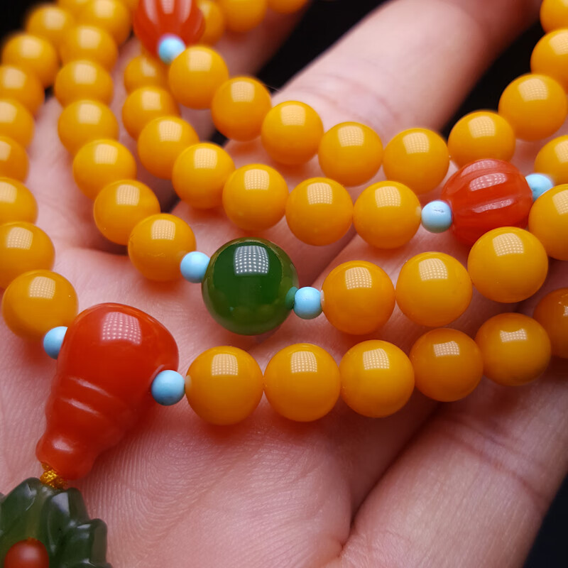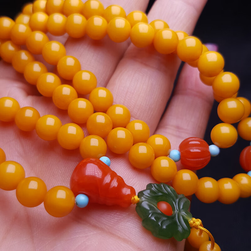 Muhuanchun old beeswax bracelet 108 Buddha beads multi-circle bracelet bracelet necklace lanyard chicken oil yellow sweater chain Russian amber diameter about 6 mm 20 grams