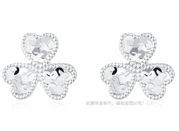 Gongzhan platinum clover earrings small and exquisite earrings pt950 platinum lucky flower earrings birthday gift for girlfriend lucky clover platinum earrings a pair about 2.5-2.7 grams
