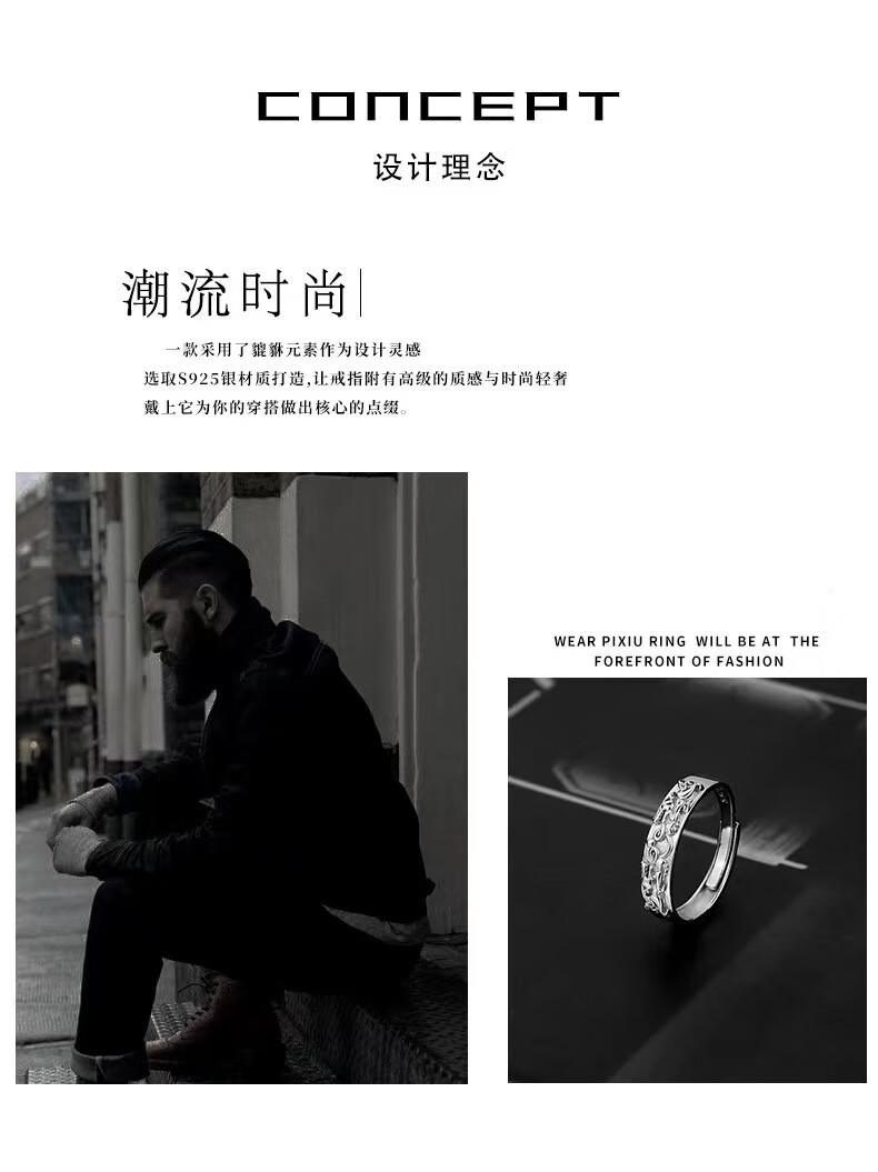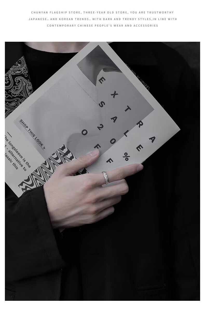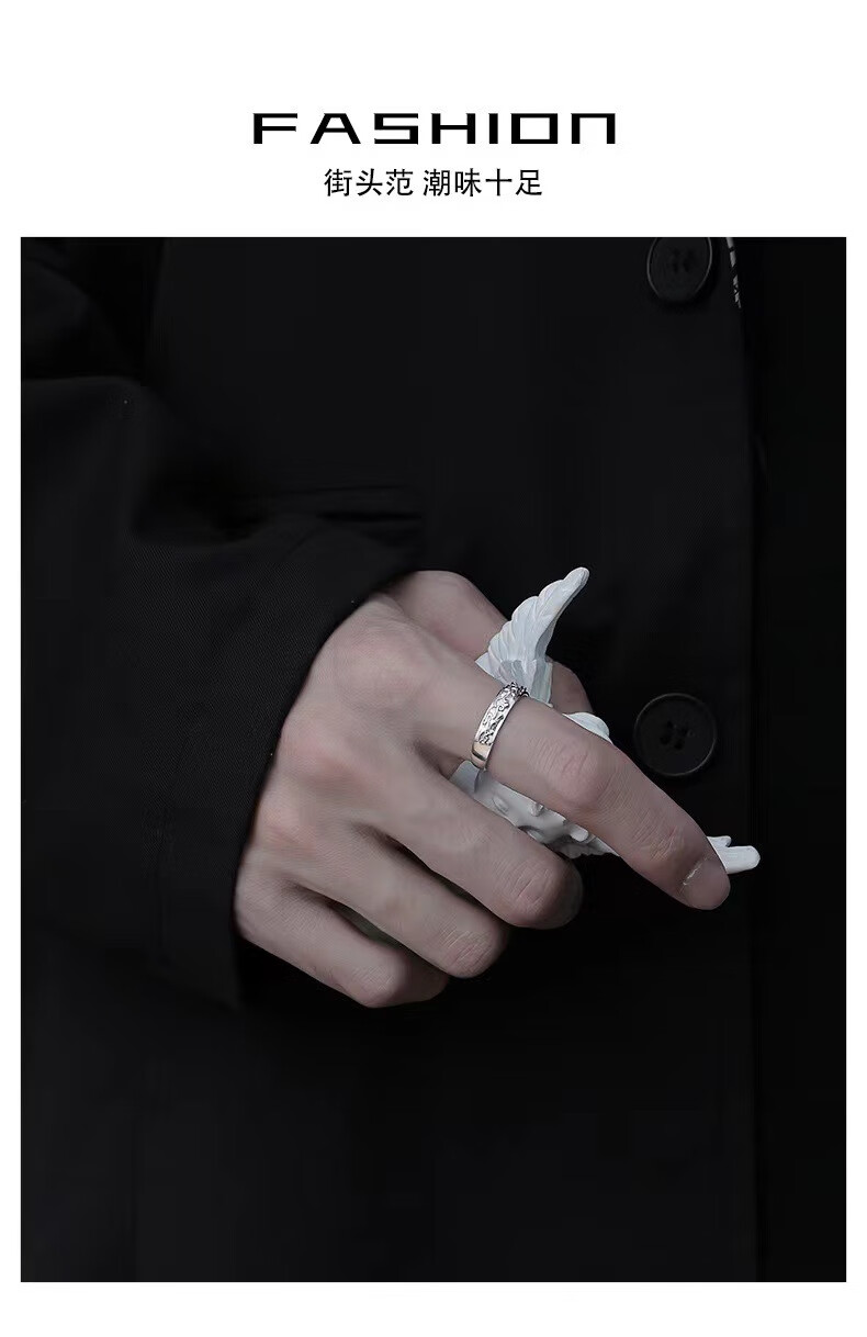 Yechi Pixiu Ring Trendy Niche Index Finger Single Ring Student Simple Versatile Cold Style Boy Opening Live Mouth Ring Pixiu Ring Opening Adjustable