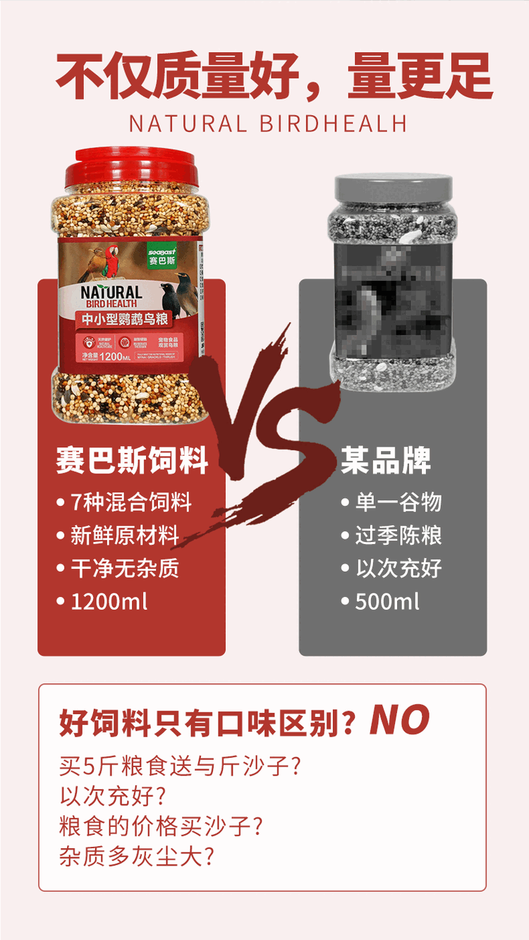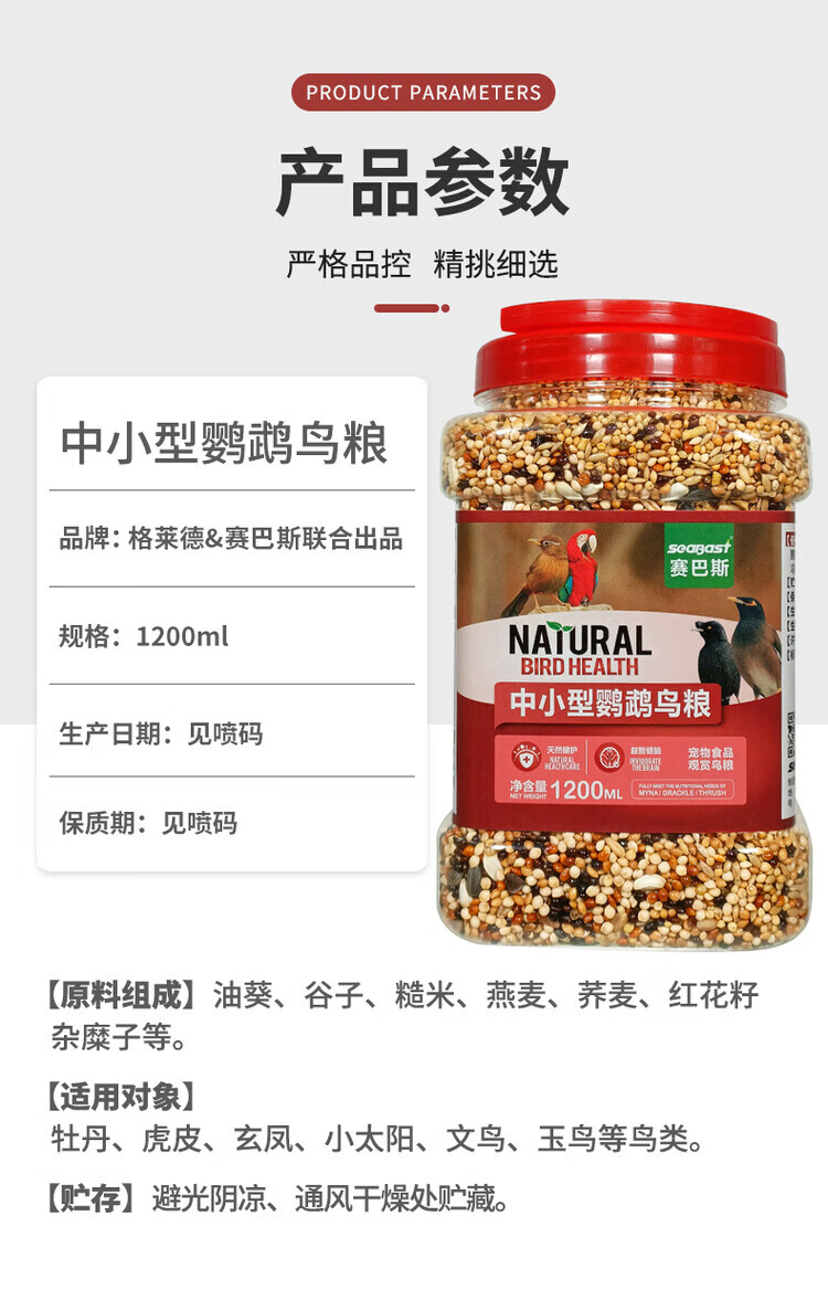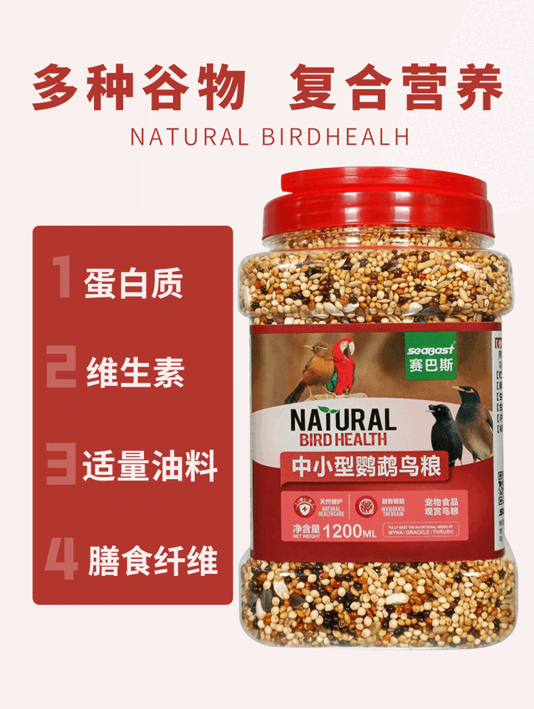 Geledor small and medium-sized black phoenix and peony parrot bird food, daily general calcium supplement, nutritious bird food, mixed seed grain, 1200ml barrel (full price food)