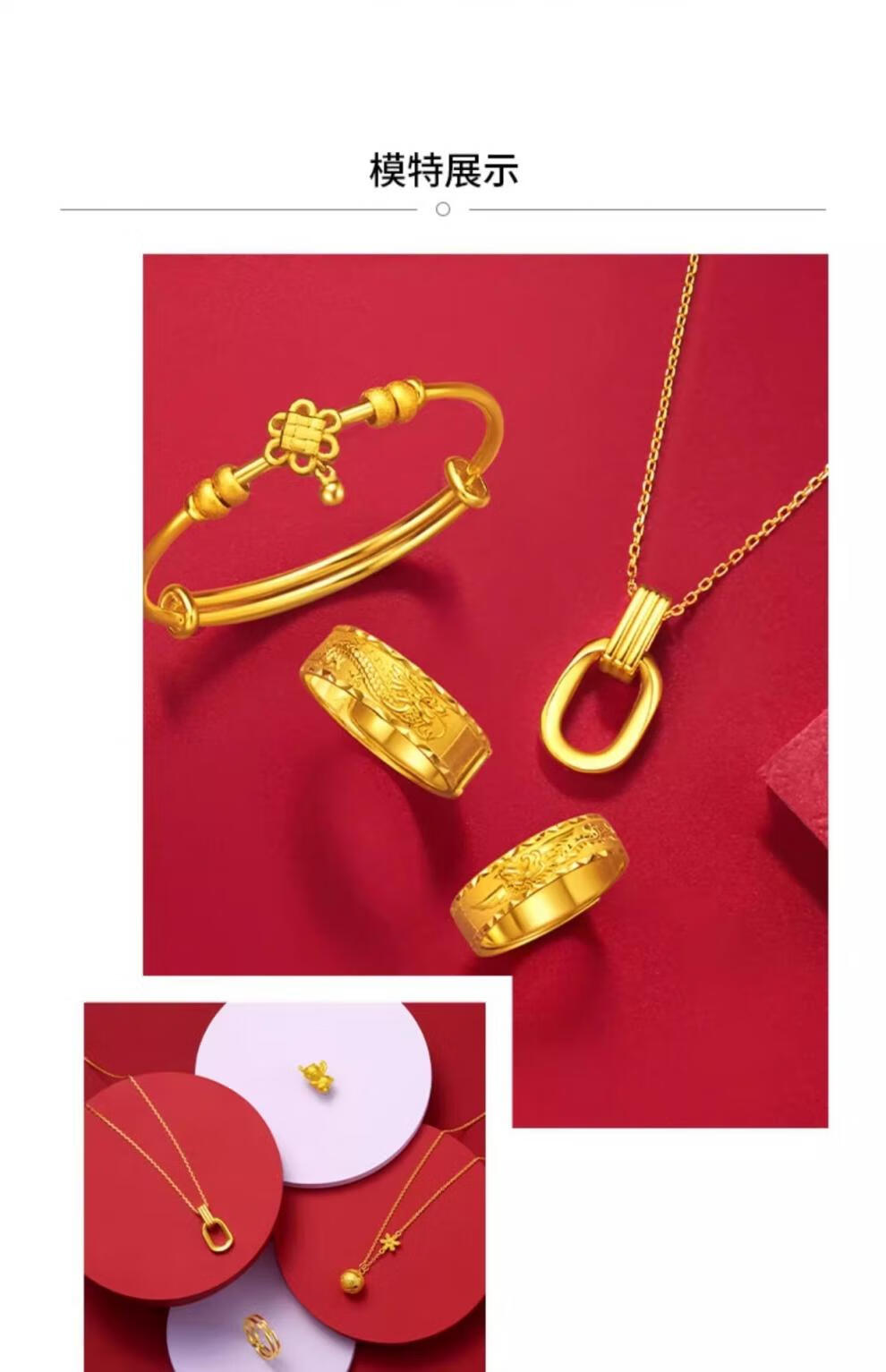 Ji Bochi Pure Gold Silver Pendant G24K Gold Elegant Classic Retro Double Ring Geometric Necklace for Girlfriend Geometric Pendant + Necklace