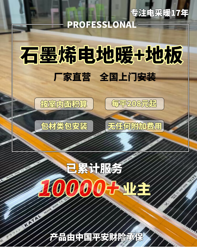 Chauffage au sol électrique éléphant rouge plancher chauffant nouveau film chauffant électrique en bois massif à trois couches graphène chauffage par le sol équipement complet studio de yoga danse chauffage au sol électrique + bois massif nouveau bois à trois couches d'un mètre carré
