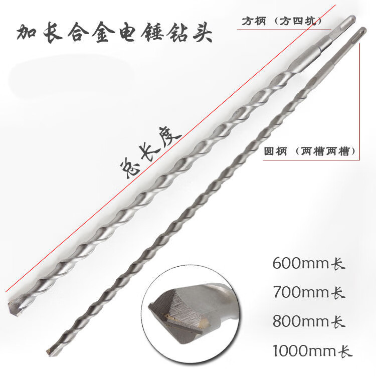 E.F.VSLON electric hammer drill bit square shank round shank extended wall cement impact drill bit concrete opening 500-600-1.2 m round shank 8 mm diameter 1.2 m long
