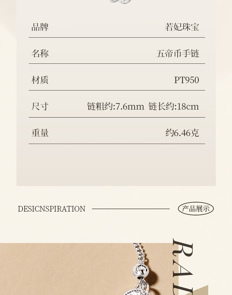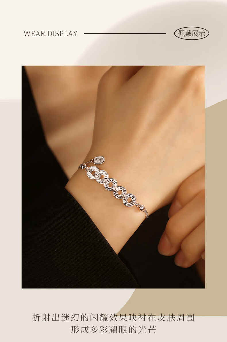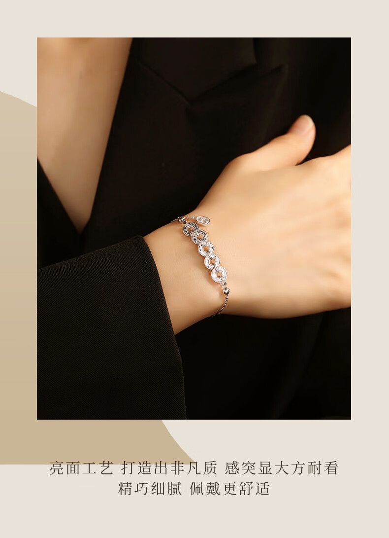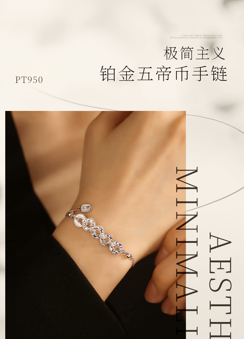 Ruofei platinum bracelet for women pt950 platinum women's bracelet to attract wealth and blessings Five Emperors Coin bracelet birthday gift for girlfriend 6.6-6.9g/length 16.5-19cm adjustable