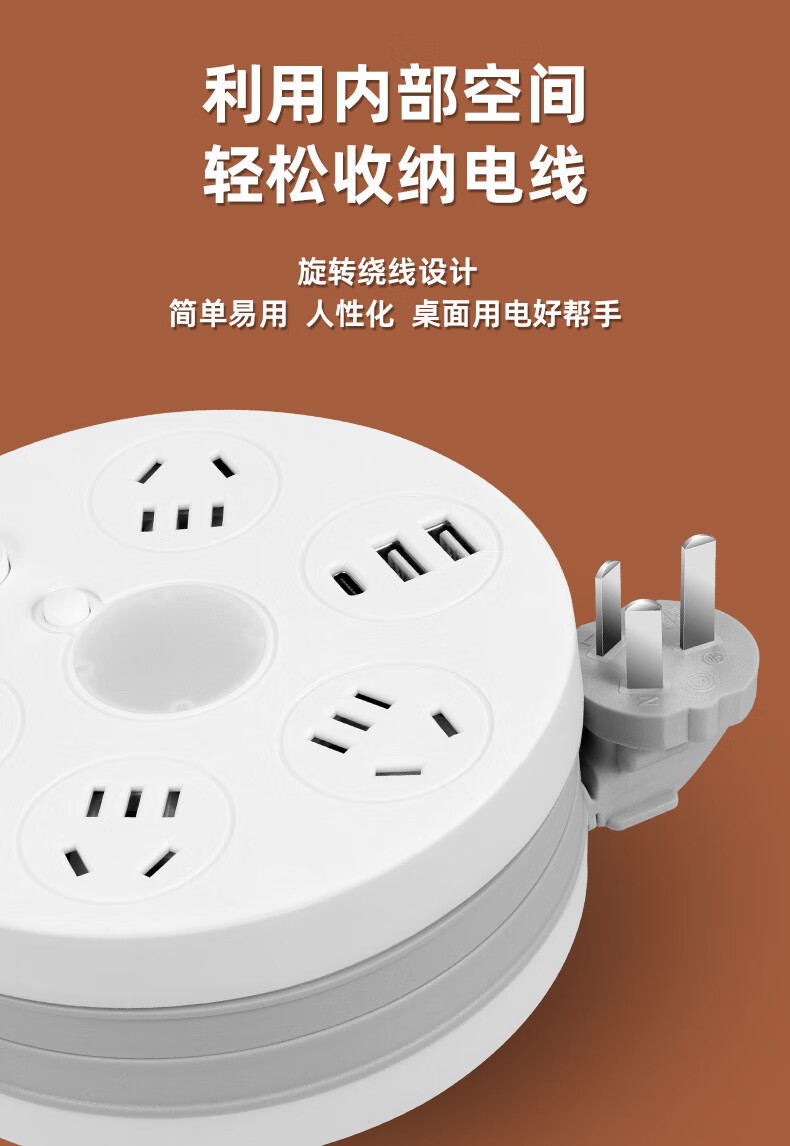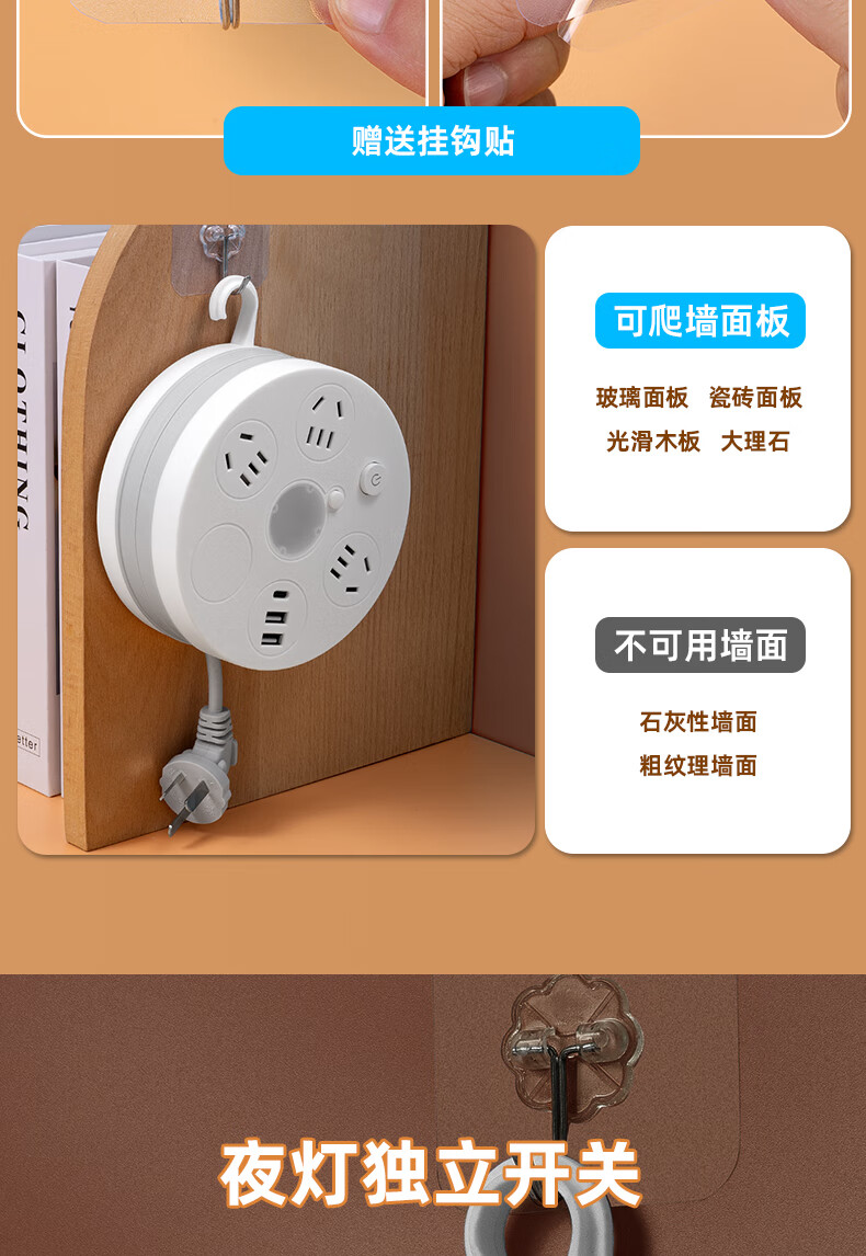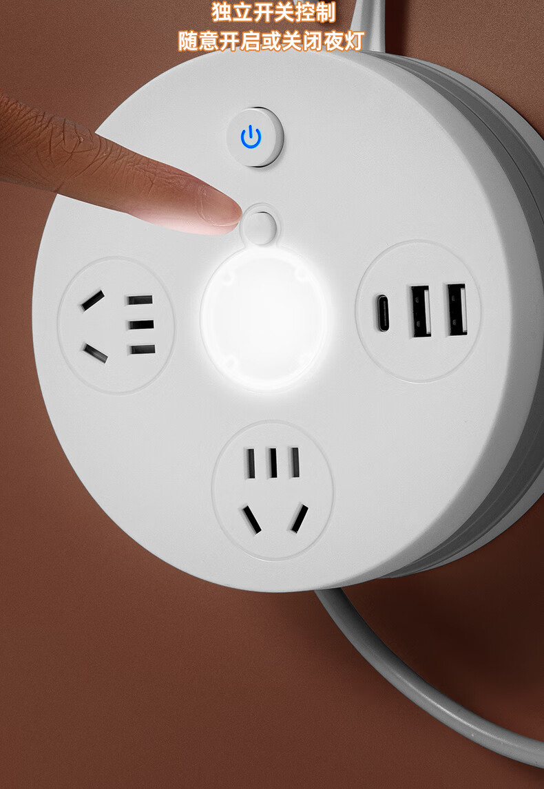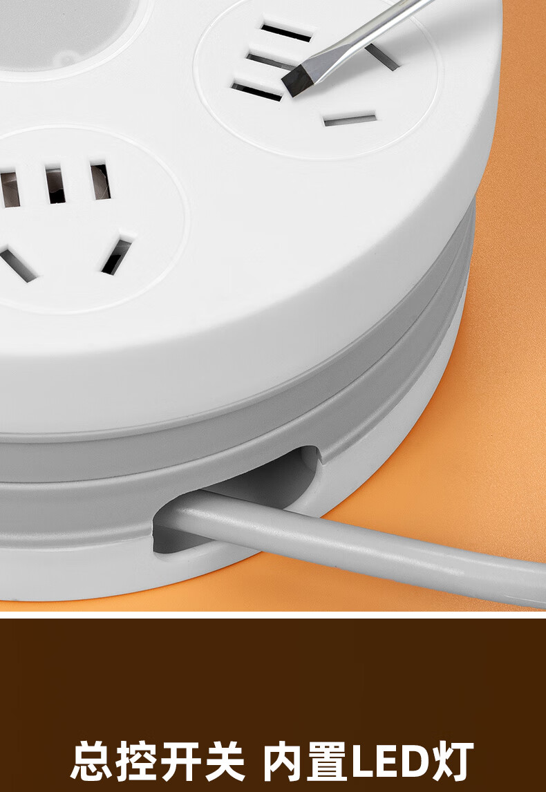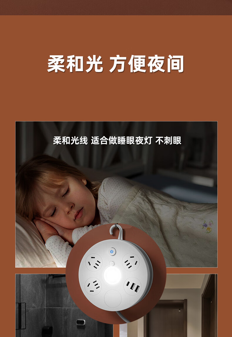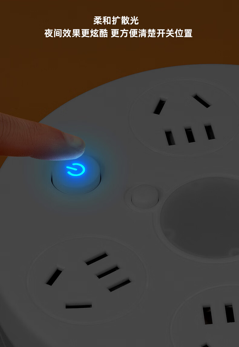 Bull (BULL) same style pure copper strip retractable storage socket multi-functional socket with light household plug board Bull five-position jack USB + night light 2.8