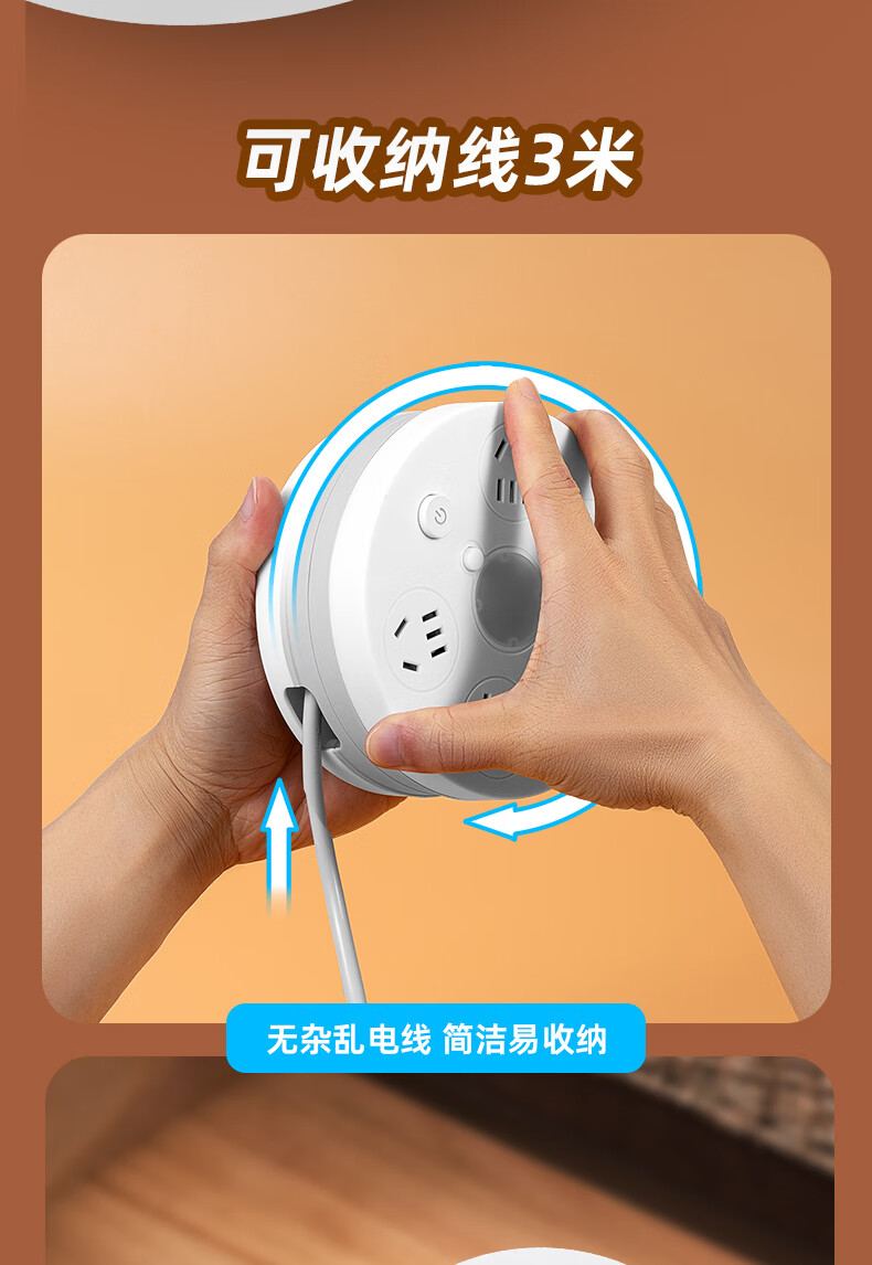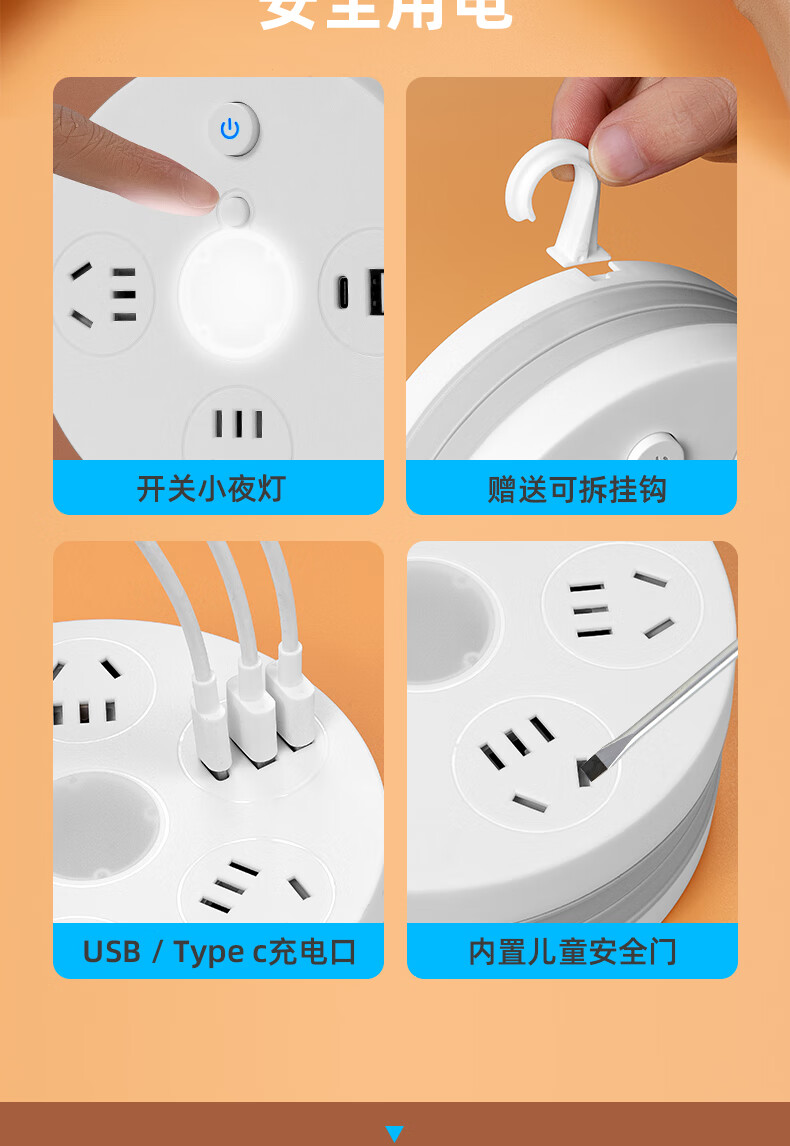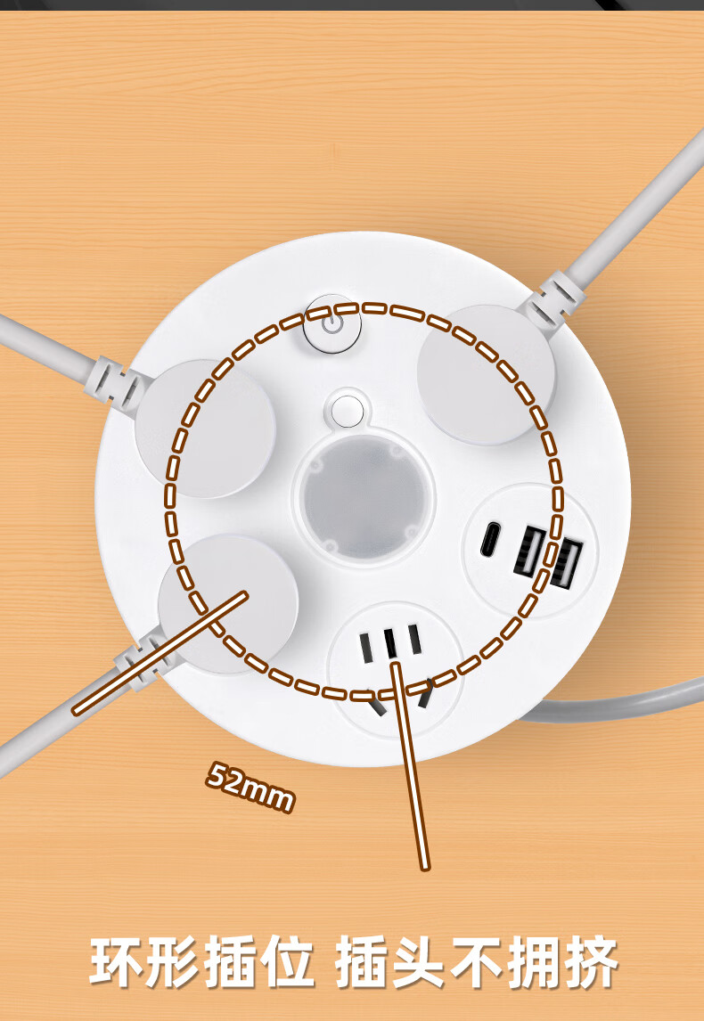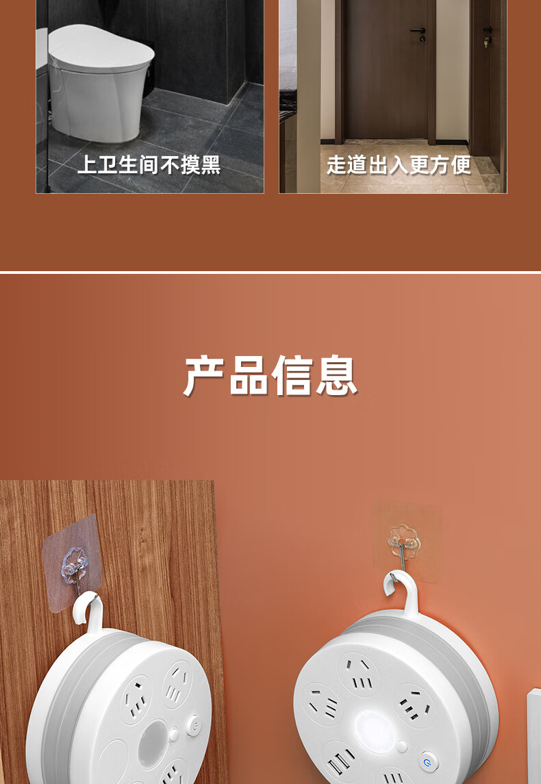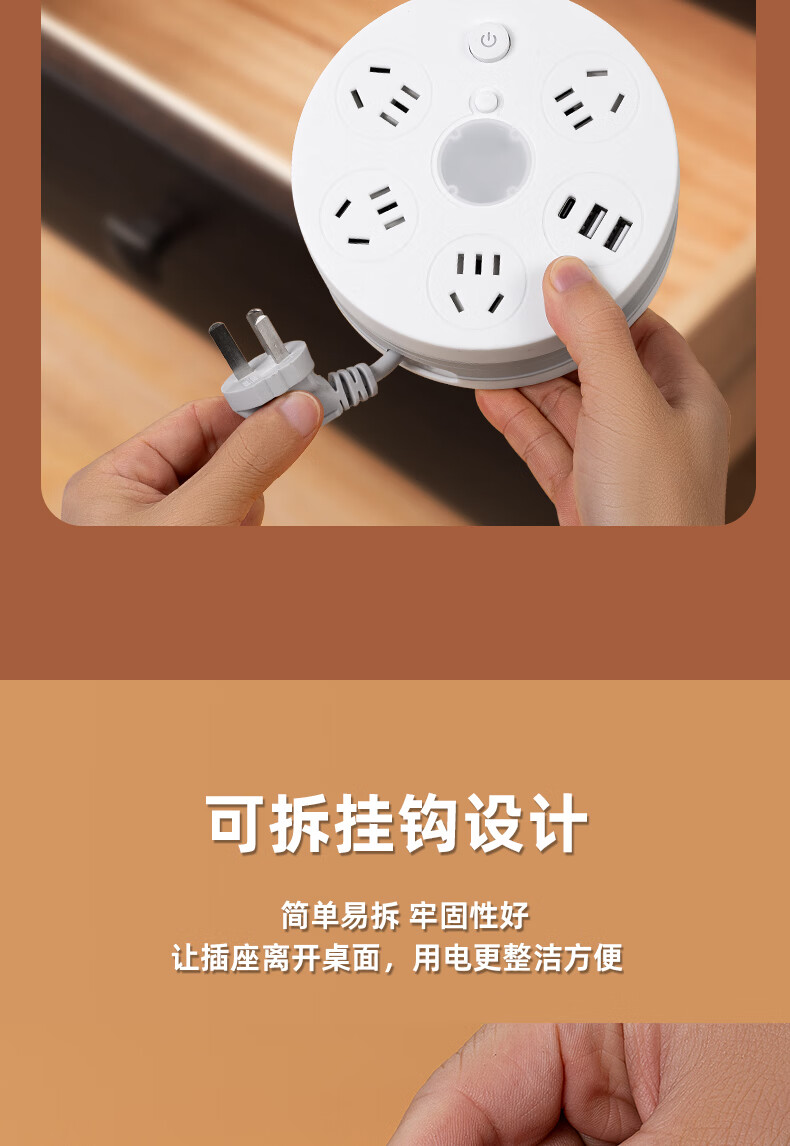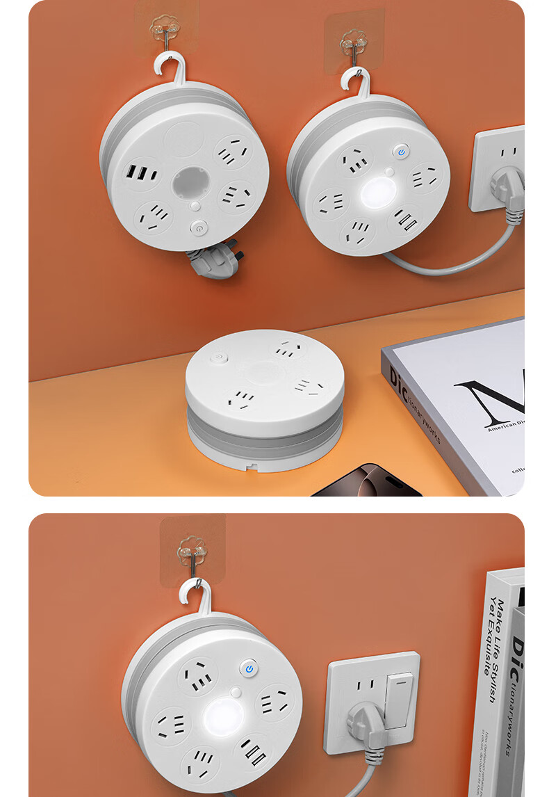 Bull (BULL) same style pure copper strip retractable storage socket multi-functional socket with light household plug board Bull five-position jack USB + night light 2.8