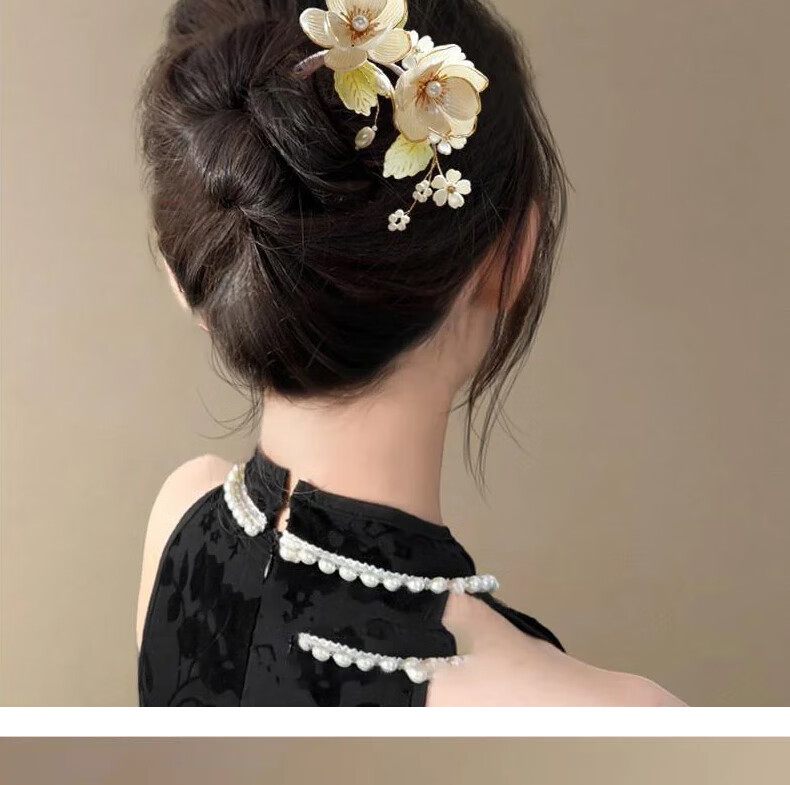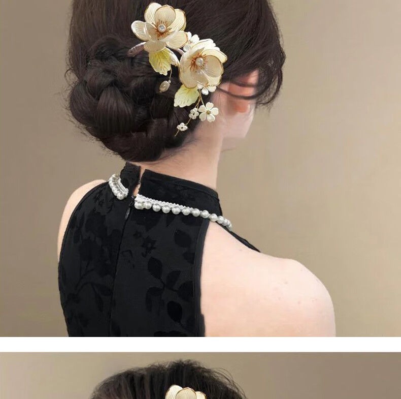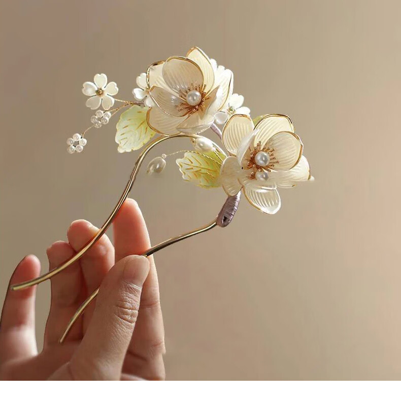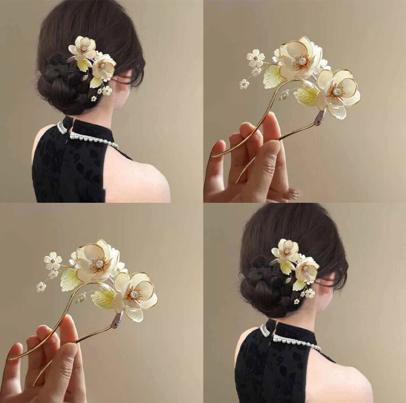Joy of Two Worlds White Magnolia U-shaped Hairpin Hair Accessories Women's 2025 New High-end New Chinese Style Chinese Style High-End Cheongsam Hairpin White Magnolia Flower U-shaped Hairpin