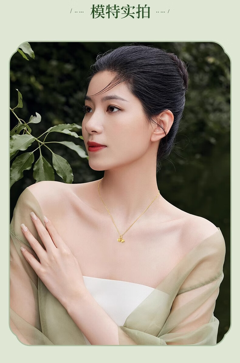 Ji Bochi pure gold-covered silver pendant necklace G24K gold color Shishi Ruyi bracelet braided birthday gift Shishi Ruyi +s925 necklace
