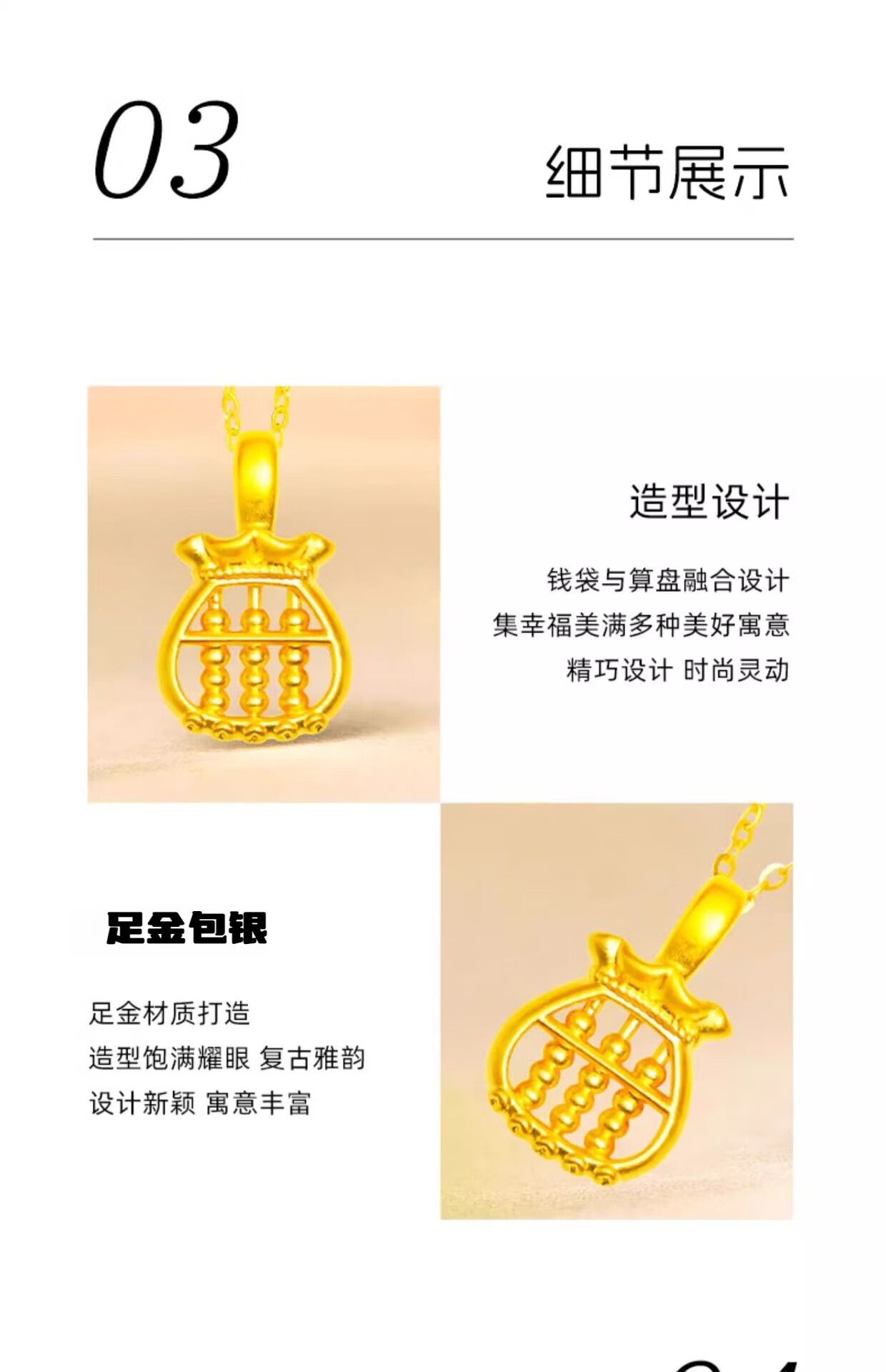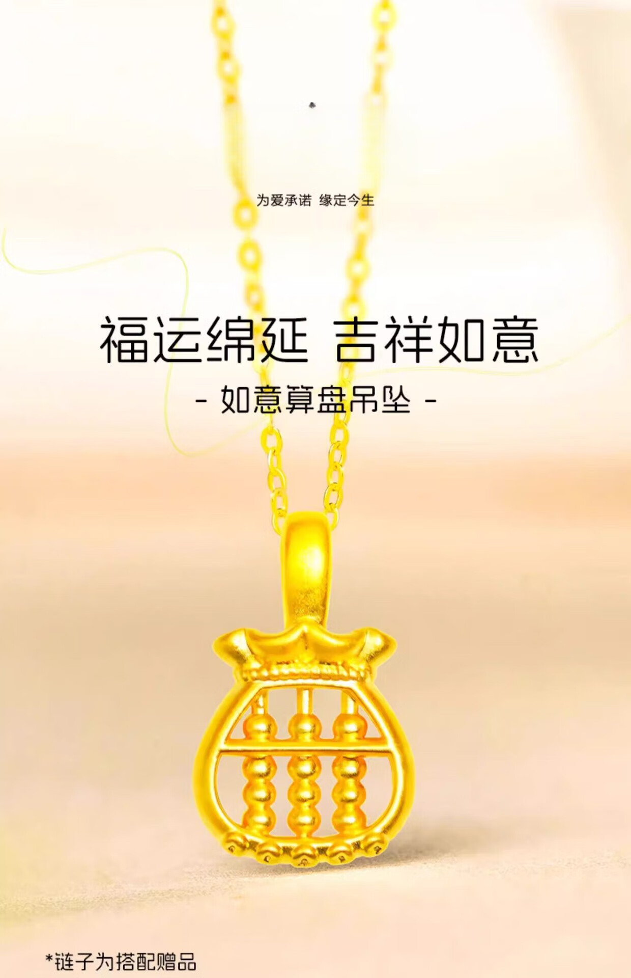 Ji Bochi pure gold-wrapped silver pendant G24K gold color wishful thinking pendant classic clavicle chain Chinese Valentine's Day gift to girlfriend's birthday wishful thinking pendant