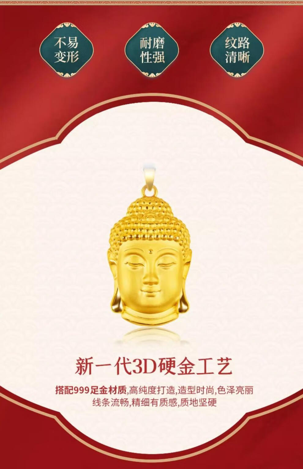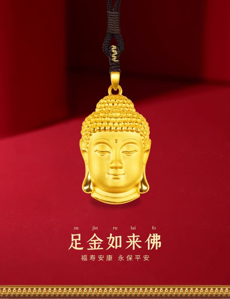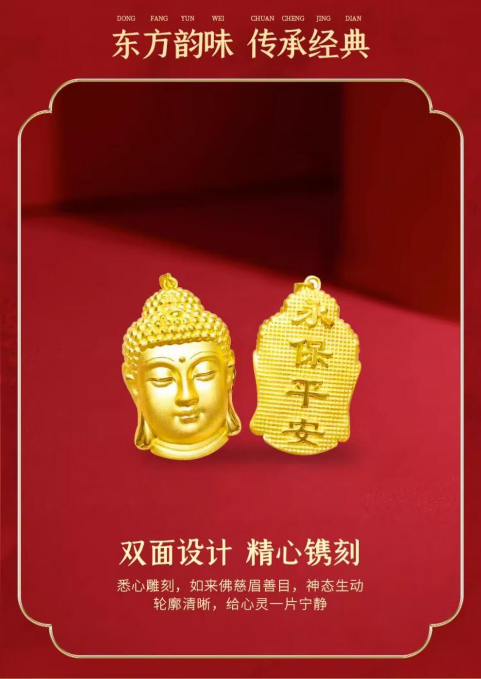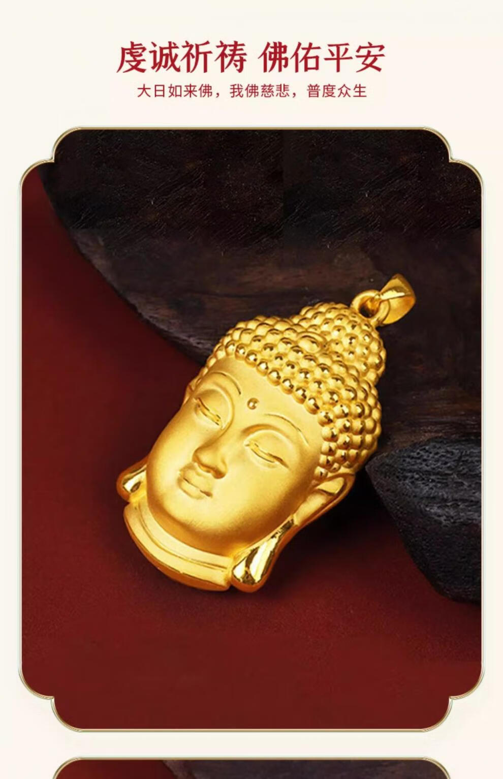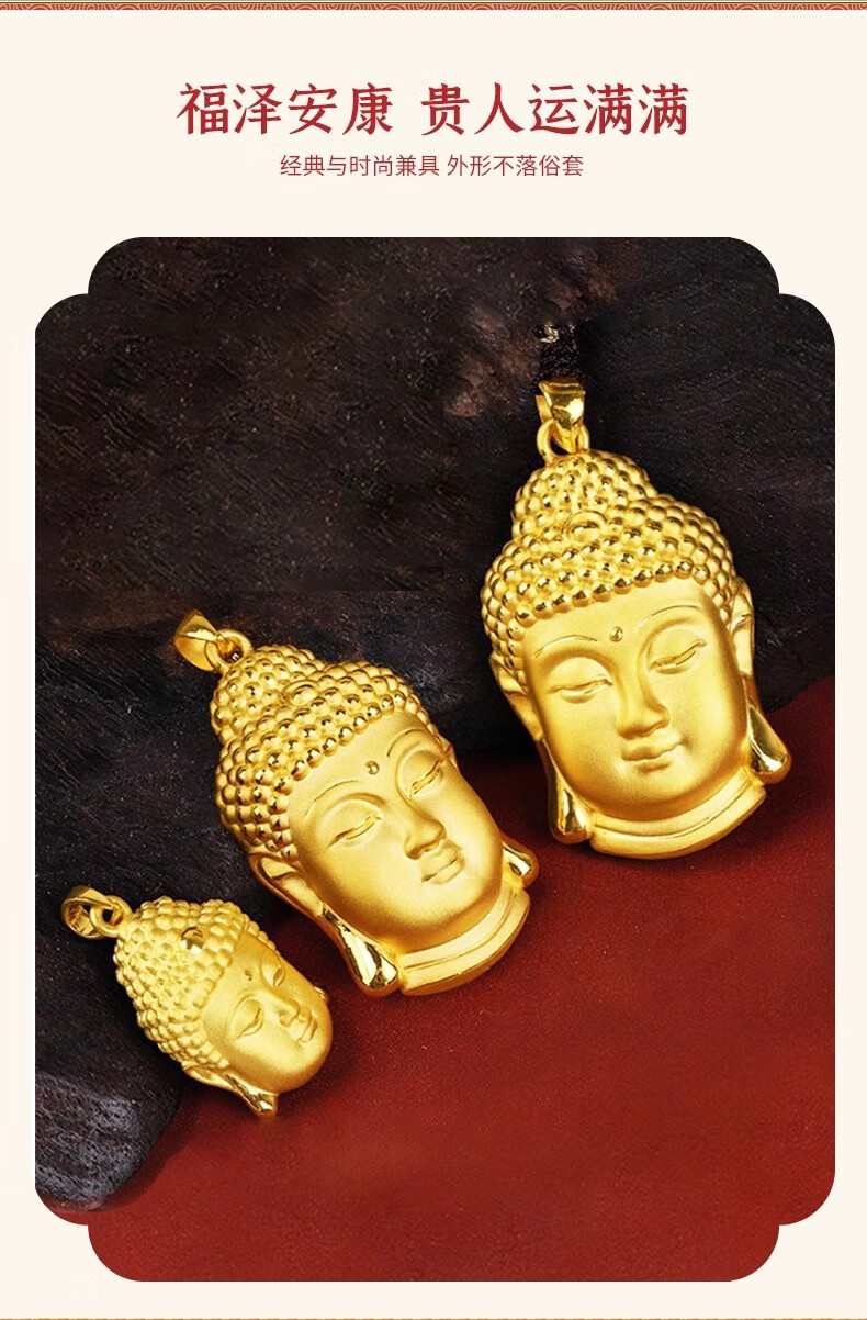 Ji Bochi pure gold-covered silver Buddha head G24K gold pendant Tathagata classic exquisite style peace Buddha head pendant gold-covered silver Buddha head pendant 2g with black rope necklace