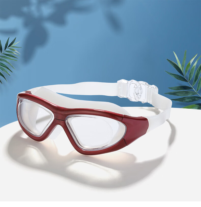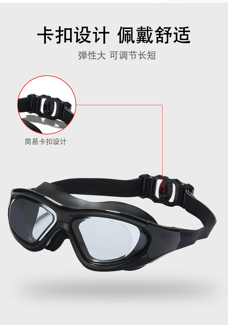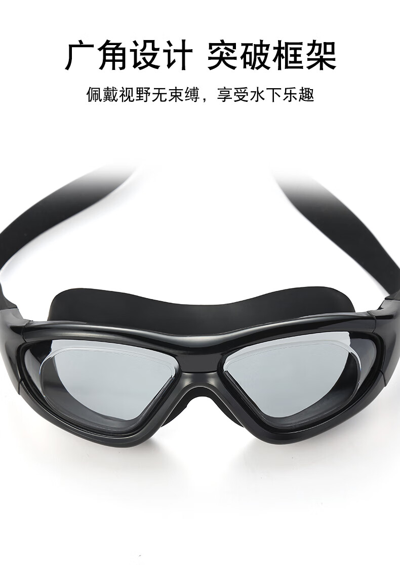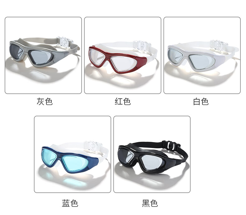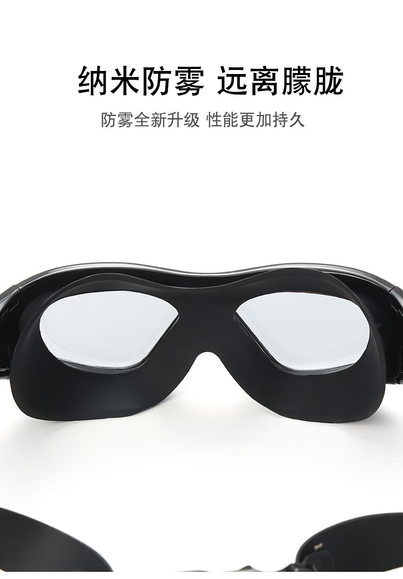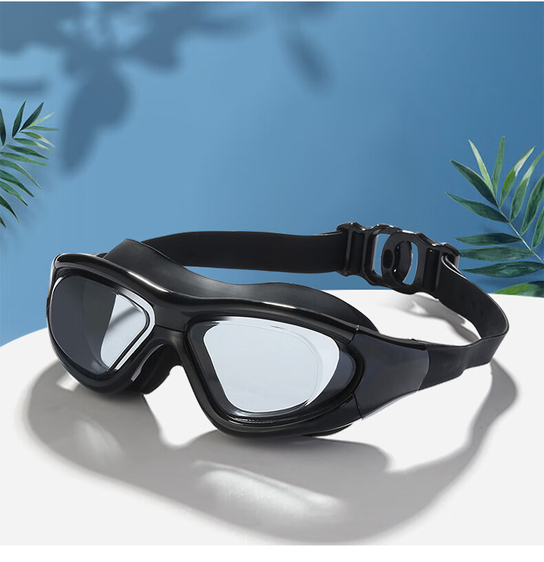 Iosn swimming goggles for women, diving glasses for men, waterproof, anti-fog, high-definition, large-frame swimming, women, adult swimming equipment, gray (one-piece earplugs, mushroom heads), flat light