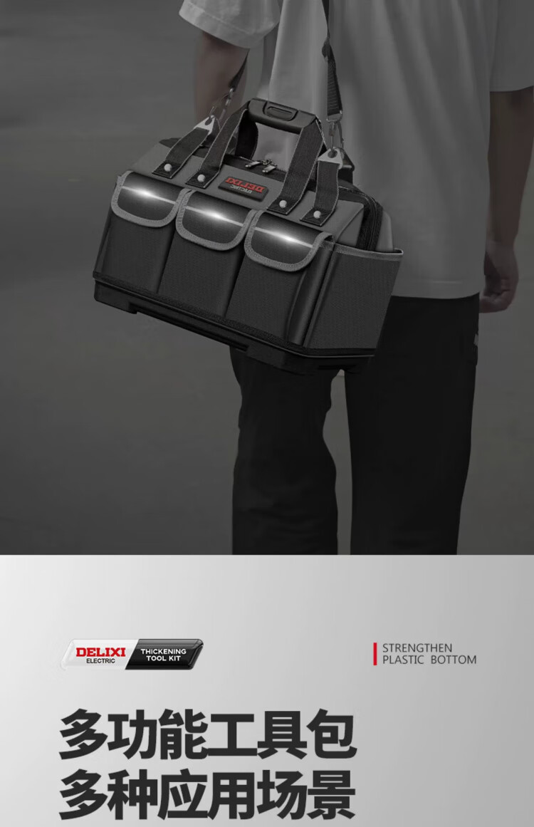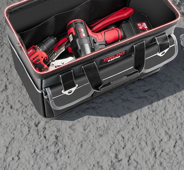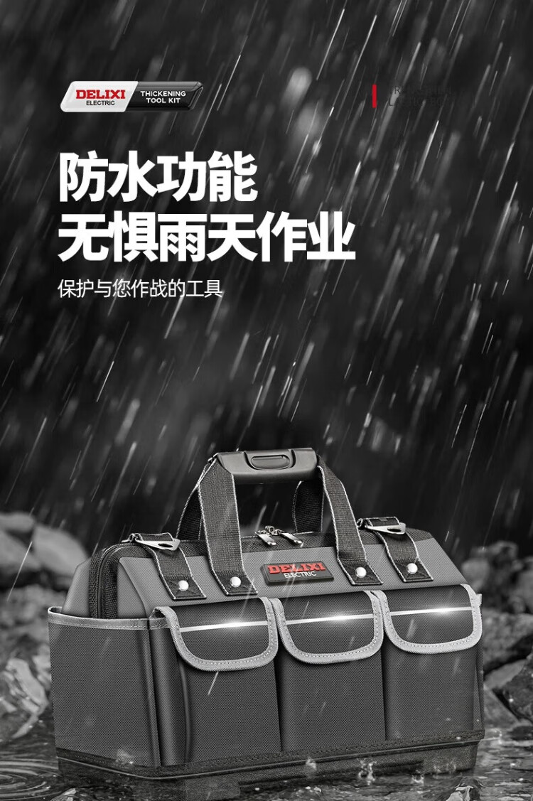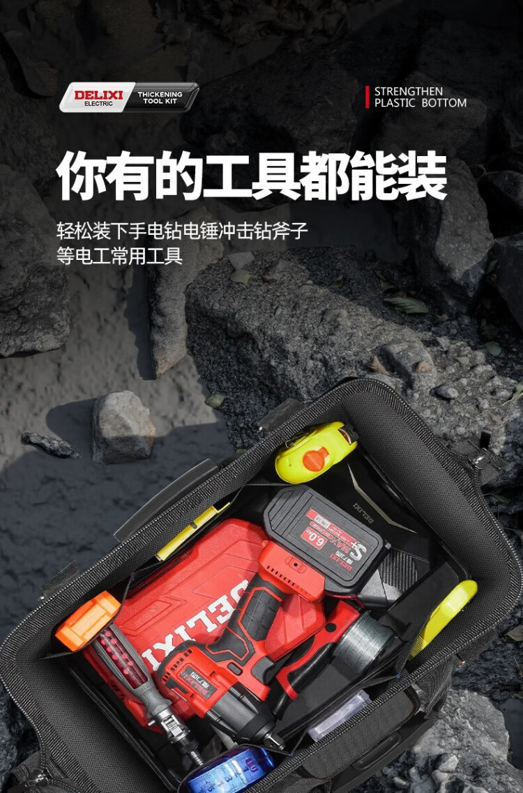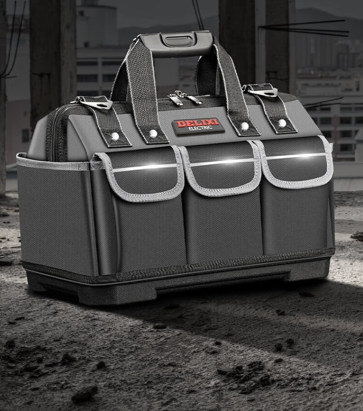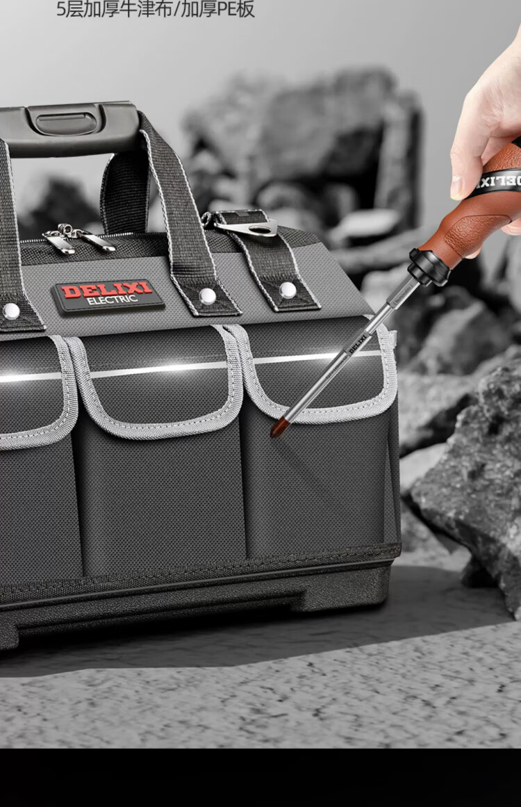 Delixi tool bag multi-functional repair canvas electrician special wear-resistant installation portable thickened tool bag for men 17 inches enhanced version - double-layer thickened waterproof with steel ring