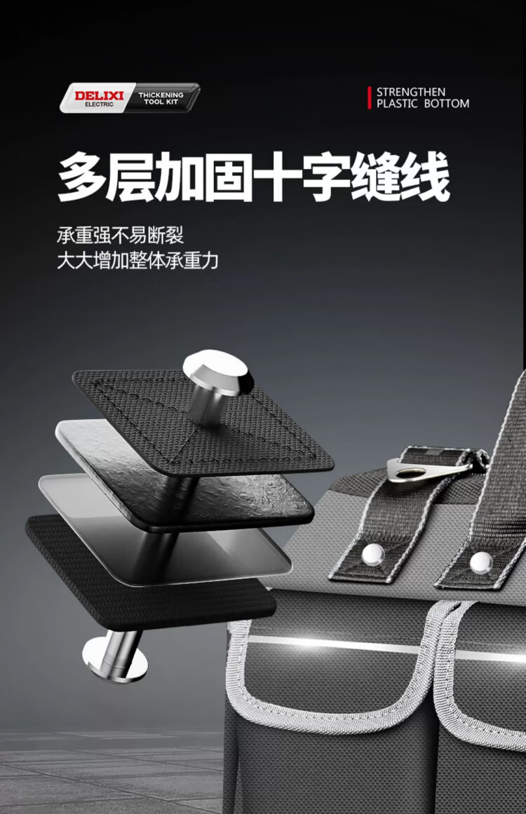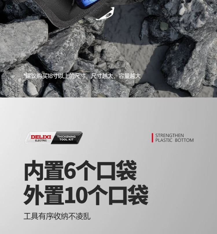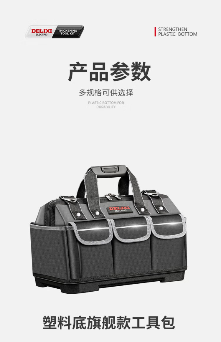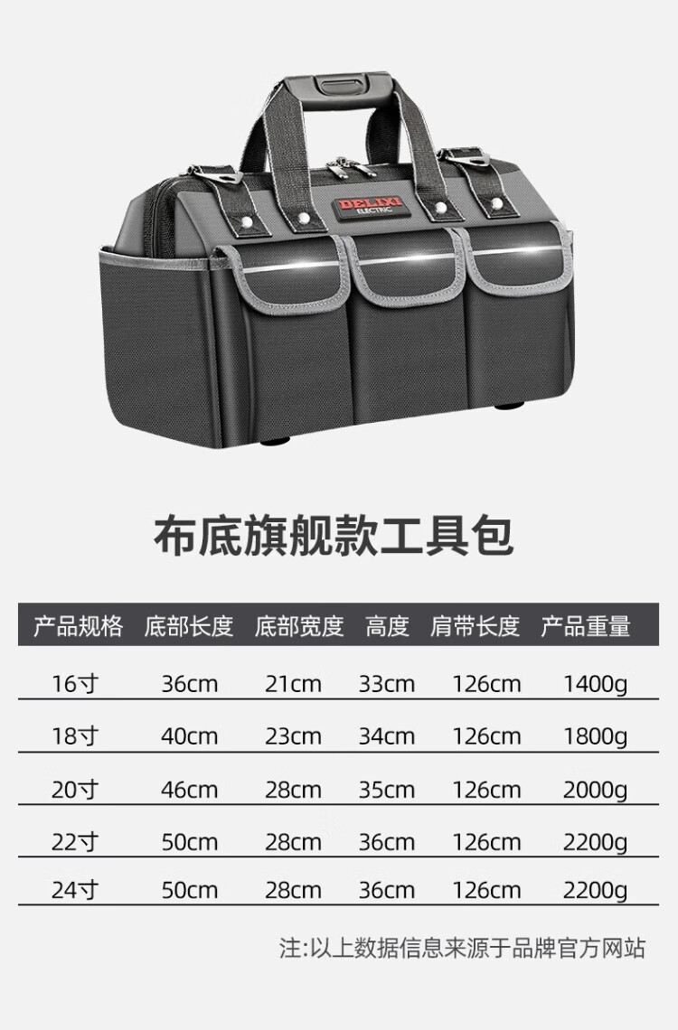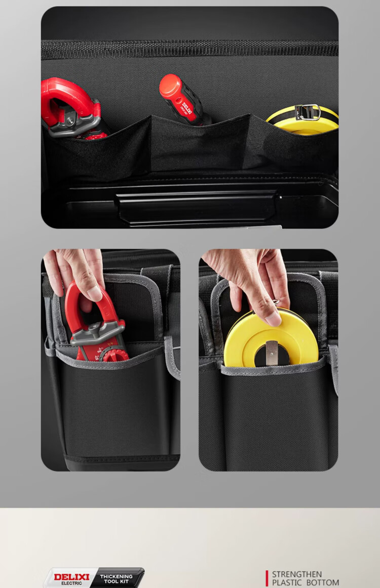 Delixi tool bag multi-functional repair canvas electrician special wear-resistant installation portable thickened tool bag for men 17 inches enhanced version - double-layer thickened waterproof with steel ring