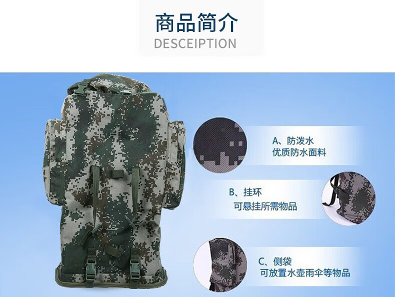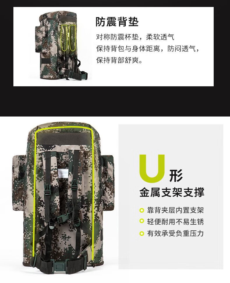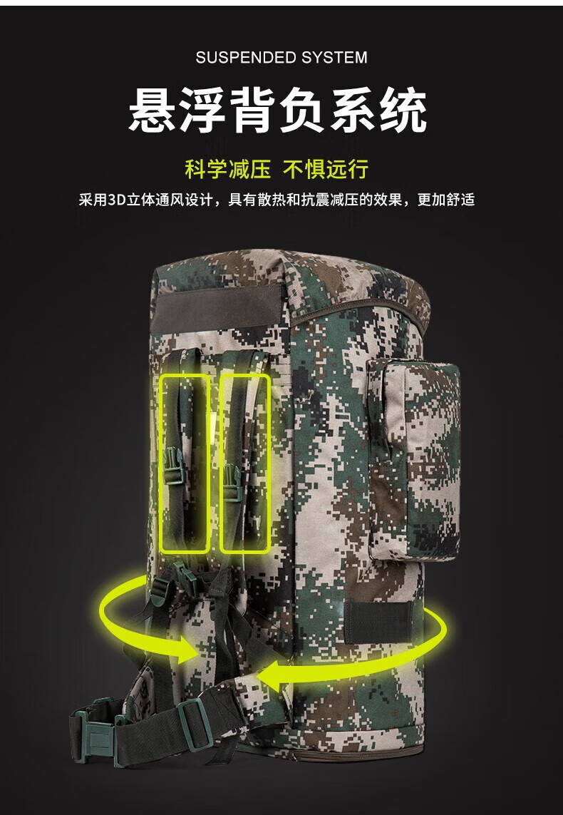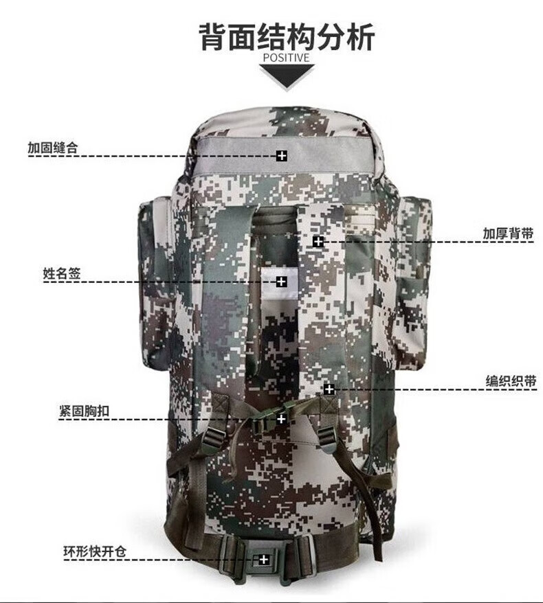 Backpack camouflage military training camping outdoor large capacity mountaineering bag life carrying bag hiking mountaineering waterproof large backpack 1000D camouflage backpack 100 liters