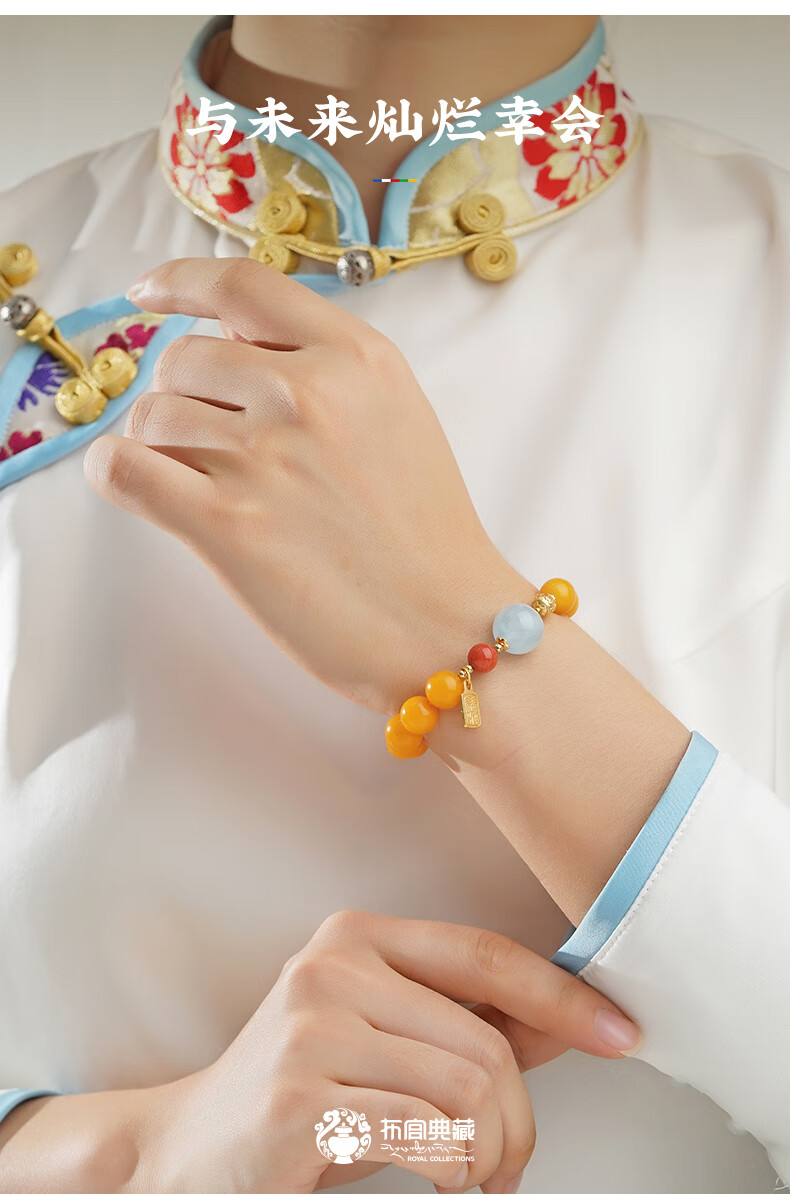 Potala Palace Beeswax Bracelet Amber Aquamarine Girls Simple Single Circle Bracelet Tibetan Design Toy Jewelry Birthday Gift Beeswax Aquamarine Bracelet