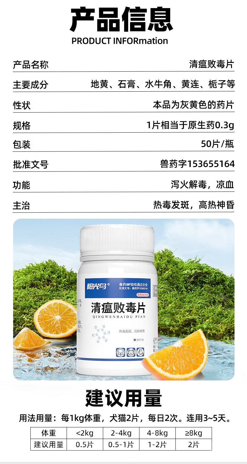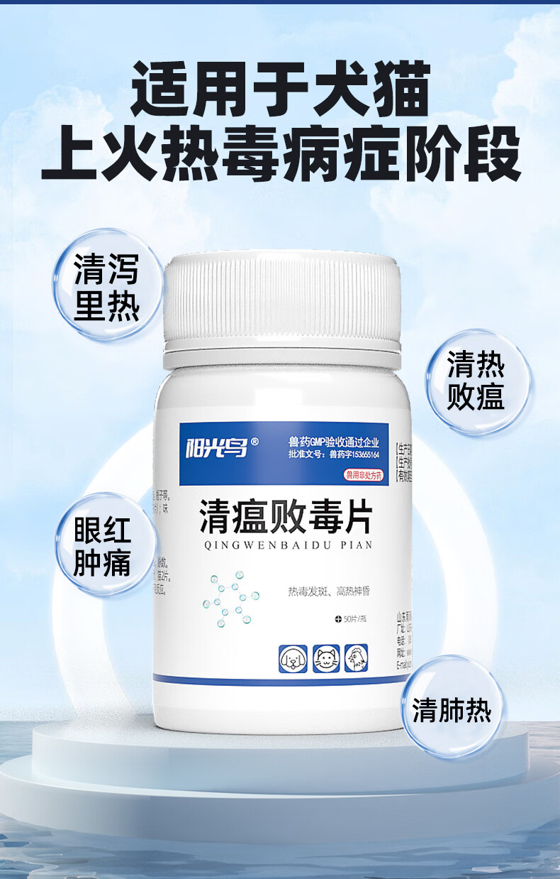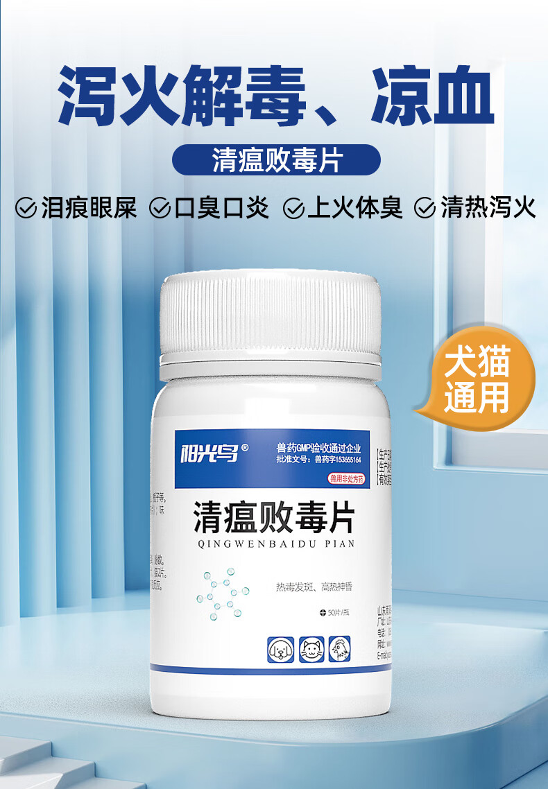 Sunshine Bird Pet Qingwen Baidu Tablets for cats and dogs with bad breath and stomatitis, remove eye feces, tear stains, oral ulcers, clear away heat and detoxify, lutein tablet combination recommended