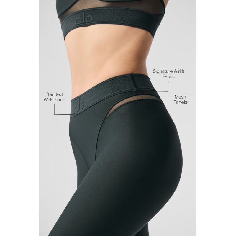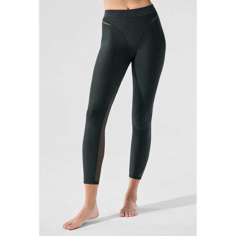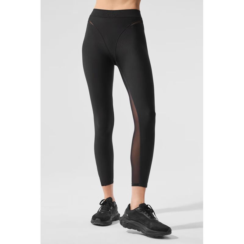 ALO YOGA yoga pants, tights, breathable mesh fabric splicing, running, fitness, dancing, Pilates pants, sports pants black XS (suitable for waist 63.5 - 67.5cm)
