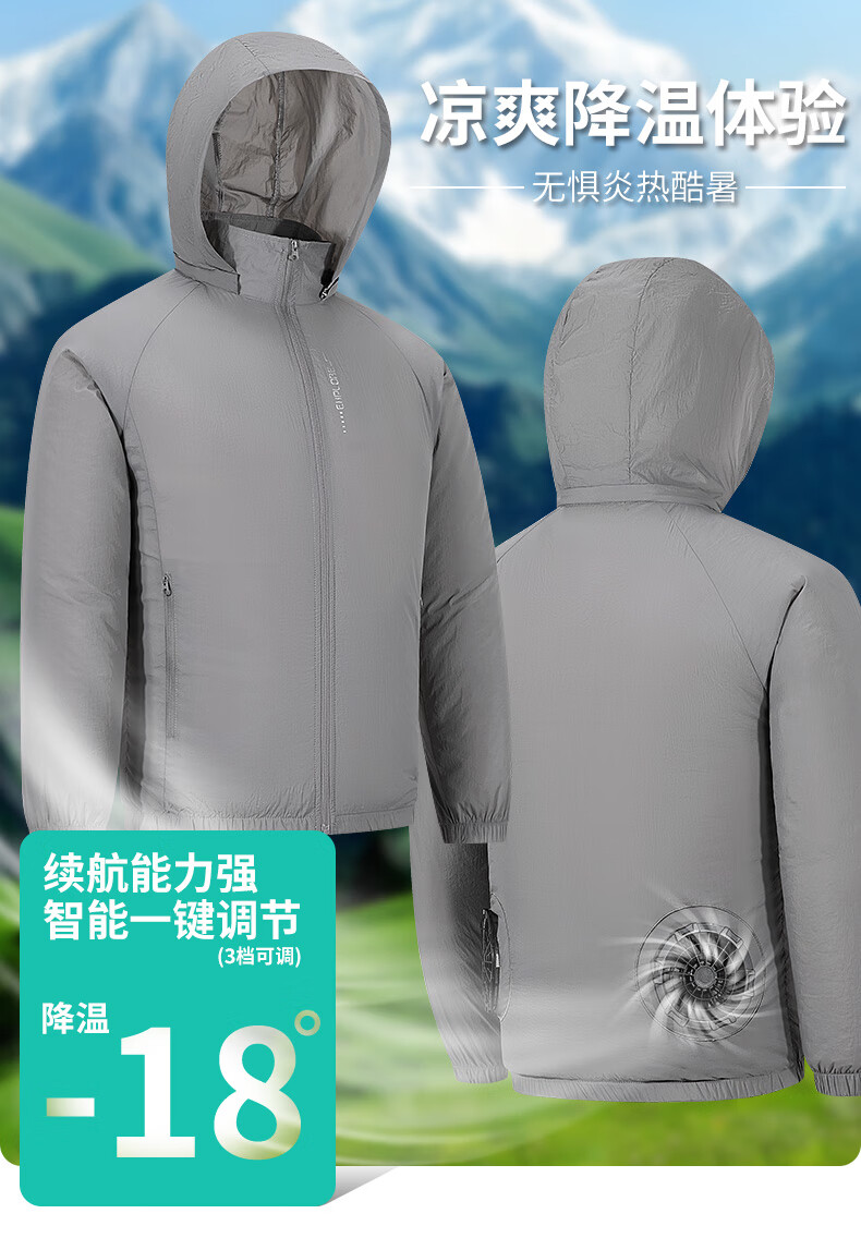 JEEP SPIRIT sun protection air-conditioning clothing with fan for men and women cooling and cooling fan clothing outdoor fishing and riding construction site work clothes gray + 1 set of accessories L