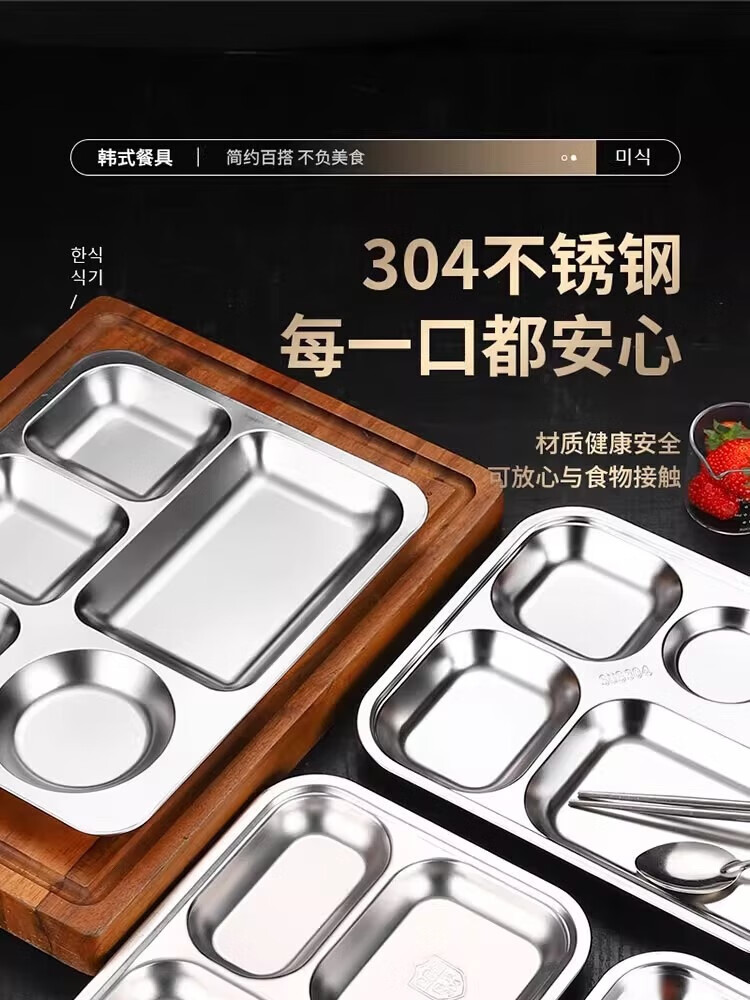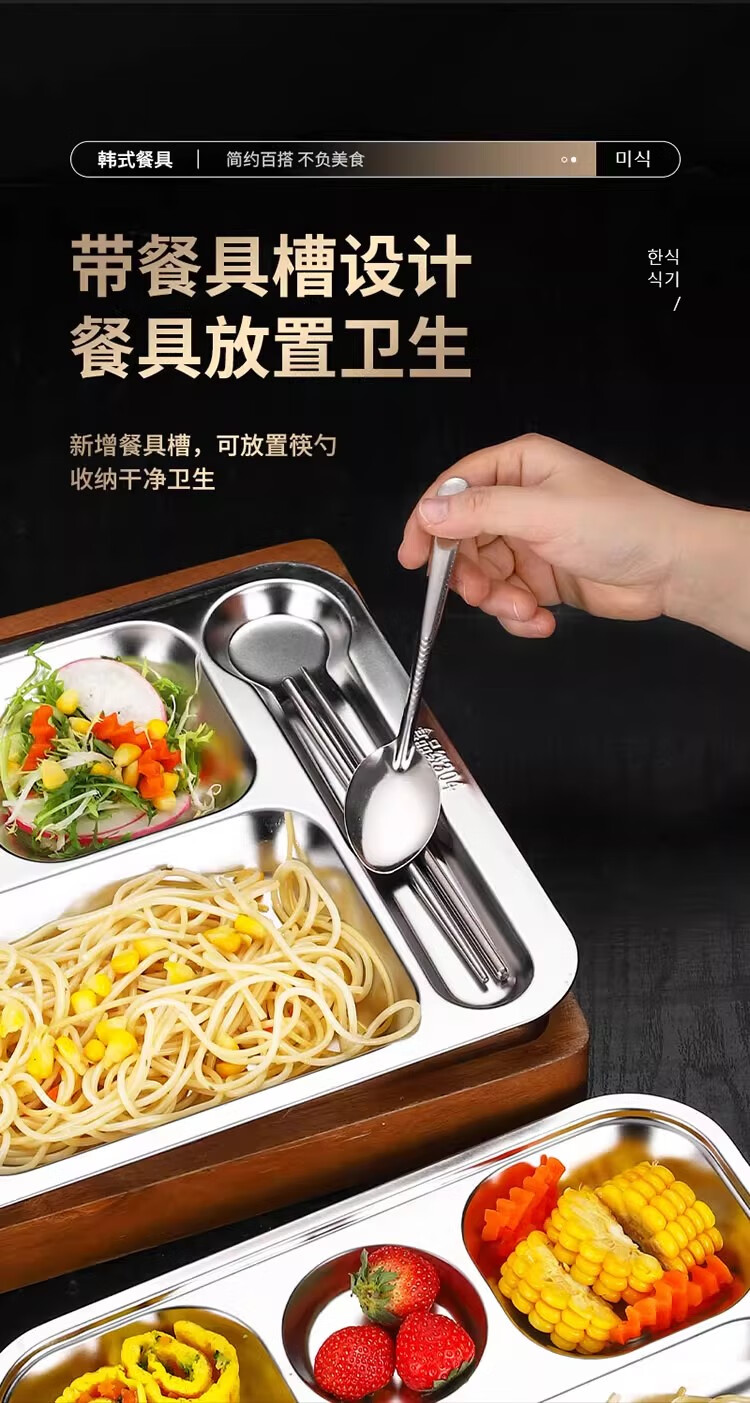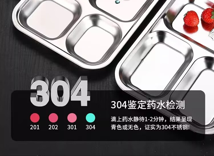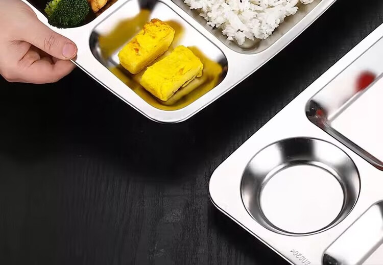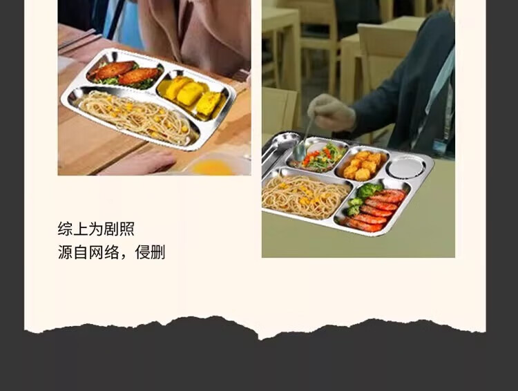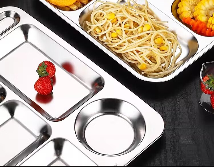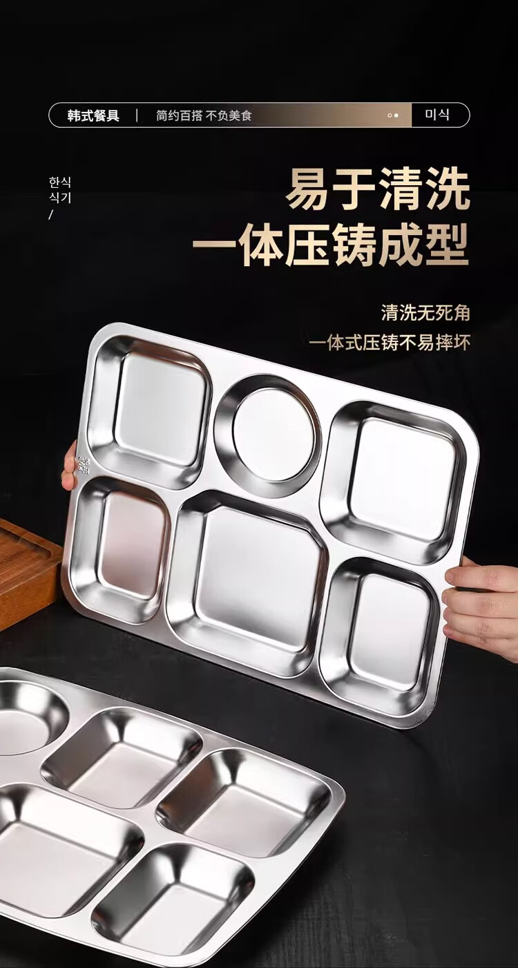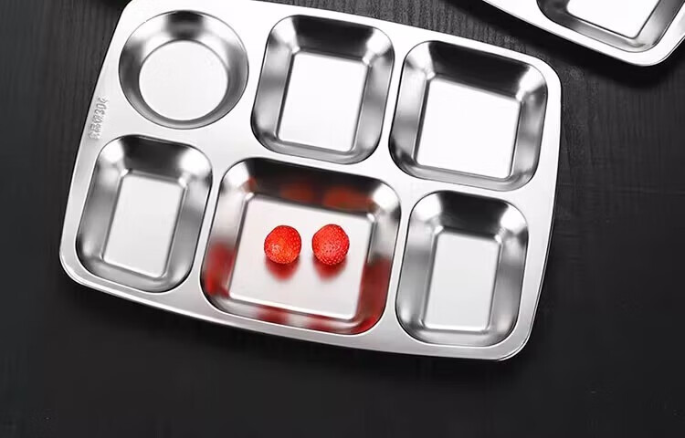 OIMG stainless steel 304 dinner plate large six-grid square fast food plate adult student commercial divided rice plate canteen rice plate stainless steel 340 dinner plate + free chopsticks and spoons