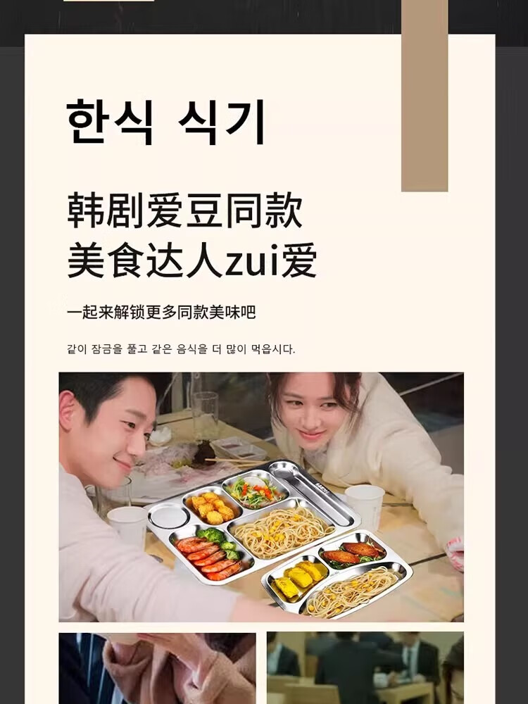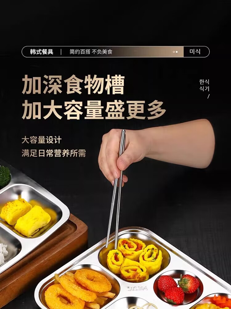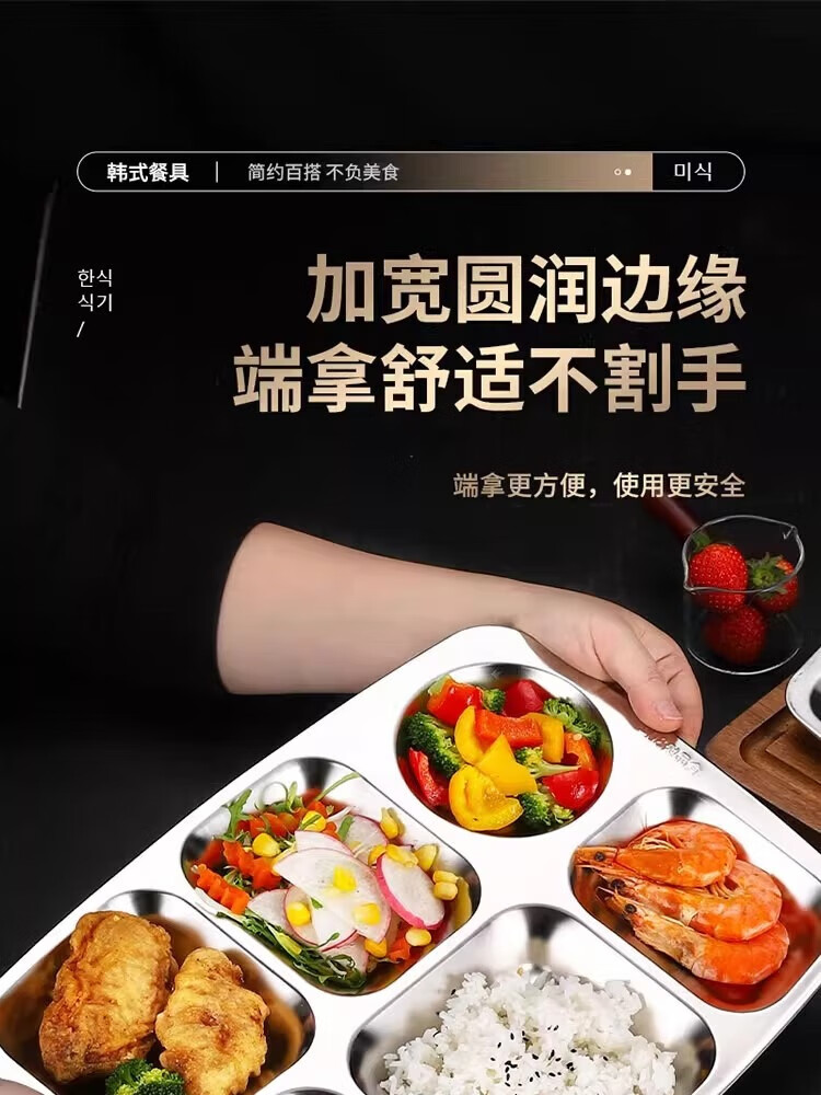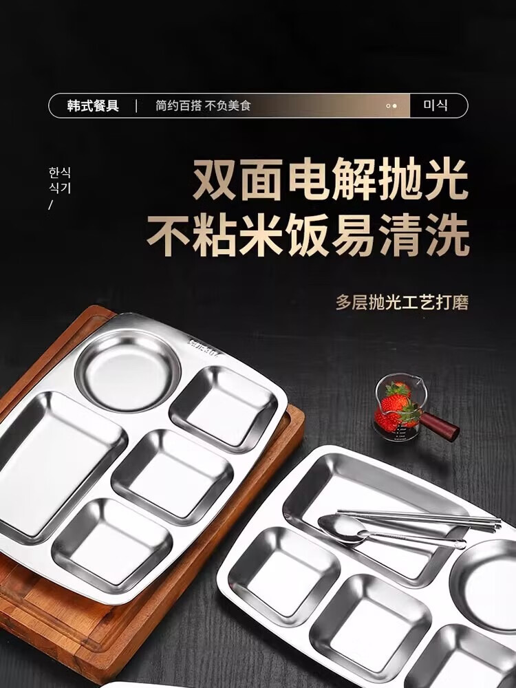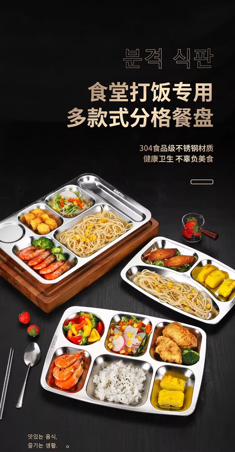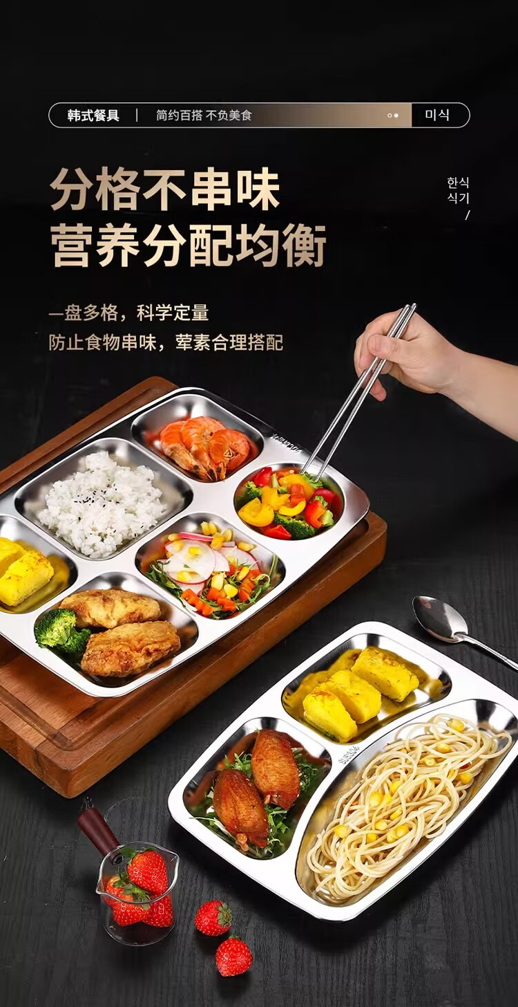 OIMG stainless steel 304 dinner plate large six-grid square fast food plate adult student commercial divided rice plate canteen rice plate stainless steel 340 dinner plate + free chopsticks and spoons