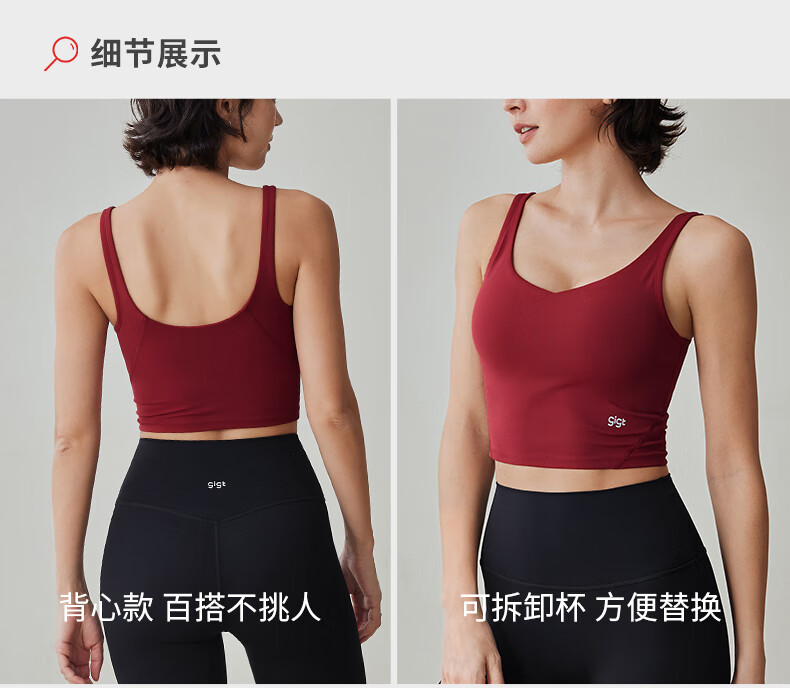 Gigt sports bra for women that can be worn outside to cover the auxiliary breasts, shock-proof yoga vest, Pilates training clothes, Angora red L